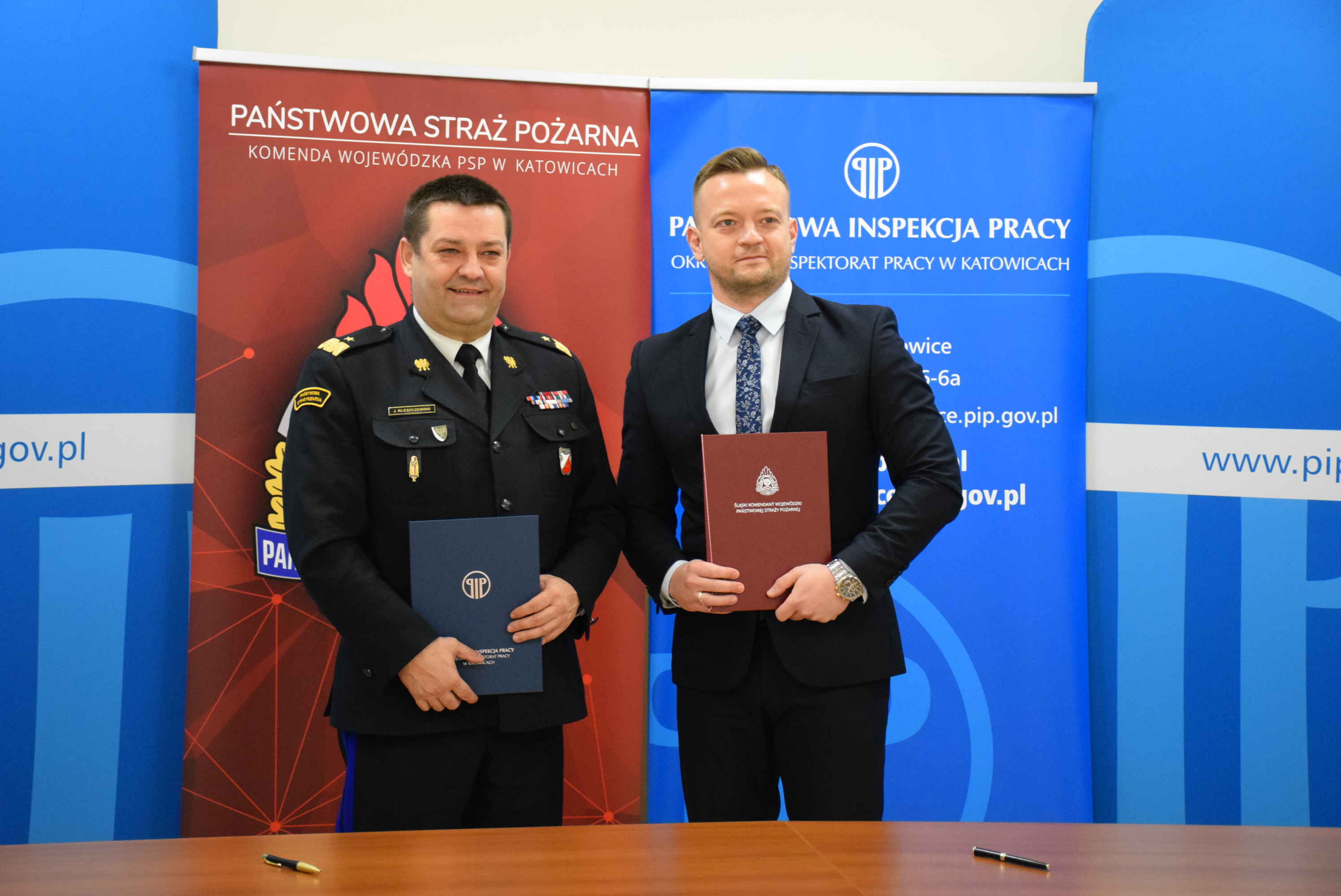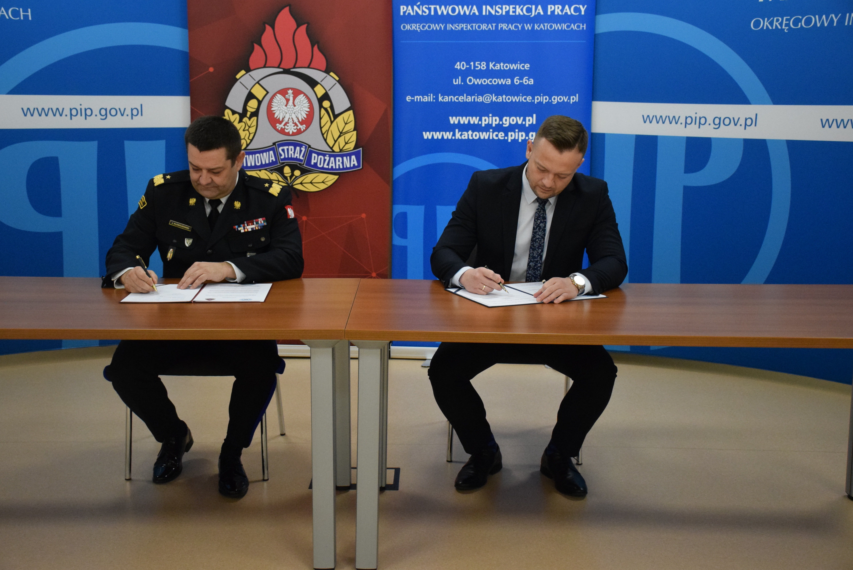 22 listopada w siedzibie Okręgowego Inspektoratu Pracy w Katowicach Śląski Komendant Wojewódzki PSP nadbryg. Jacek Kleszczewski oraz Okręgowy Inspektor Pracy w Katowicach Pan Piotr Kalbron podpisali porozumienie w celu zapewnienia sprawnego współdziałania w zakresie realizacji zadań ustawowych.