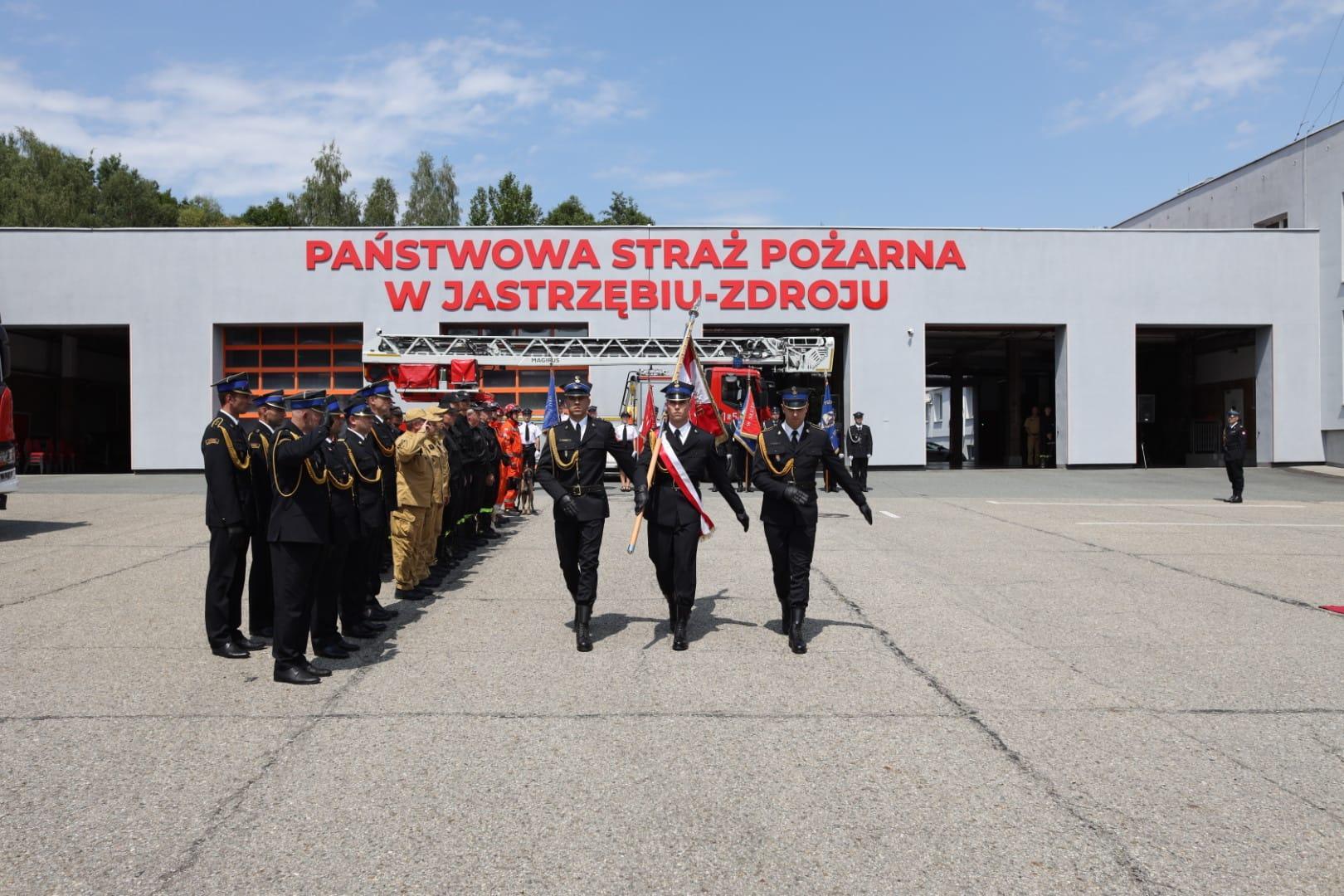 Uroczystość rozpoczęła się złożeniem meldunku Śląskiemu Komendantowi Wojewódzkiemu PSP st. bryg. Wojciechowi Kruczkowi przez dowódcę uroczystości mł. bryg. Piotra Markiewicza, po czym wprowadzono sztandar komendy oraz odtworzono hymn państwowy.