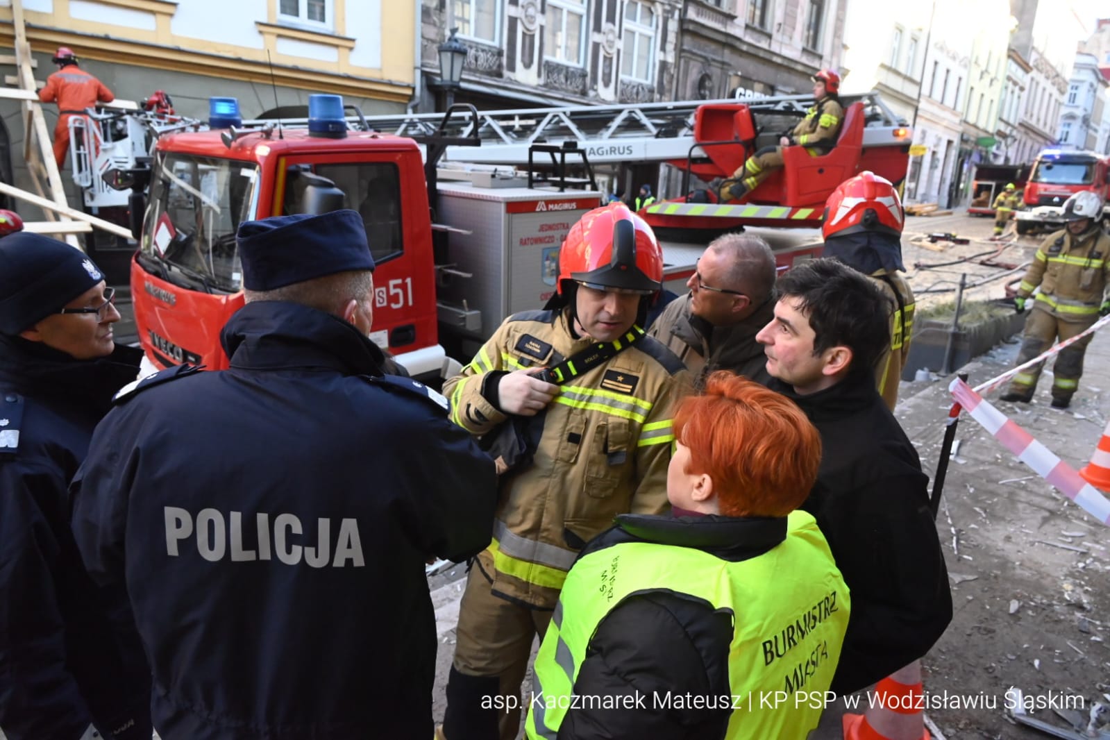 Na miejsce akcji przybył Komendant Główny PSP nadbryg. dr. inż. Mariusz Feltynowski, który przejął kierowanie działaniami ratowniczymi od Zastępcy Śląskiego Komendanta PSP st. bryg. Damiana Legierskiego oraz Wojewoda Śląski - Pan Marek Wójcik, Śląski Komendant Wojewódzki PSP nadbryg. Wojciech Kruczek.