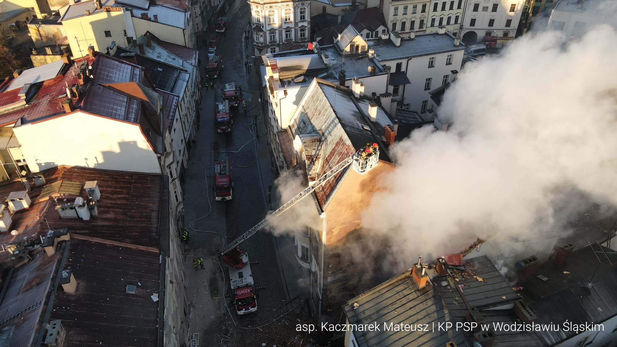 29 grudnia 2024 roku, o godz. 04.08 stanowisko kierowania Komendanta Powiatowego PSP w Cieszynie otrzymało zgłoszenie o wybuchu i pożarze budynku mieszkalnego w centrum miasta.