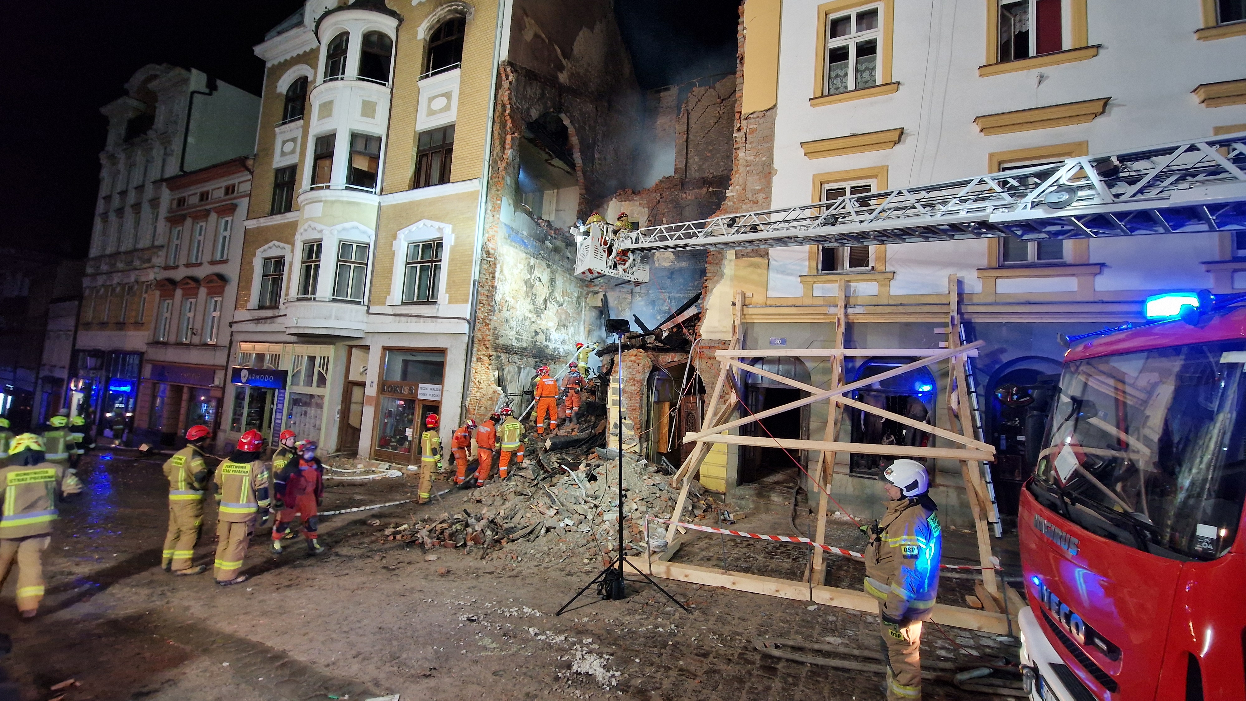 Pożar i zawalanie się kamienicy w Cieszynie