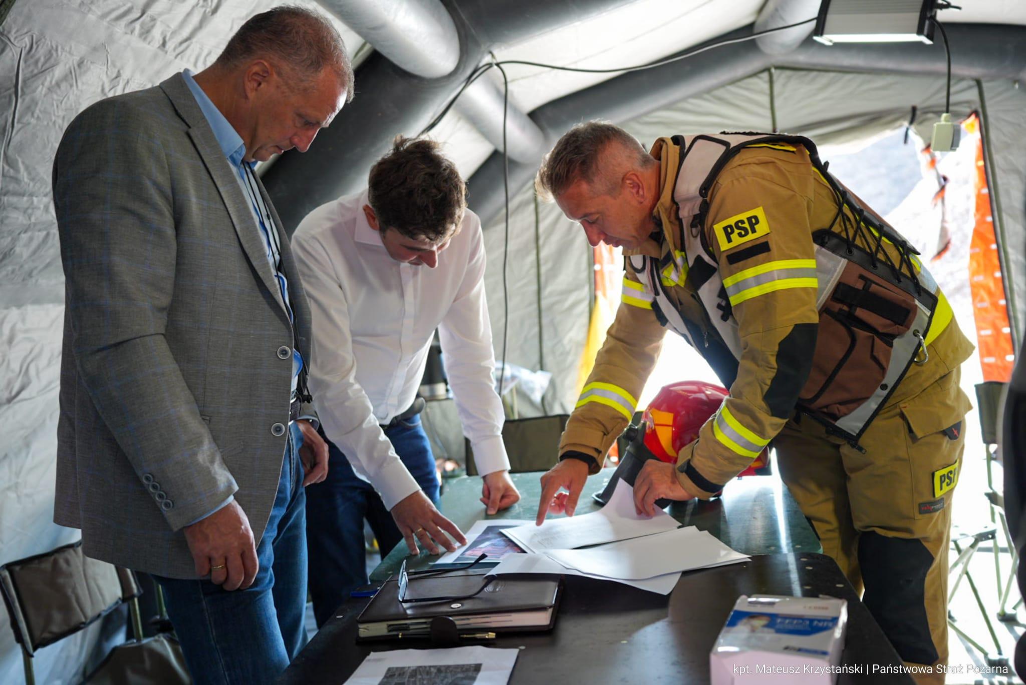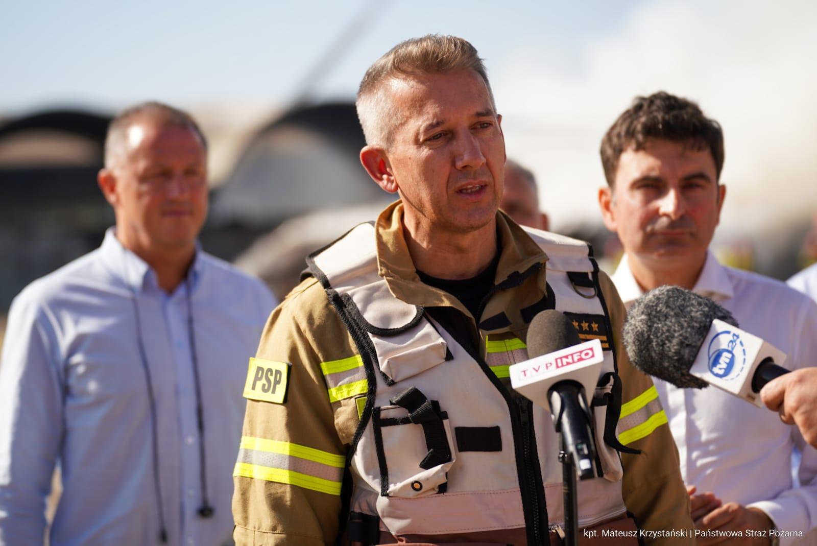 Działania gaśnicze kontynuowane były w dniu 5 września 2024r. Działania prowadzono w środku hali, pomiędzy halą i wiatami oraz na środku placu składowego. Kontynuowano także separowanie tlącego się surowca z usypanych, nadpalonych pryzm przy pomocy ładowarek i przetransportowaniu go w wyznaczone miejsca, a następnie jego przelewaniu oraz dogaszaniu. W czwartek 5 września na miejsce przybył Wojewoda Śląski Pan Marek Wójcik, który w asyście st. bryg. Romana Klechy Zastępcy Śląskiego Komendanta Wojewódzkiego PSP zapoznał się z dotychczasowym przebiegiem działań. Następnie odbył się briefing prasowy z przedstawicielami mediów.