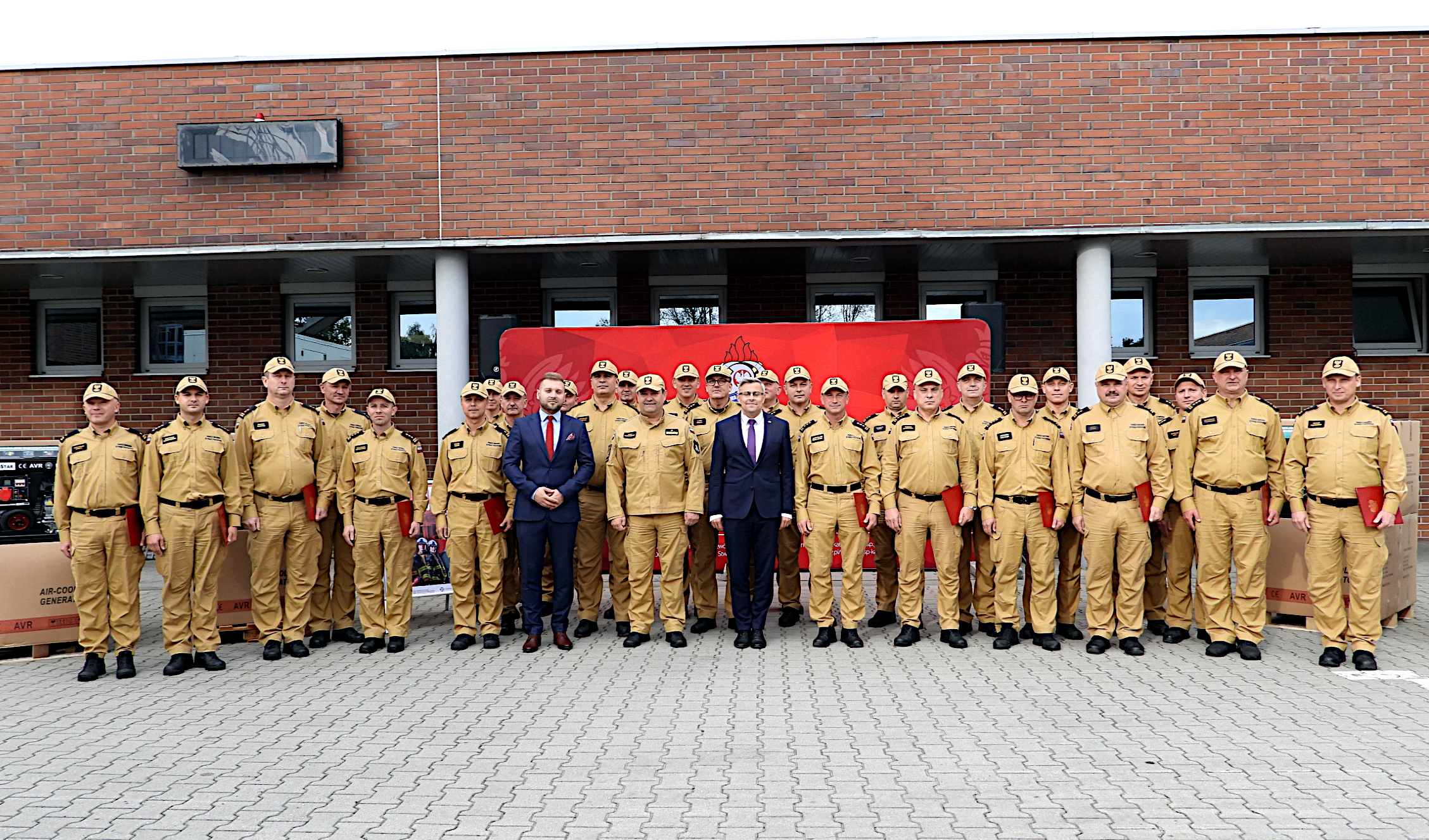 oraz komendanci powiatowi i miejscy PSP z komend do których trafiły agregaty.