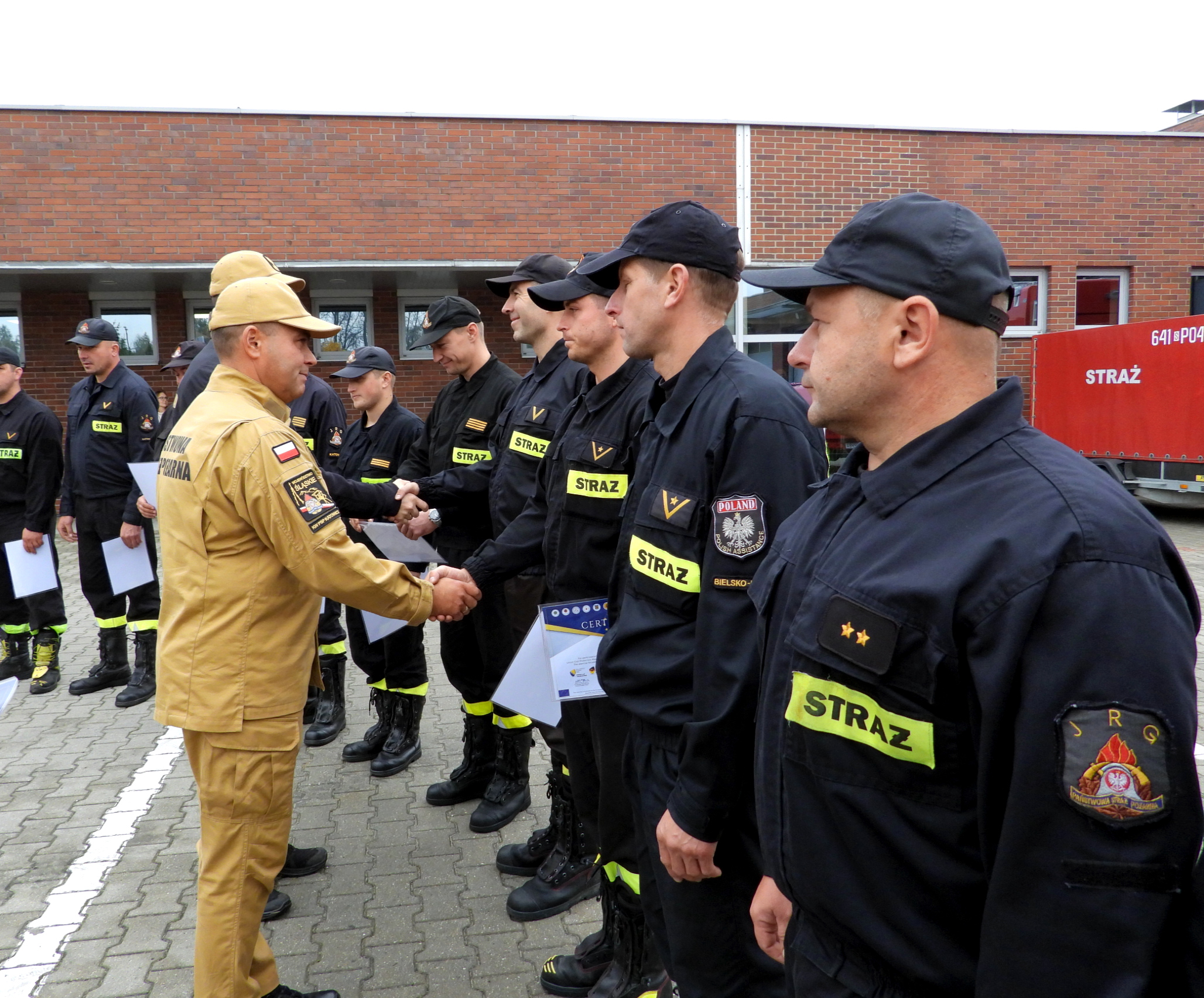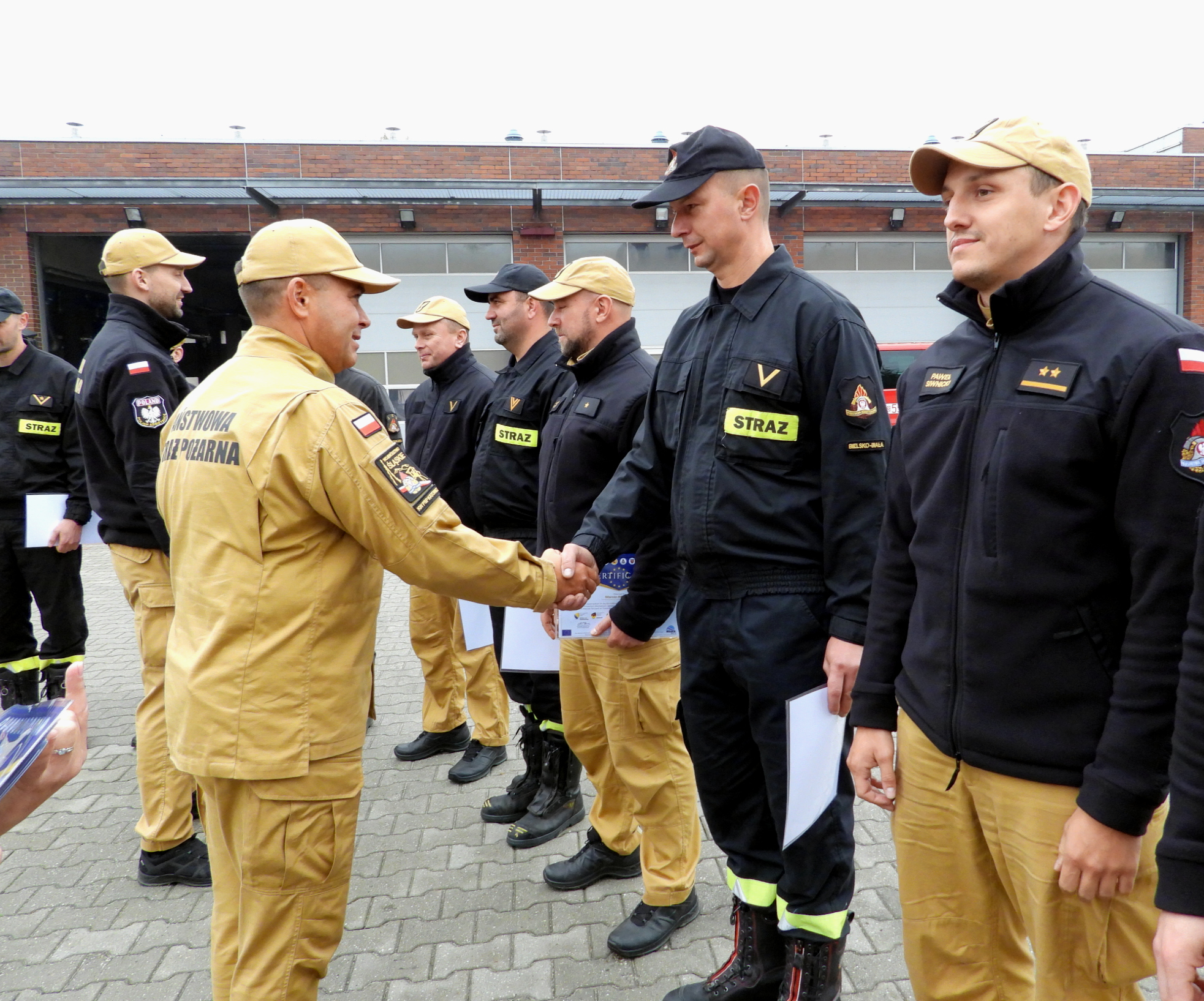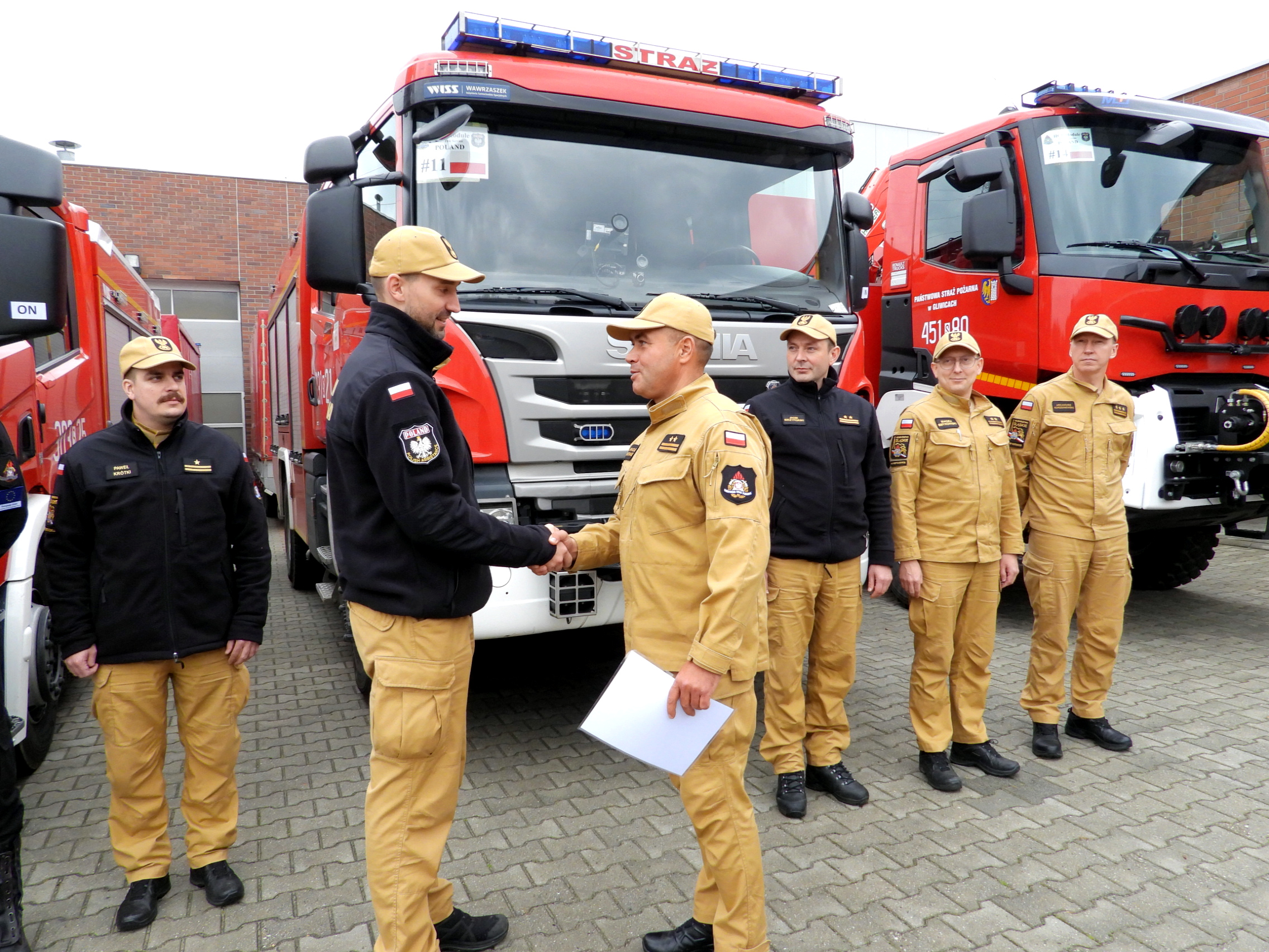 20 października na terenie Jednostki Ratowniczo – Gaśniczej nr 1 w Katowicach Zastępca Śląskiego Komendanta Wojewódzkiego PSP bryg. Arkadiusz Krzemiński wraz z Komendantem Miejskim PSP w Katowicach st. bryg. Arkadiuszem Korzeniewskim powitał powracający z ćwiczeń moduł HCP Poland. Zastępca Śląskiego Komendanta Wojewódzkiego w swoim okolicznościowym wystąpieniu podziękował za godne reprezentowanie Państwowej Straży Pożarnej oraz pogratulował zdobycia wysokich not na ćwiczeniach. Głos zabrali również dowódca modułu, mł. bryg. Jakub Filip z KG PSP oraz dowódca operacyjny bryg. Jacek Szczypiorski z KM PSP w Siemianowicach Śląskich, którzy podziękowali za wzorową postawę podczas ćwiczeń i recertfikacji. Następnie Zastępca Śląskiego Komendanta Wojewódzkiego oraz dowódca modułu wręczyli członkom Modułu certyfikaty udziału w ćwiczeniach.