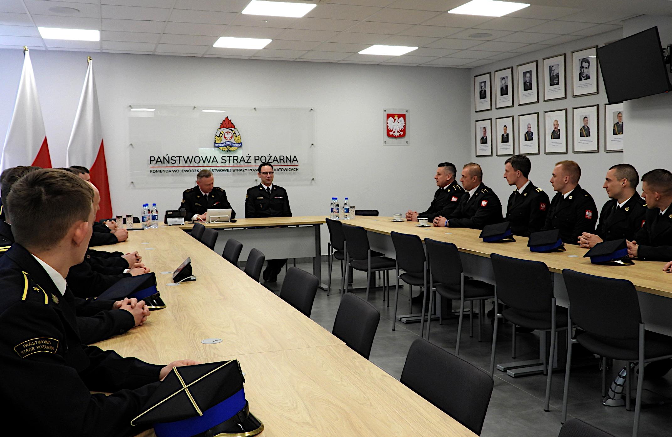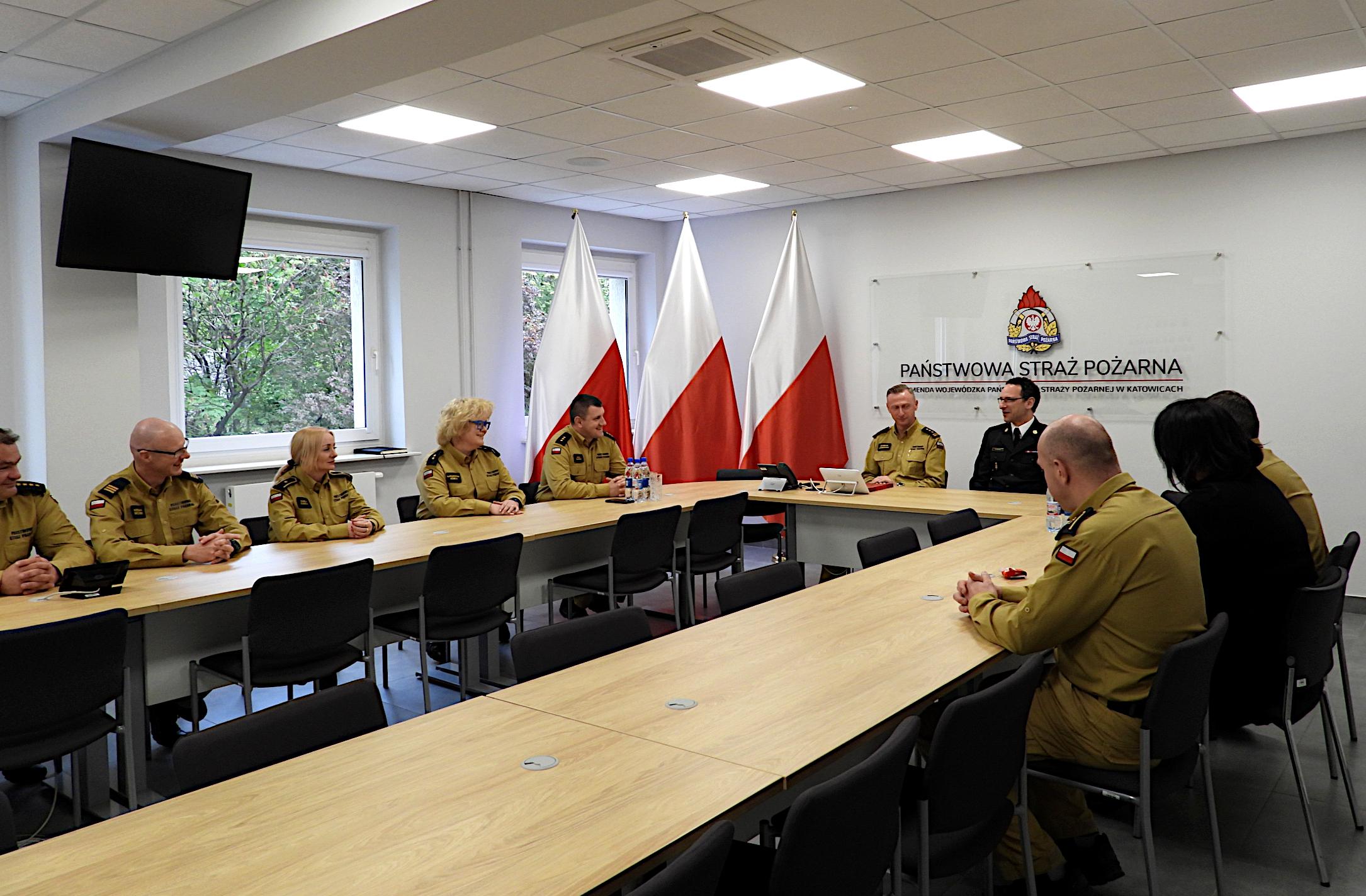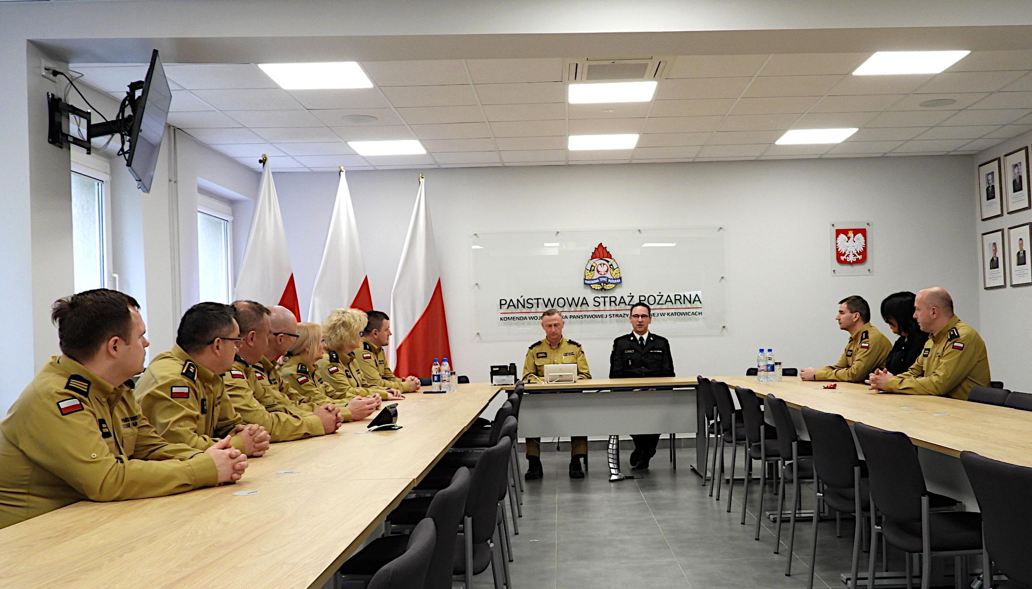 15 kwietnia 2024 roku, w siedzibie Komendy Wojewódzkiej PSP w Katowicach, Śląski Komendant Wojewódzki PSP st. bryg. Wojciech Kruczek i p.o. Zastępca st. bryg. Damian Legierski spotkali się z grupą strażaków - sportowców, którzy reprezentowali województwo śląskie na XXVIII Mistrzostwach Polski Strażaków w Futsalu o Puchar Komendanta Głównego PSP oraz funkcjonariuszami i pracownikiem Komendy Wojewódzkiej PSP w Katowicach, którzy byli zaangażowani w organizację i przebieg Mistrzostw.