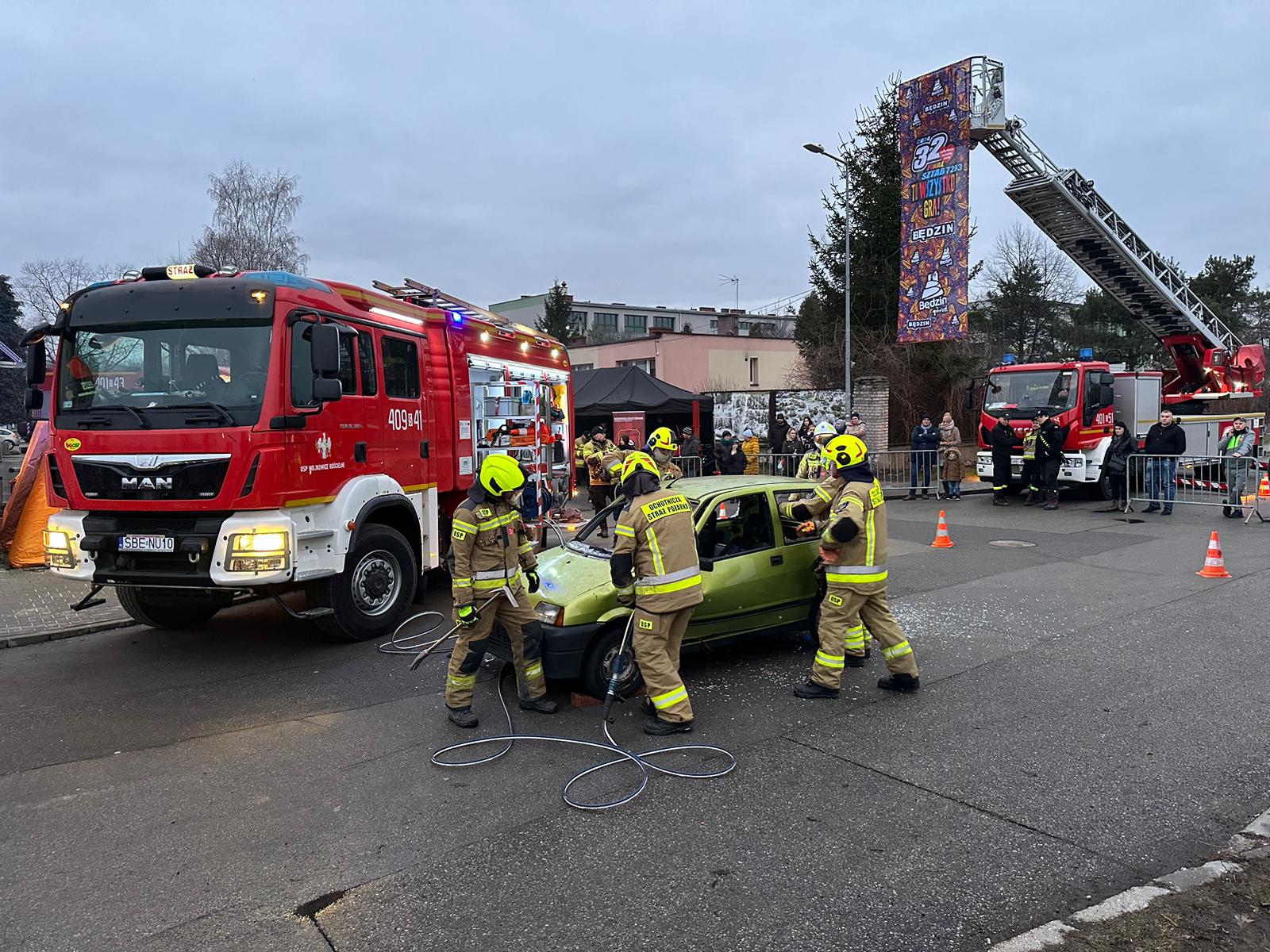 Natomiast przed halą zaprezentowano samochód ratowniczo - gaśniczy należący do Komendy Miejskiej PSP w Sosnowcu, a uczestnicy finału mogli także w zadymionym namiocie – wypełnionym bezpiecznym dymem, mającym na celu prezentację warunków zadymienia w sytuacji pożaru wewnętrznego, przejść instruktaż prawidłowego poruszania się w sytuacji zadymienia oraz prawidłowej ewakuacji podczas pożaru.