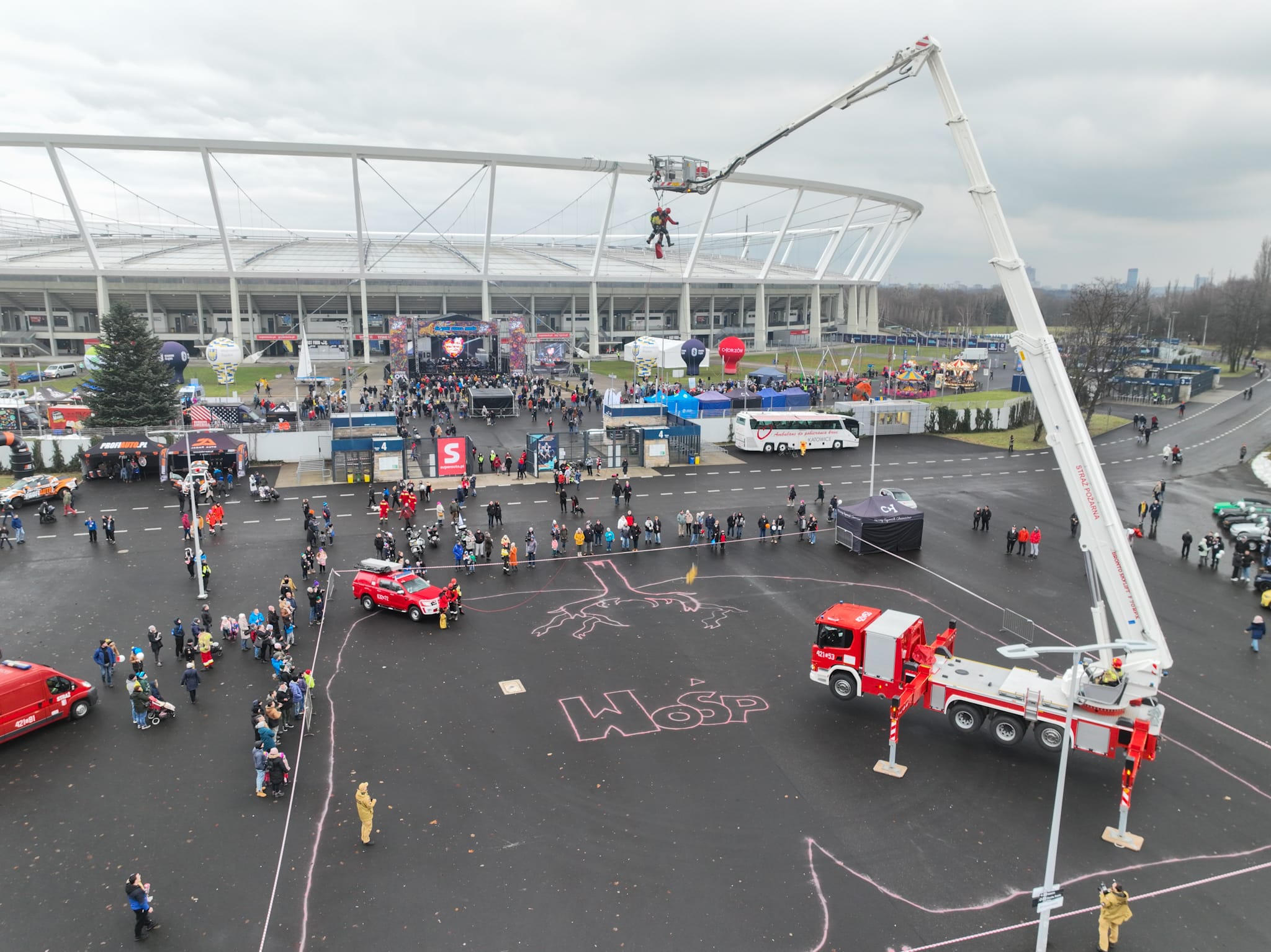 W Chorzowie na Stadionie Śląskim w ramach organizowanego Wojewódzkiego Finału WOŚP, strażacy przygotowali dwa pokazy.