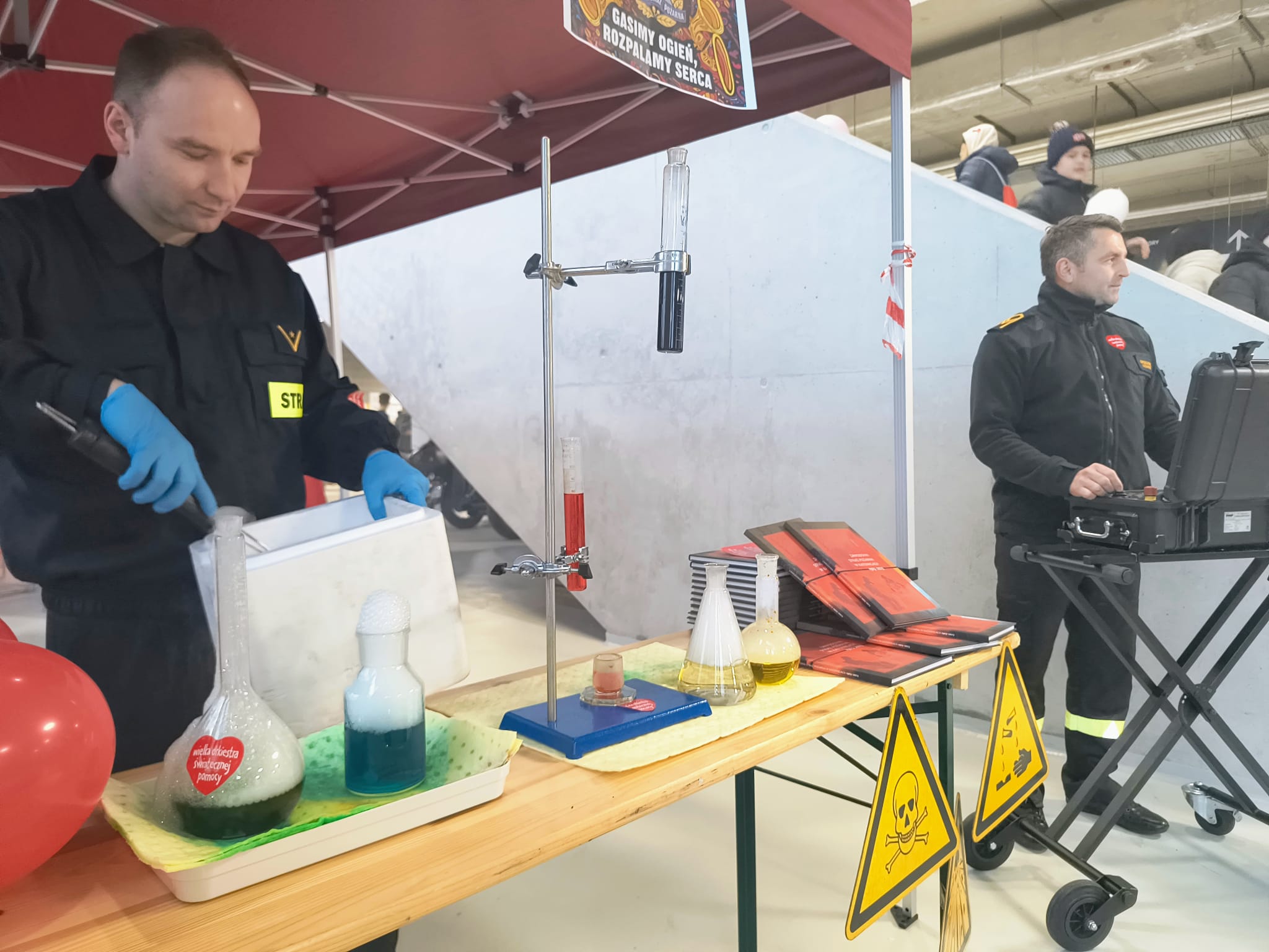 Specjalistyczna grupa ratownictwa chemiczno – ekologicznego z Komendy Miejskiej PSP w Katowicach przygotowała interaktywne stoisko - laboratorium, na którym odbywał się pokaz reakcji chemicznych, prezentacje sprzętu pomiarowego, będącego na wyposażeniu jednostki, w tym robota IBIS, który jest przeznaczony do prowadzenia rozpoznania i poboru próbek.