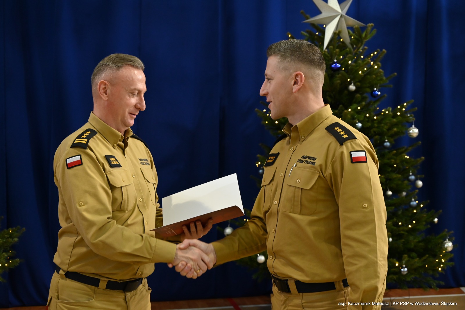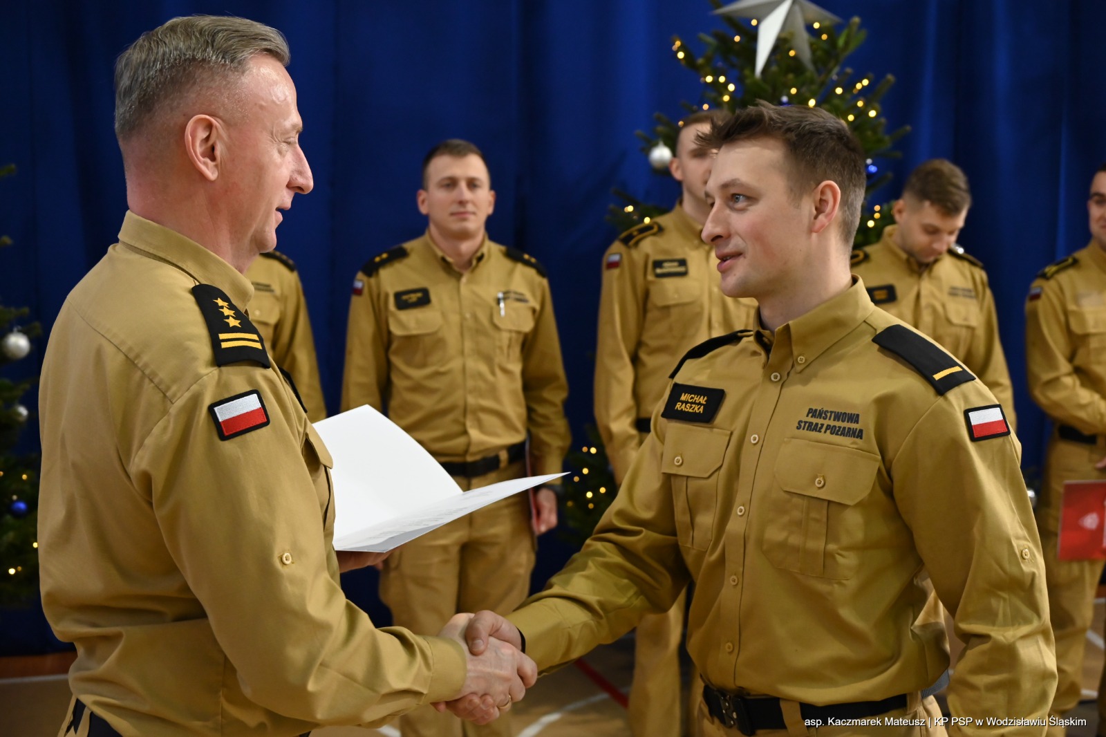 19 grudnia 2025 roku, w siedzibie Komendy Wojewódzkiej PSP w Katowicach, Śląski Komendant Wojewódzki PSP st. bryg. Damian Legierski spotkał się z członkami Kompanii Reprezentacyjnej Komendy Wojewódzkiej PSP w Katowicach.