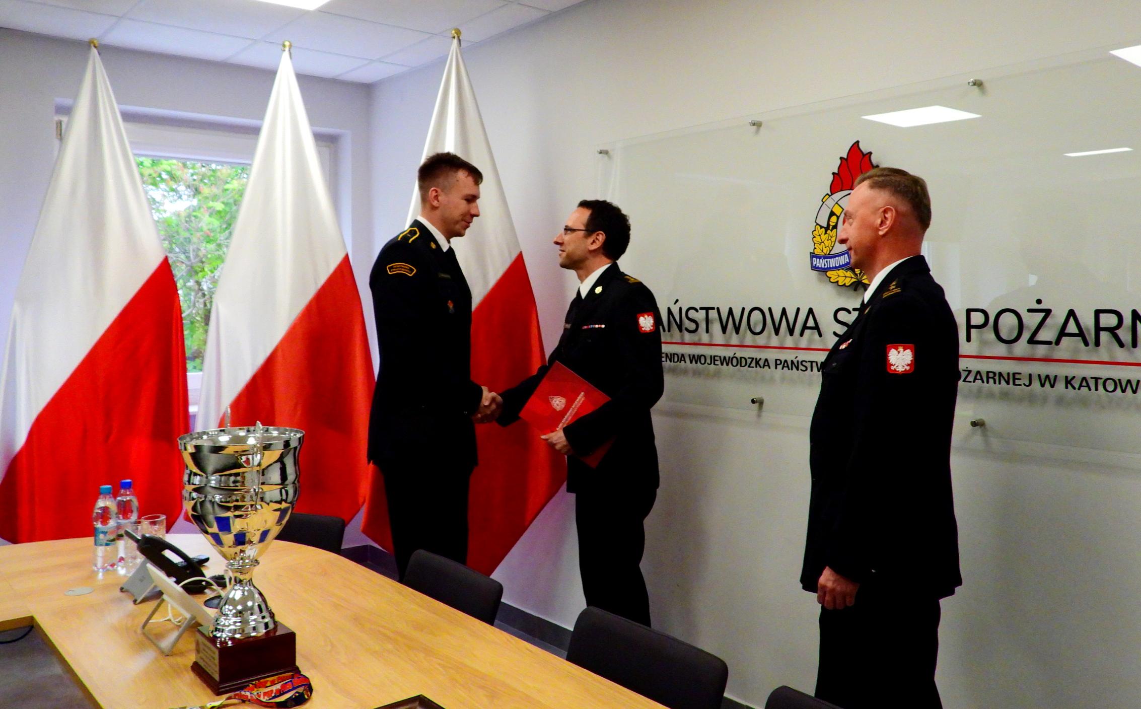 24 kwietnia 2024 roku w siedzibie Komendy Wojewódzkiej PSP w Katowicach, Śląski Komendant Wojewódzki PSP st. bryg. Wojciech Kruczek wraz z zastępcą st. bryg. Damianem Legierskim spotkali się ze strażakami PSP województwa śląskiego, którzy zdobyli I miejsce na XXXIX Mistrzostwach Polski Strażaków PSP w Piłce Siatkowej w Warcie.