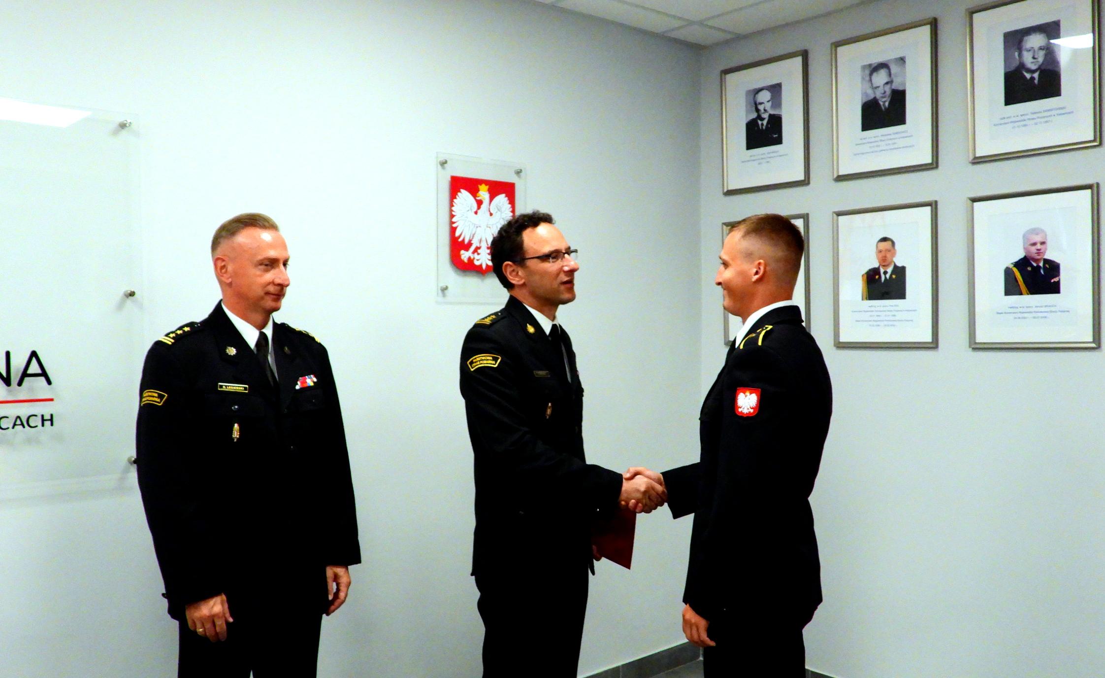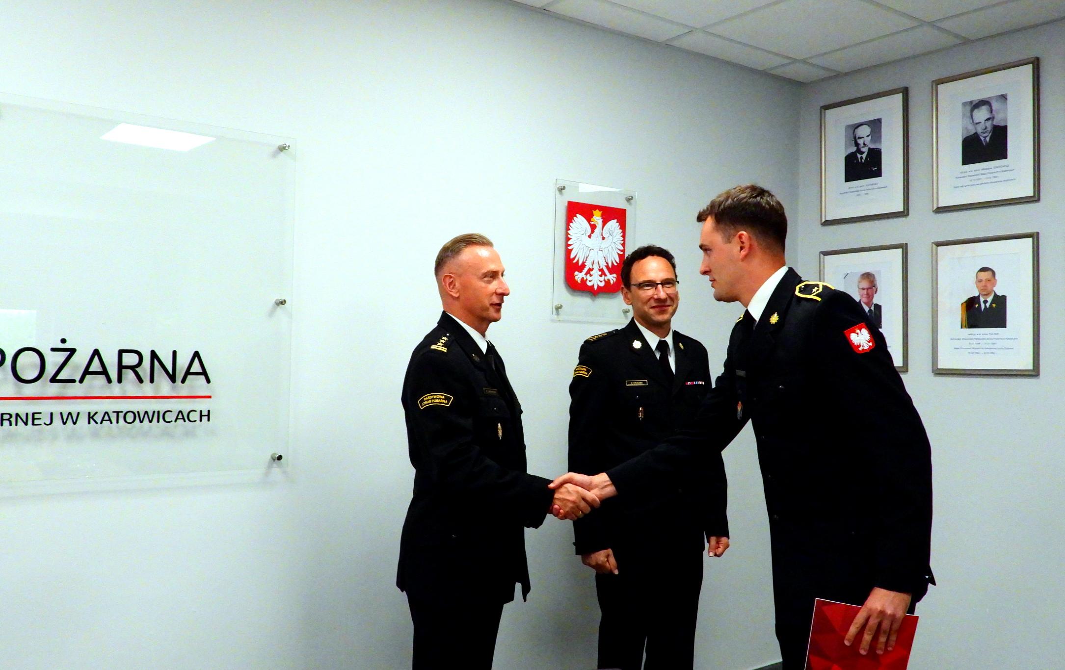 24 lipca 2024 roku, w siedzibie Komendy Wojewódzkiej PSP w Katowicach, Śląski Komendant Wojewódzki PSP st. bryg. Wojciech Kruczek wraz z Zastępcą st. bryg. Damianem Legierskim spotkali się z grupą strażaków, którzy w wyniku zmian organizacyjnych zakończyli swoje członkostwo w Kompanii Reprezentacyjnej Komendy Wojewódzkiej PSP w Katowicach. Podczas spotkania Śląski Komendant Wojewódzki PSP podziękował funkcjonariuszom za poświęcony czas oraz godne reprezentowanie Państwowej Straży Pożarnej województwa. Wręczył także, przyznane z tej okazji, nagrody pieniężne.