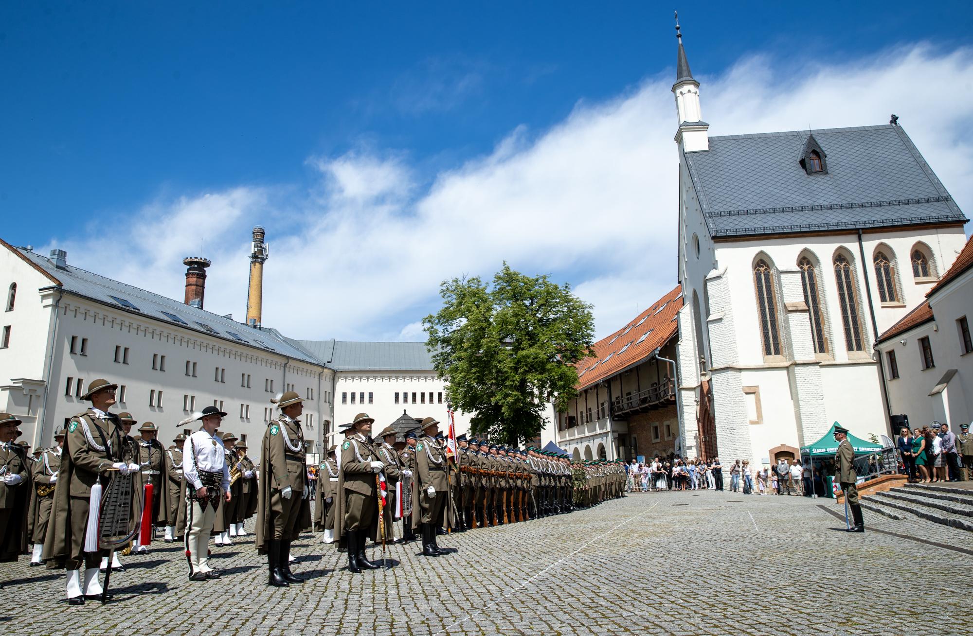 Podczas głównych uroczystości na dziedzińcu Zamku Komendant Śląskiego Oddziału Straży Granicznej przywitał zaproszonych gości, w swoim okolicznościowym przemówieniu podkreślił doskonałą współpracę pomiędzy Śląskim Oddziałem SG a innymi służbami mundurowymi oraz instytucjami współpracującymi z nami na terenie całego regionu.