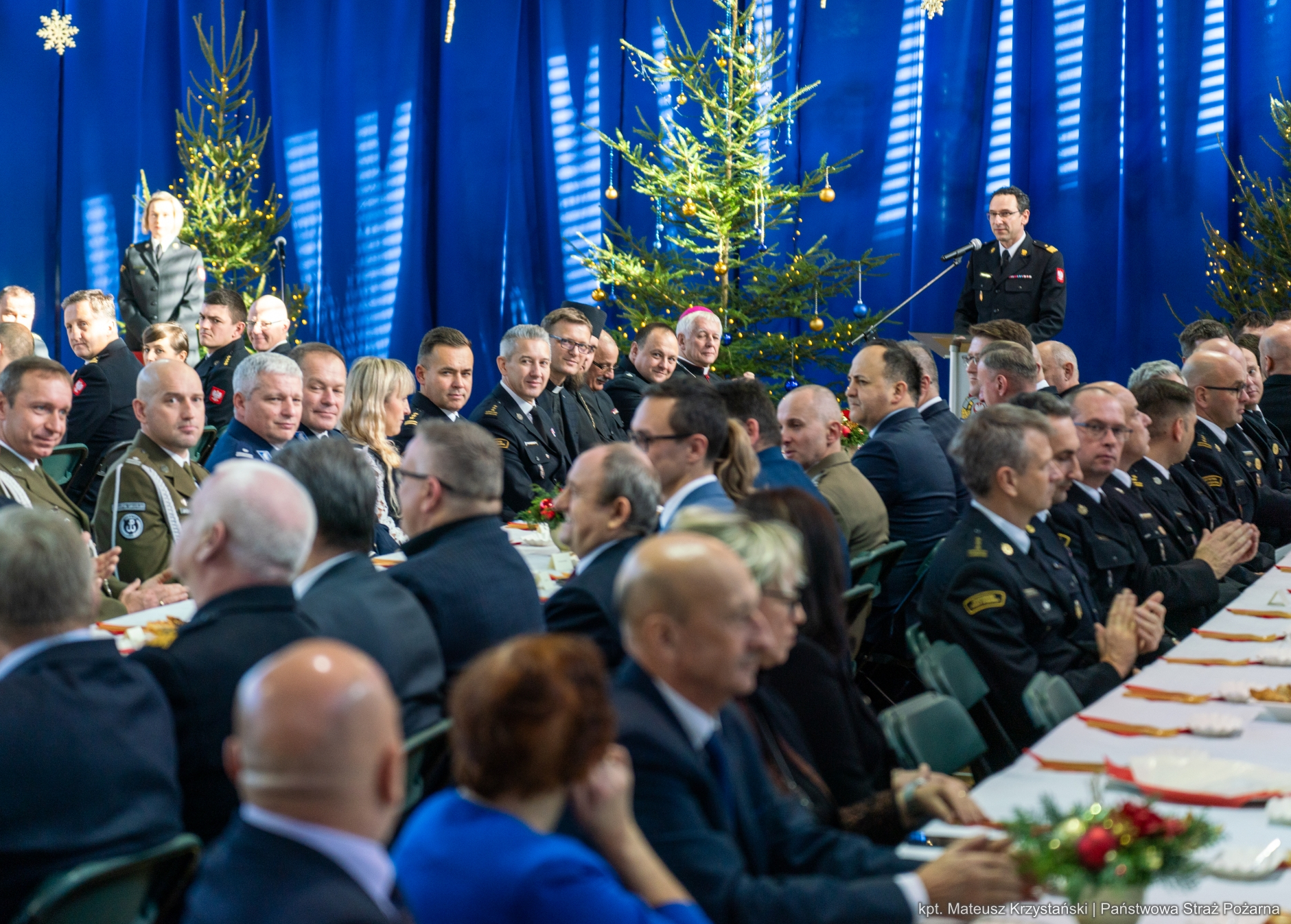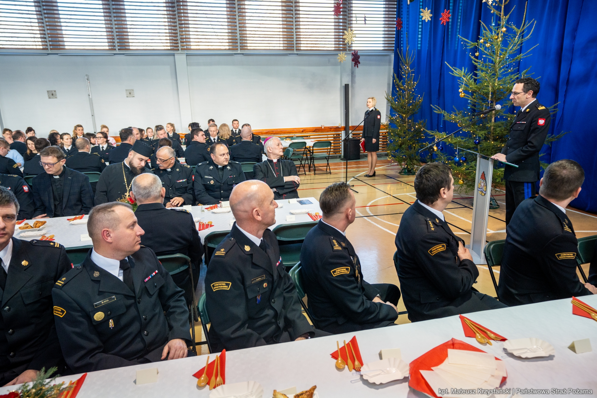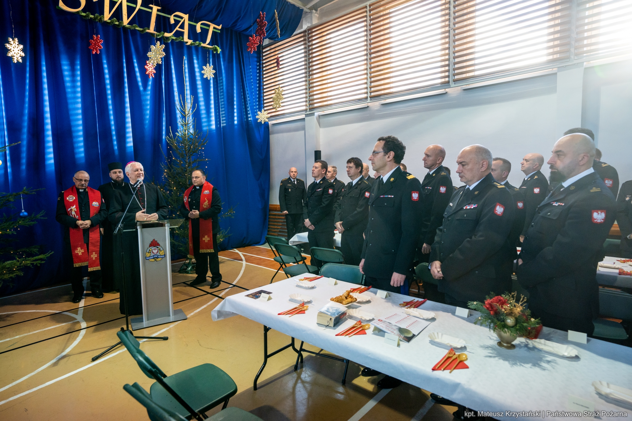 Nadchodzi czas, kiedy składamy sobie życzenia i dzielimy się opłatkiem, symbolem wielkiej nadziei. 18 grudnia 2024 roku, w siedzibie Komendy Wojewódzkiej Państwowej Straży Pożarnej w Katowicach odbyło się spotkanie opłatkowe, które było okazją do wspólnego przeżywania wyjątkowego nastroju Świąt Bożego Narodzenia. Przy wspólnym stole zasiedli funkcjonariusze oraz pracownicy cywilni komendy wojewódzkiej, komendanci powiatowi i miejscy PSP województwa śląskiego, emeryci oraz zaproszeni goście.