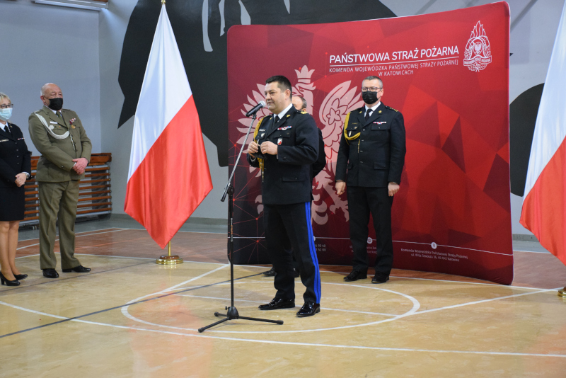 Płk. w st. spocz. Marek Kowacki był przez 15 lat pracownikiem Komendy Wojewódzkiej PSP w Katowicach. Podczas uroczystości podziękował wszystkim za dotychczasową współpracę oraz życzył satysfakcji z pracy zawodowej. Otrzymał także serdeczne podziękowania z rąk nadbryg. Jacka Kleszczewskiego, za trud i pracę świadczoną przez te lata na rzecz straży pożarnej.