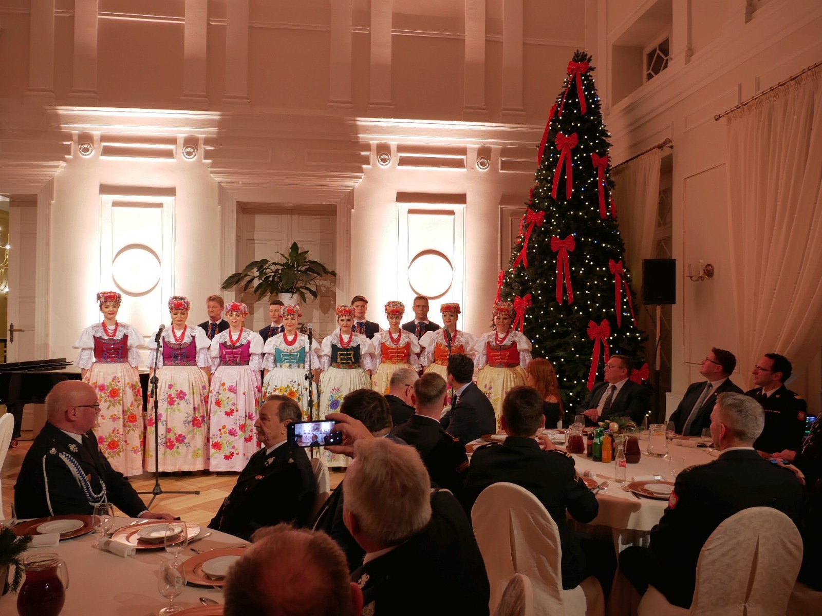 W przedświątecznej atmosferze spotkali się strażacy Ochotniczych Straży Pożarnych i Państwowej Straży Pożarnej oraz przedstawiciele instytucji współpracujących. Wyjątkowym elementem tego spotkania było wykonanie kolęd i pastorałek przez artystów Zespołu Pieśni i Tańca „ŚLĄSK”, bowiem spotkanie zorganizowano w kompleksie Pałacowo – Parkowym Zespołu Pieśni i Tańca "ŚLĄSK" im. Stanisława Hadyny w Koszęcinie. Była to także okazja do złożenia życzeń świątecznych i noworocznych, podkreślenia jedności strażackiej rodziny oraz omówienia planów na nadchodzący nowy rok.
