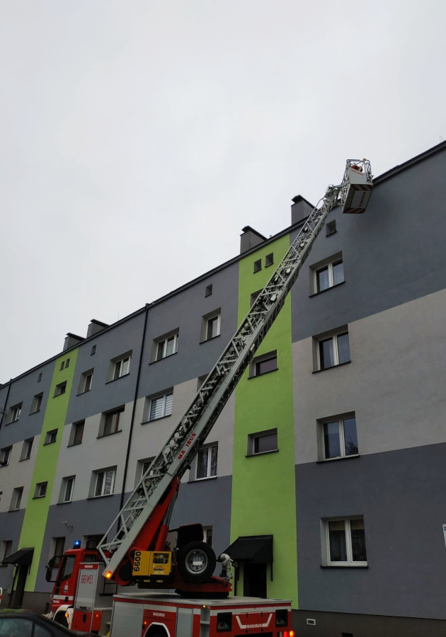 W Katowicach na osiedlu Tysiąclecia, na jednym z wysokich budynków wielorodzinnych wiatr zerwał styropapę o powierzchni ok. 120m2 . Na miejsce zadysponowano specjalistyczną grupę ratownictwa wyskościowego z JRG w Radzionkowie oraz zastępy z Komendy Miejskiej PSP w Katowicach. Ratownicy zabezpieczyli styropapę linami. Z uwagi na niekorzystne warunki atmosferyczne działania będą kontynuowane w dniu dzisiejszym.