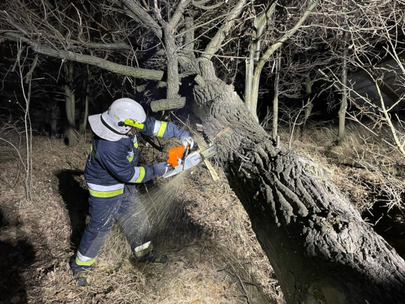Powiat tarnogórski, miejscowość Kalety. W wyniku silnego wiatru drzewo uderzyło w przejeżdżający, drogą DW 908 samochód osobowy. Kierowca został uwięziony w pojeździe. Strażacy przy pomocy specjalistycznego sprzętu uwolnili poszkodowanego i przekazali zespołowi ratownictwa medycznego.