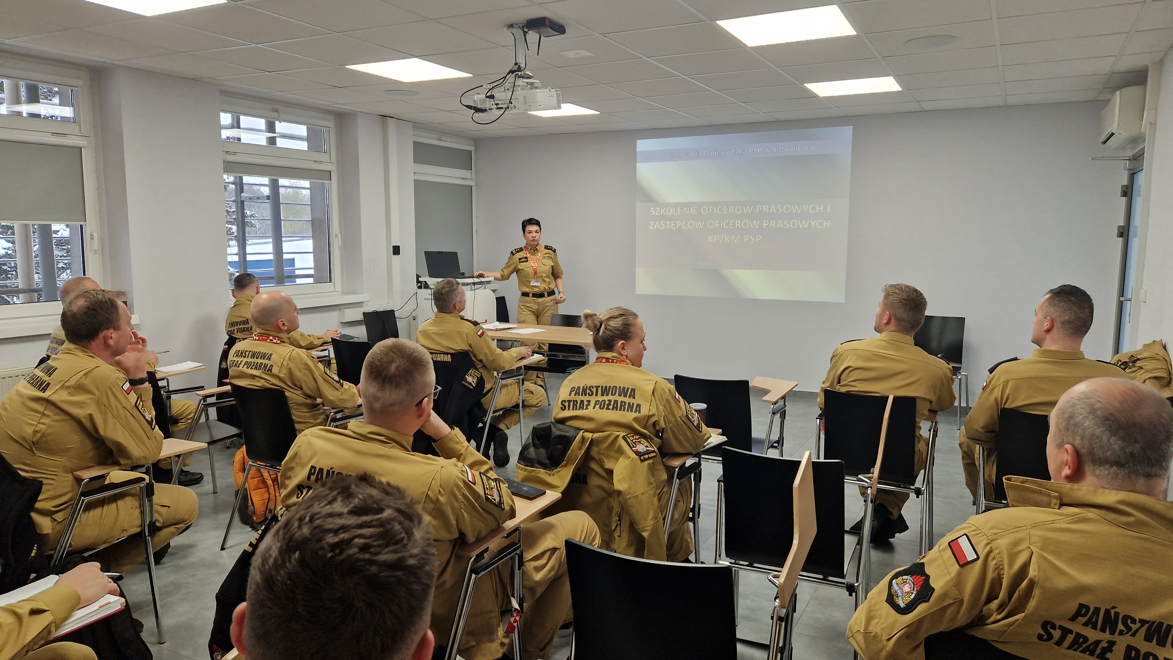 W dniach 21 oraz 28 i 29 listopada 2023 roku w siedzibie Komendy Wojewódzkiej PSP w Katowicach odbył się cykl szkoleń dla oficerów prasowych oraz zastępców oficerów prasowych komendantów powiatowych i miejskich PSP województwa śląskiego.