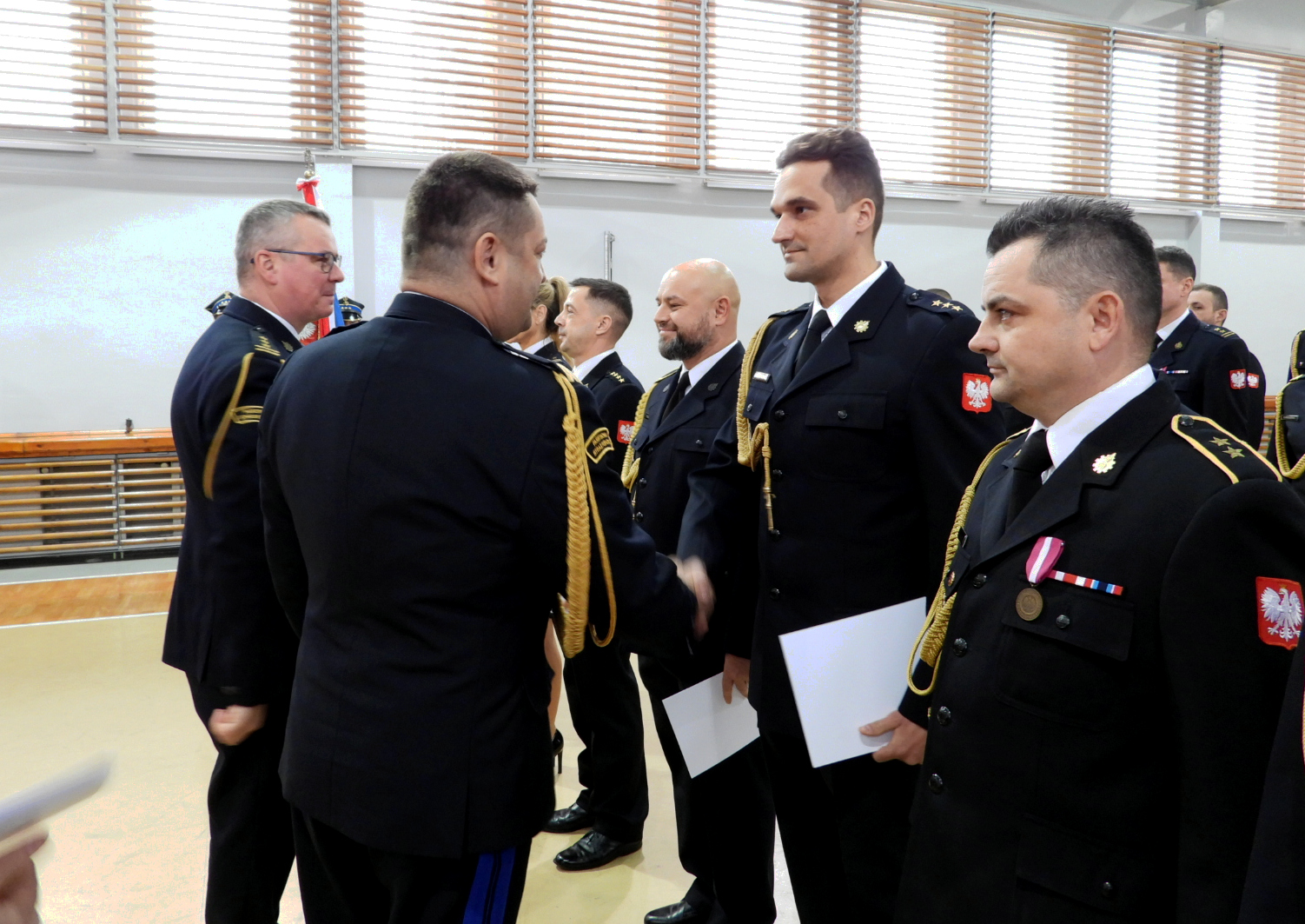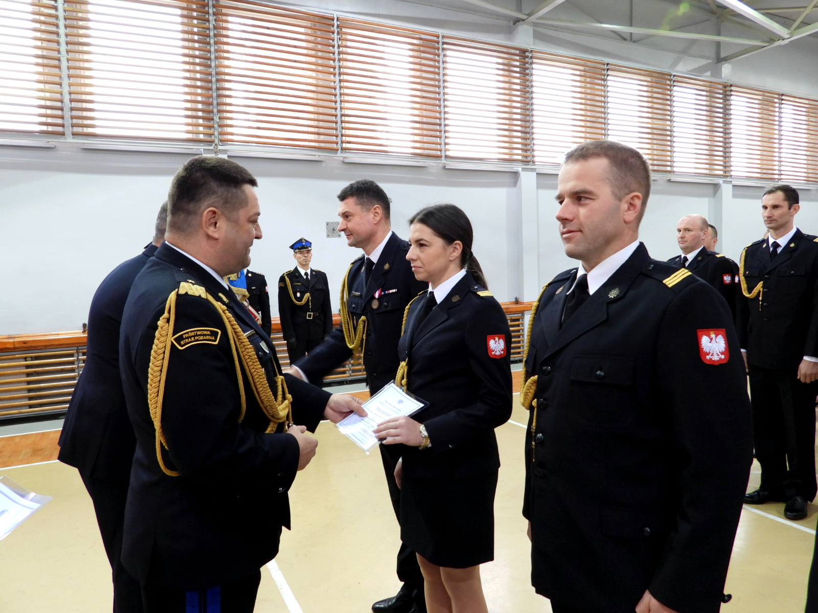 W trakcie uroczystości Śląski Komendant Wojewódzki PSP nadbryg. Jacek Kleszczewski w asyście st. bryg. Mirosława Synowca, odznaczył Brązowym Medalem za Długoletnią Służbę oraz Brązowym Medalem za Zasługi dla Pożarnictwa pracownika cywilnego oraz funkcjonariusza KW PSP w Katowicach. Następnie 12 funkcjonariuszom z Komendy Wojewódzkiej PSP w Katowicach, Komend Powiatowych PSP w Cieszynie i Myszkowie wręczył akty nadania wyższych stopni służbowych.