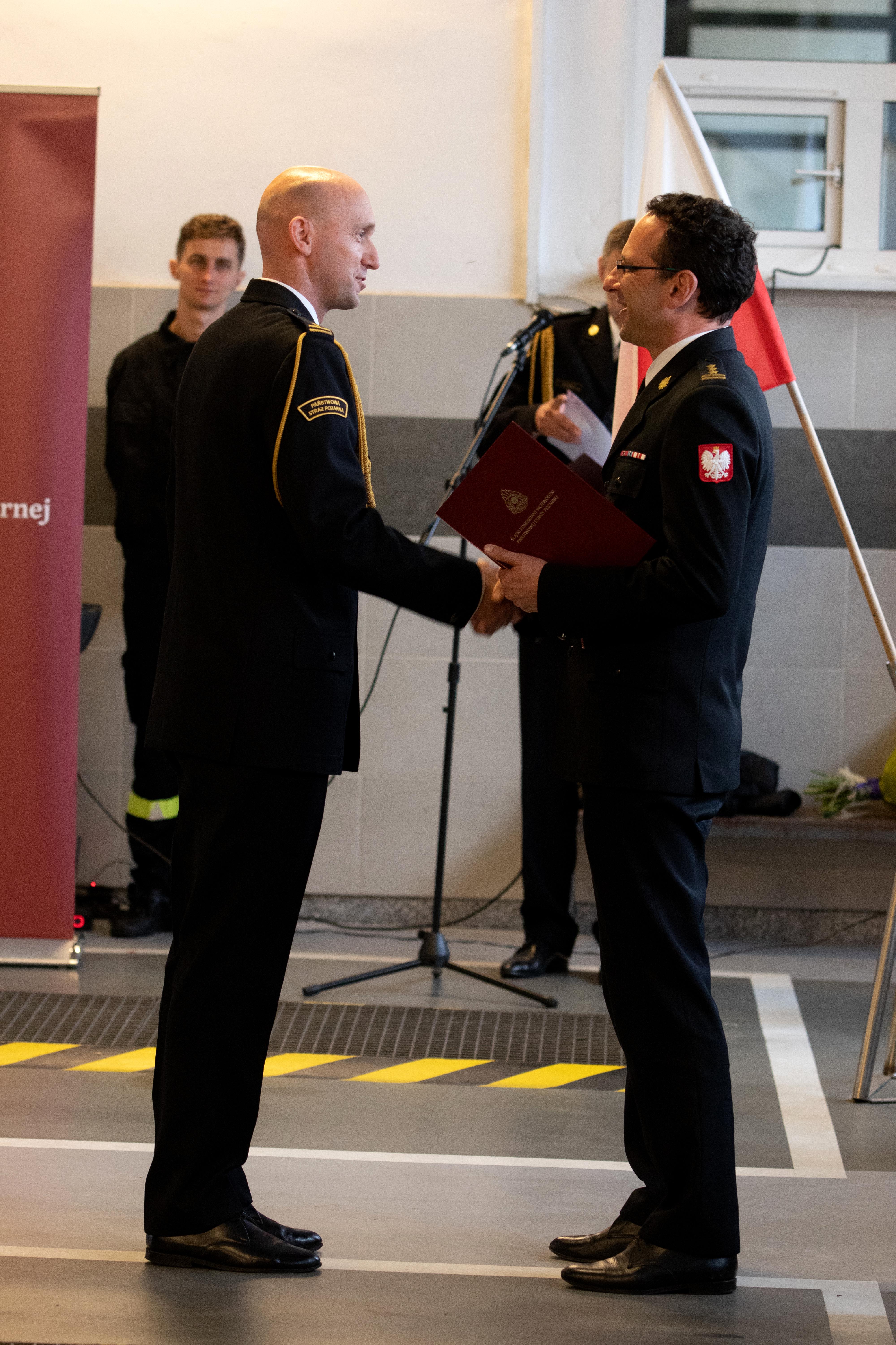 Uroczystość rozpoczęła się od złożenia meldunku Śląskiemu Komendantowi Wojewódzkiemu PSP st. bryg. Wojciechowi Kruczkowi. Meldunek złożył dowódca uroczystości - asp. Wojciech Kasperzec.