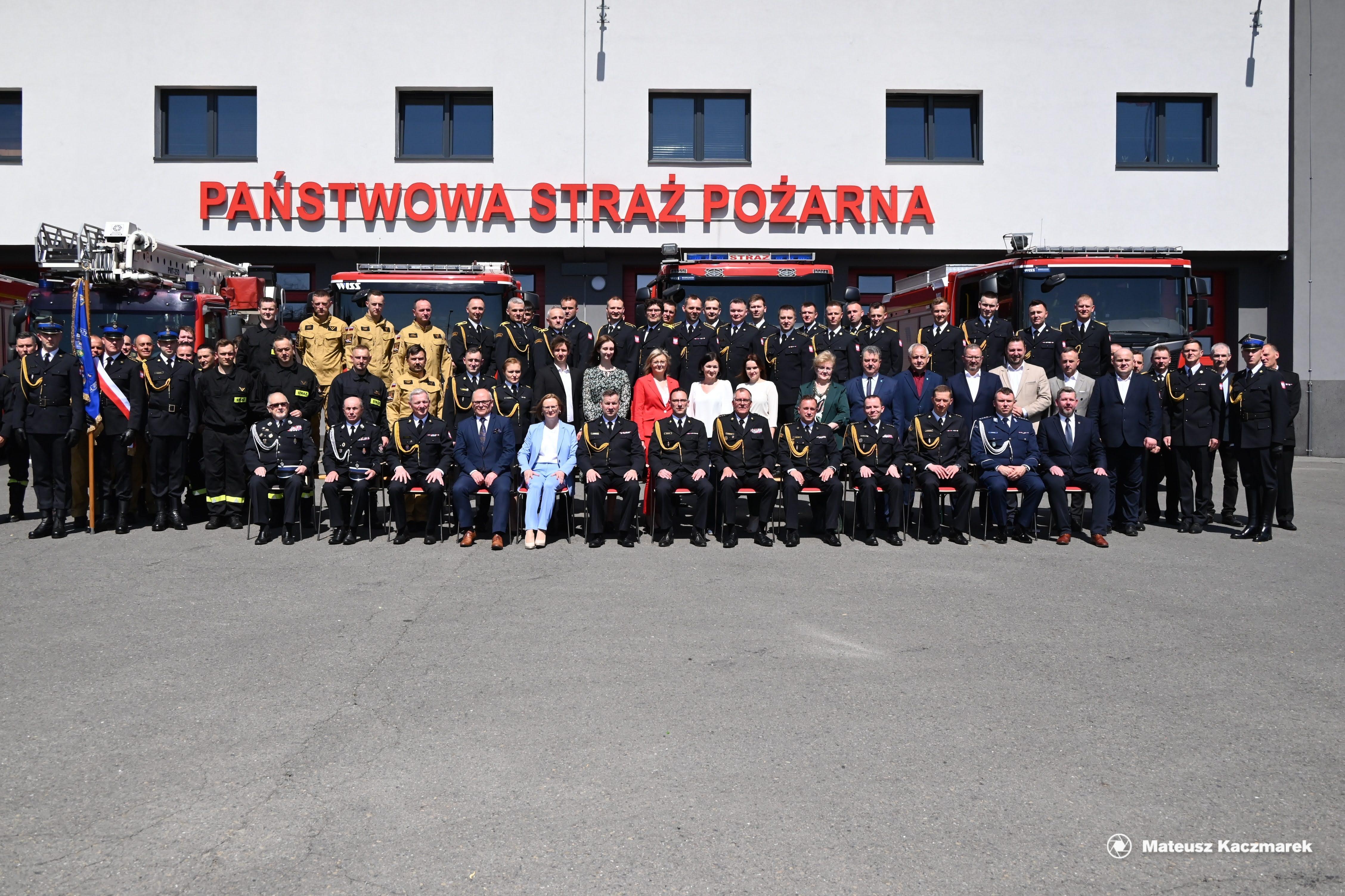 W uroczystości udział wzięli: st. bryg. Wojciech Kruczek - Śląski Komendant Wojewódzki PSP, Pan Leszek Bizoń - Starosta Wodzisławski, przedstawiciele lokalnych władz samorządowych oraz służb mundurowych, komendanci powiatowi i miejscy PSP z województwa śląskiego, Prezes Zarządu Oddziału Powiatowego ZOSP RP.