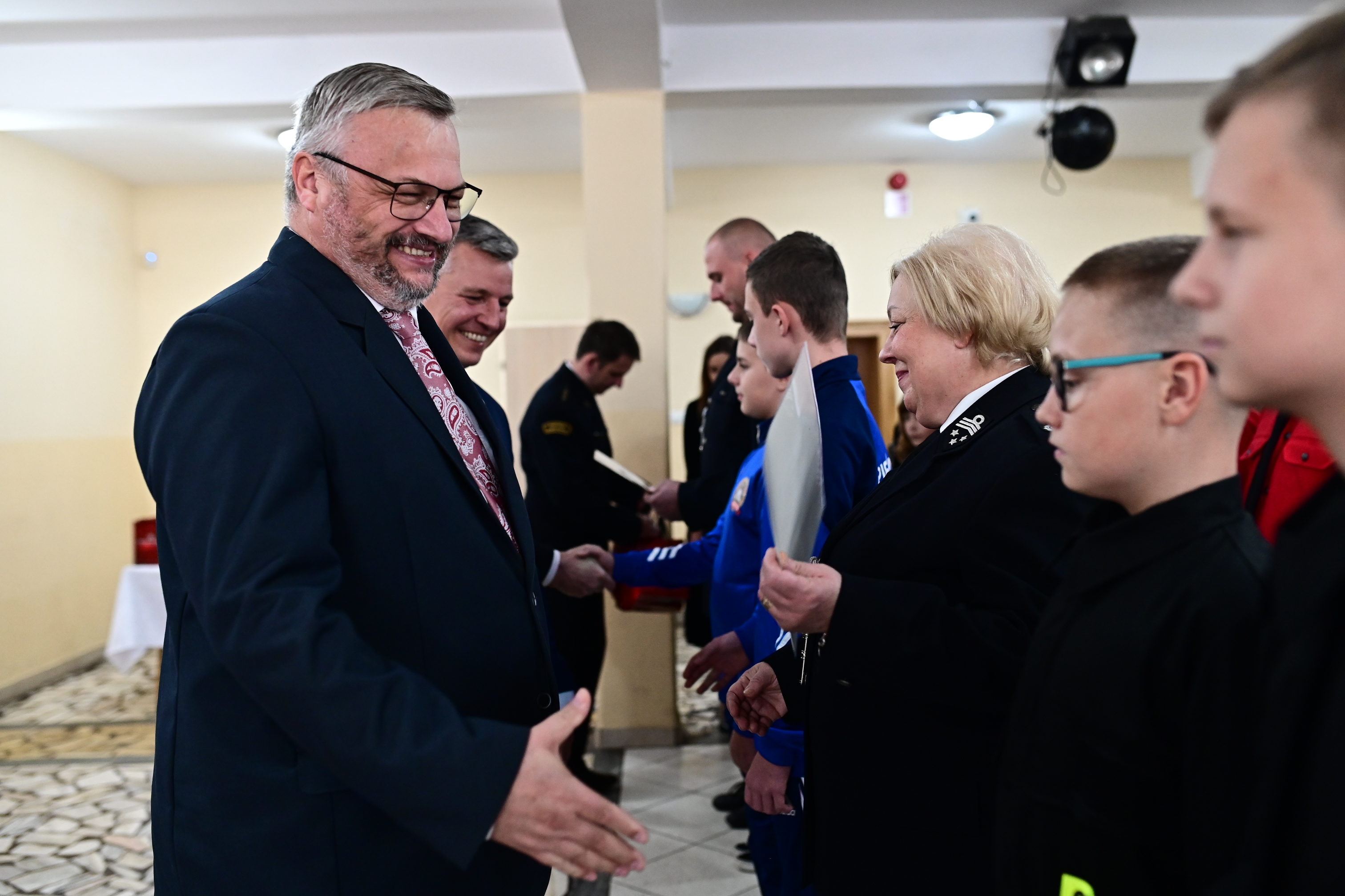 Uroczysta zbiórka z okazji wręczenia promes dotacji dla Młodzieżowych Drużyn Pożarniczych z powiatu pszczyńskiego