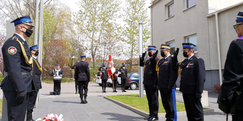 Uroczyste obchody Dnia Strażaka rozpoczęły się od modlitwy i złożenia kwiatów przez Śląskiego Komendanta Wojewódzkiego PSP nadbryg. Jacka Kleszczewskiego i jego zastępców st. bryg. Bogdana Jędrochę oraz st. bryg. Mirosława Synowca, a także Komendanta Centralnej Szkoły PSP bryg. Piotra Placka, pod tablicą upamiętniającą strażaków poległych na służbie.
