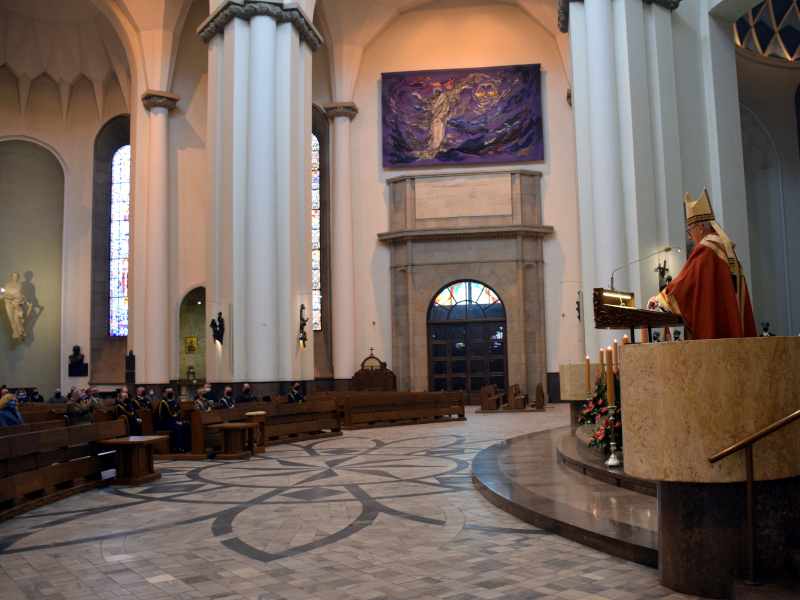 Ostatnią częścią dzisiejszych uroczystości była msza święta w intencji strażaków, odprawiona w Archikatedrze Chrystusa Króla w Katowicach. Mszę celebrował Jego Ekscelencja arcybiskup Wiktor Skworc - Metropolita Katowicki. Uczestniczył w niej także bp dr Marian Niemiec - Biskup Diecezji Katowickiej Kościoła Ewangelicko - Augsburskiego w RP.