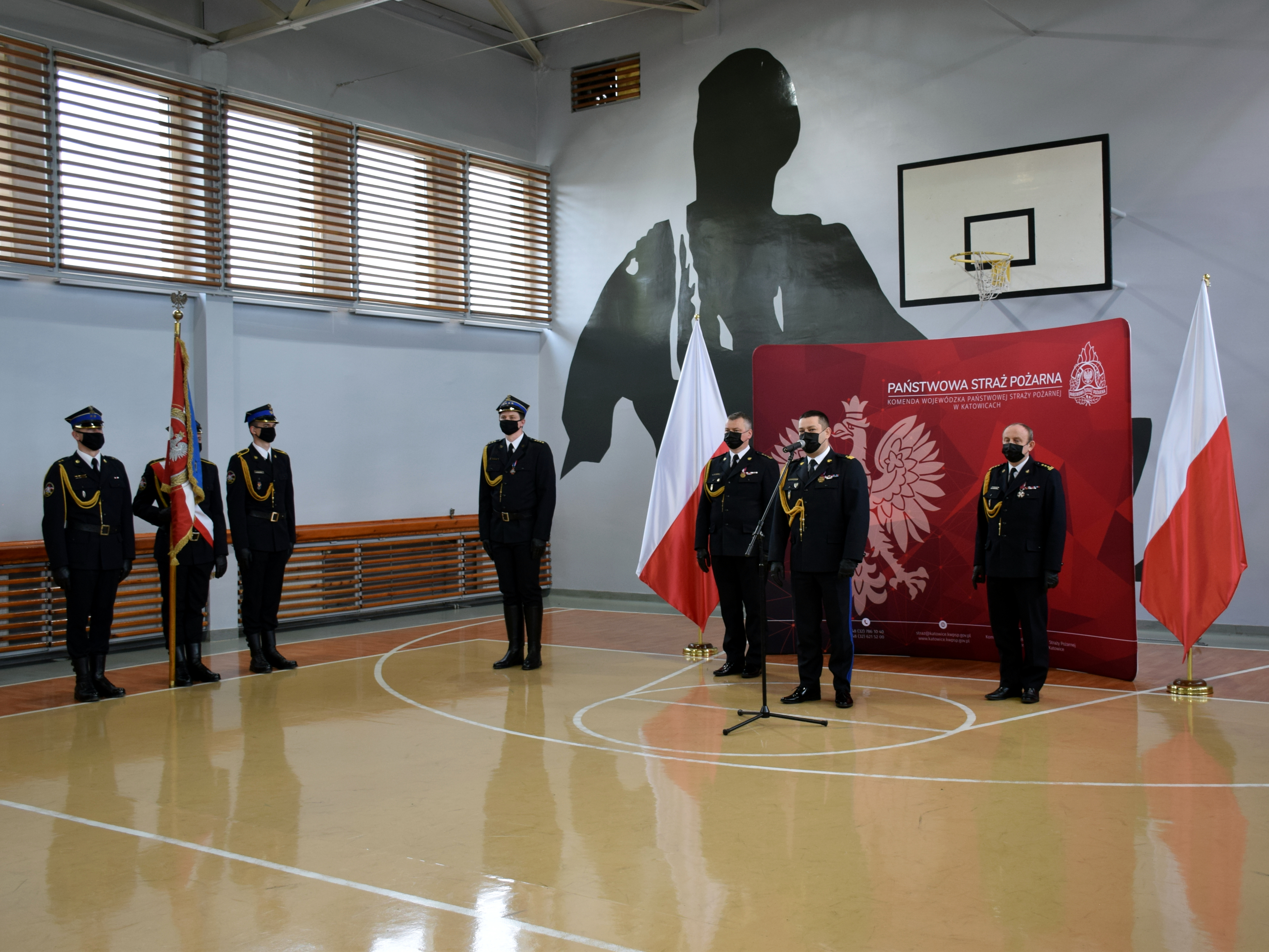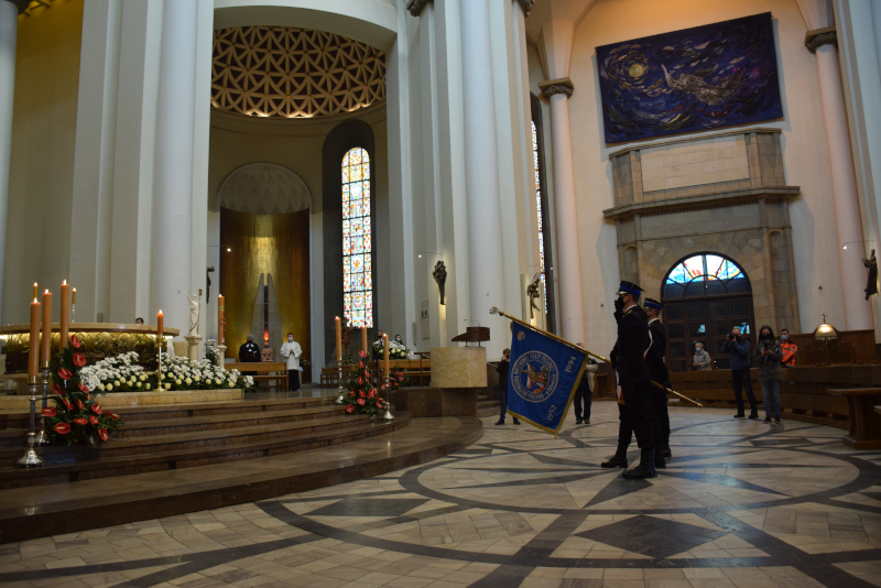 Mszę uświetniła obecność pocztów sztandarowych Komendy Wojewódzkiej PSP w Katowicach oraz Oddziału Wojewódzkiego ZOSP RP w Katowicach.