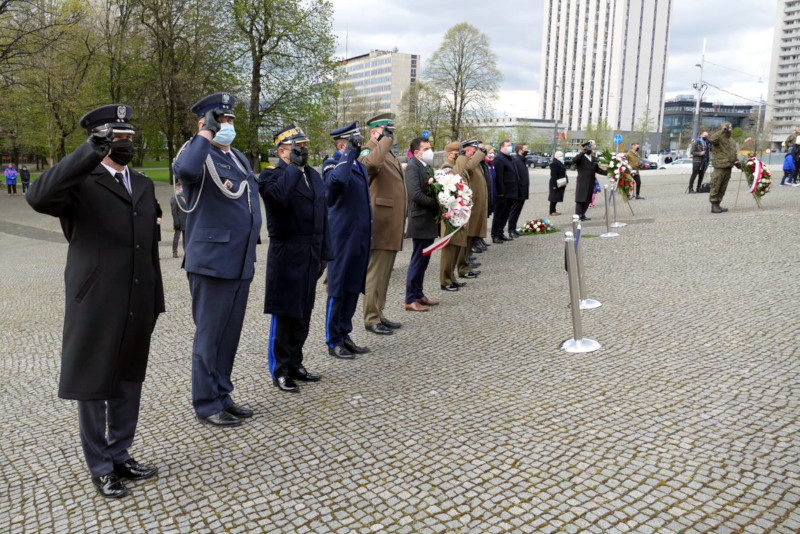 Uroczyste obchody rocznicy uchwalenia Konstytucji 3 Maja oraz 100. rocznicy wybuchu III Powstania Śląskiego rozpoczęły się pod pomnikiem Powstańców Śląskich. Po odegraniu hymnu państwowego i podniesieniu flagi państwowej minister, przedstawiciele administracji rządowej i samorządowej oraz przedstawiciele służb mundurowych złożyli kwiaty pod pomnikiem. Państwową Straż Pożarną reprezentował Śląski Komendant Wojewódzki PSP nadbryg. Jacek Kleszczewski.