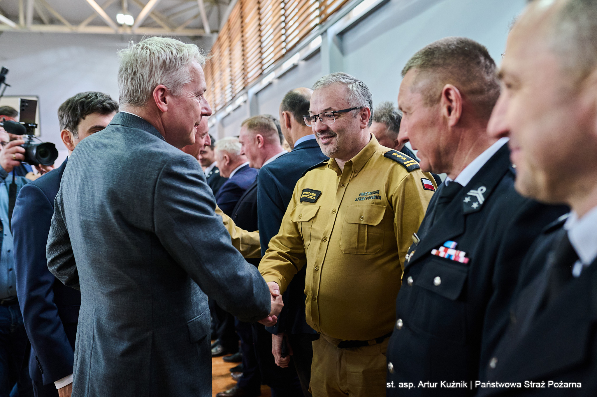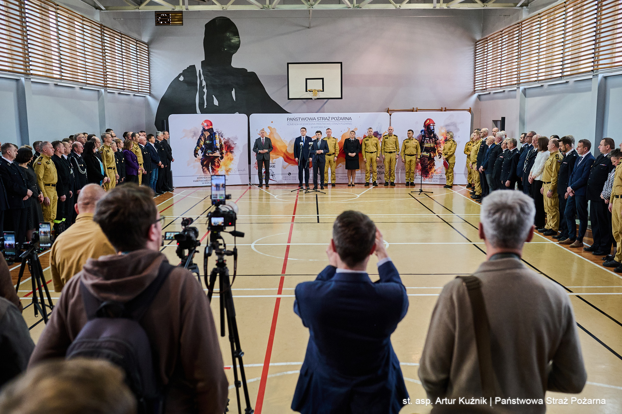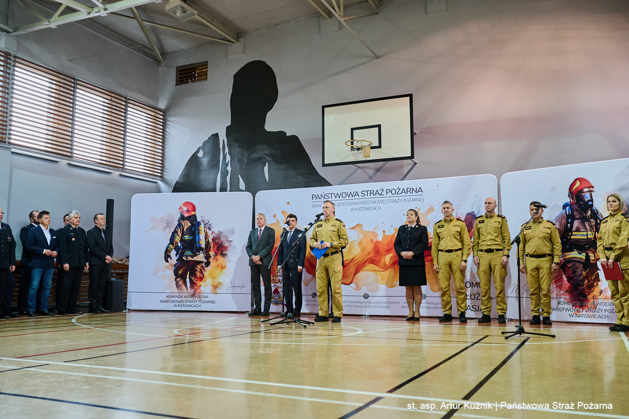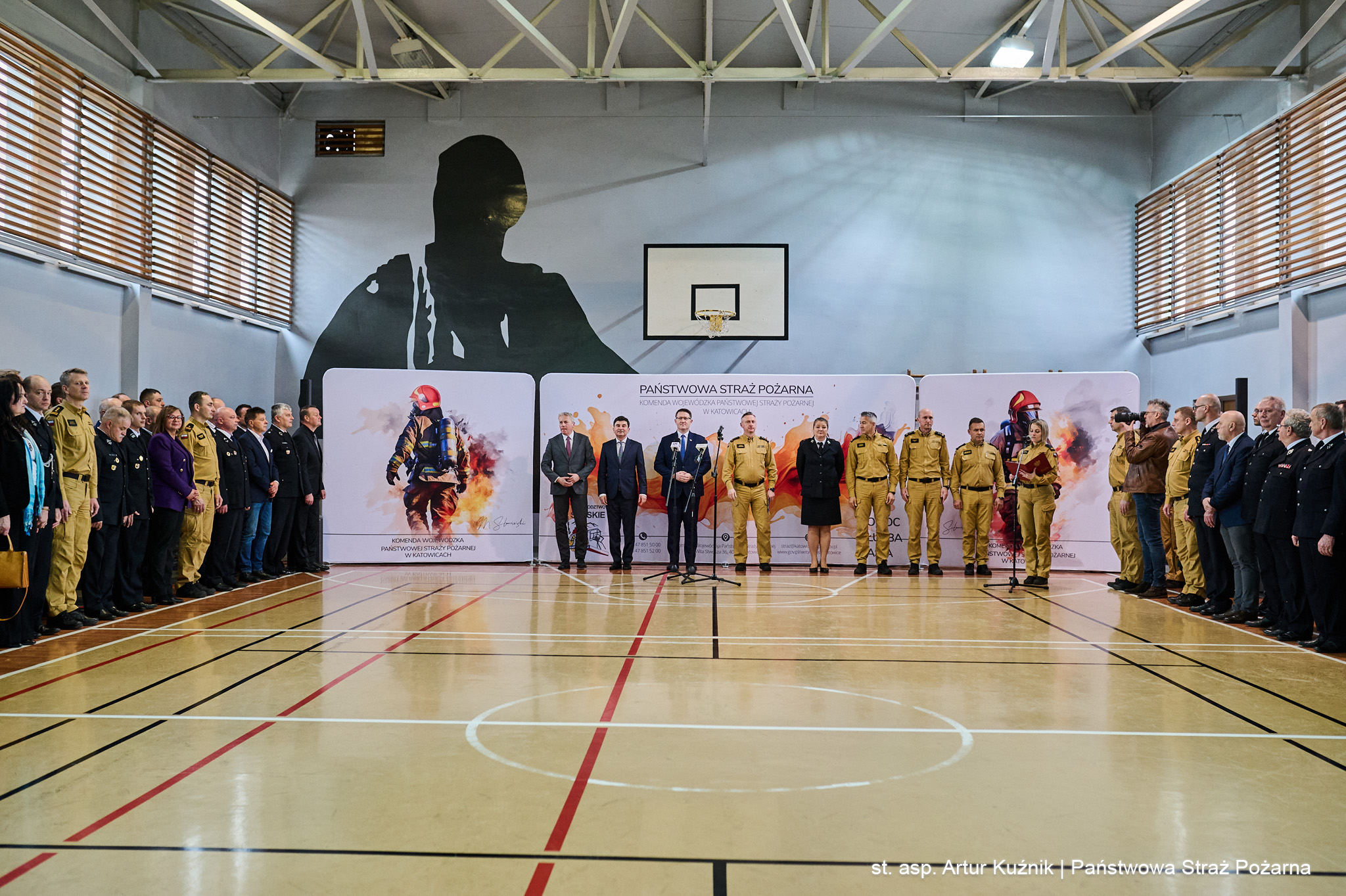 W uroczystości wzięli udział: Pan Marek Wójcik - Wojewoda Śląski, Pan Wojciech Saługa - Marszałek Województwa Śląskiego, Pan Mateusz Pindel -Prezes Wojewódzkiego Funduszu Ochrony Środowiska i Gospodarki Wodnej w Katowicach, st. bryg. Damian Legierski - Śląski Komendant Wojewódzki PSP wraz z zastępcami st. bryg. Arkadiuszem Krzemińskim, st. bryg. Romanem Klechą i bryg. Zbigniewem Dykiem oraz dh. Sylwia Radwańska - Zastępca Dyrektora Zarządu Wykonawczego Oddziału Wojewódzkiego ZOSP RP Województwa Śląskiego.