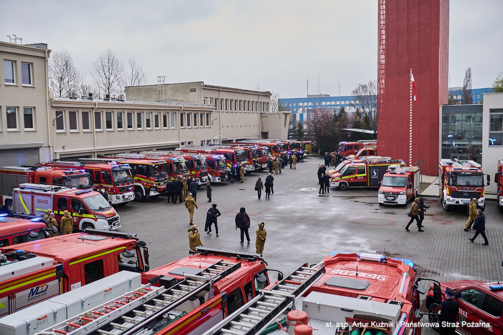 31 marca 2026 roku w siedzibie Komendy Wojewódzkiej PSP w Katowicach odbyła się uroczysta prezentacja i symboliczne przekazanie samochodów ratowniczo-gaśniczych zakupionych w 2025 roku dla jednostek Ochotniczych Straży Pożarnych województwa śląskiego.