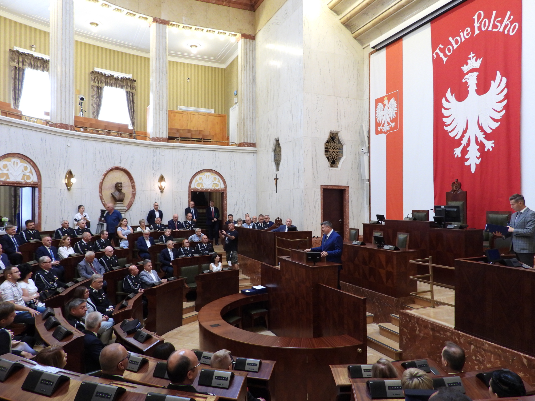 Dziś, w Sali Sejmu Śląskiego, st. bryg. Damian Legierski Śląski Komendant Wojewódzki PSP uczestniczył w uroczystości wręczenia przez Marszałka Województwa Śląskiego Pana Wojciecha Saługę, promes i umów na dofinansowanie zakupu nowych samochodów ratowniczo-gaśniczych dla jednostek Ochotniczych Straży Pożarnych z województwa śląskiego. Łączna kwota dofinansowania wynosi 4 mln zł., a nowe pojazdy trafią do 33 jednostek OSP województwa śląskiego.