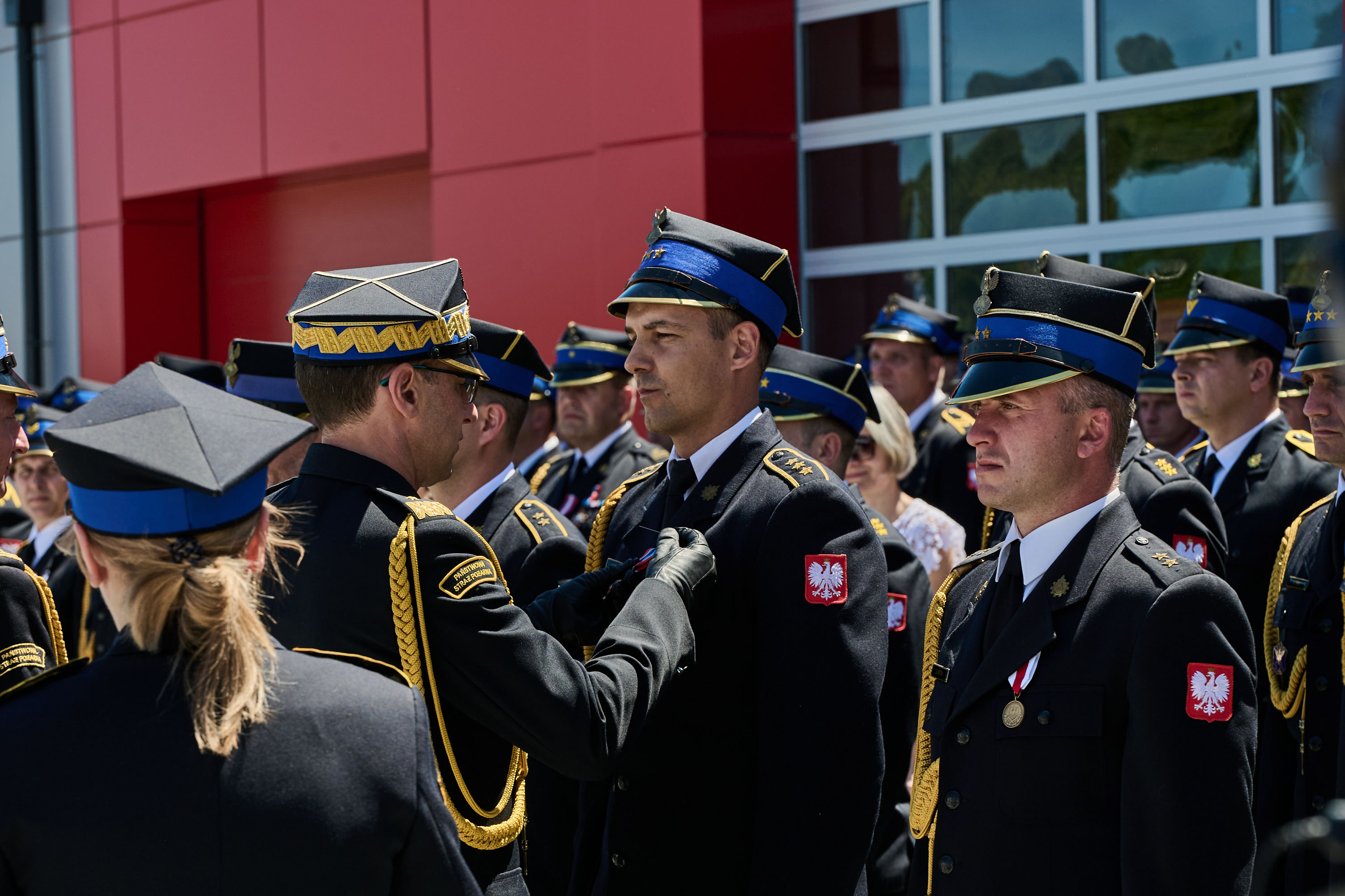 Kolejną częścią uroczystości było wyróżnienie funkcjonariuszy PSP Odznakami „Zasłużony dla Ochrony Przeciwpożarowej" oraz Odznaką Świętego Floriana „Za Zasługi dla Społeczności Lokalnej”. Odznaki, w imieniu Ministra Spraw Wewnętrznych i Administracji wręczył Komendant Główny PSP - nadbryg. Wojciech Kruczek w asyście Śląskiego Komendanta Wojewódzkiego PSP st. bryg. Damiana Legierskiego oraz Komendanta Miejskiego PSP st. bryg. Wojciecha Rapki.