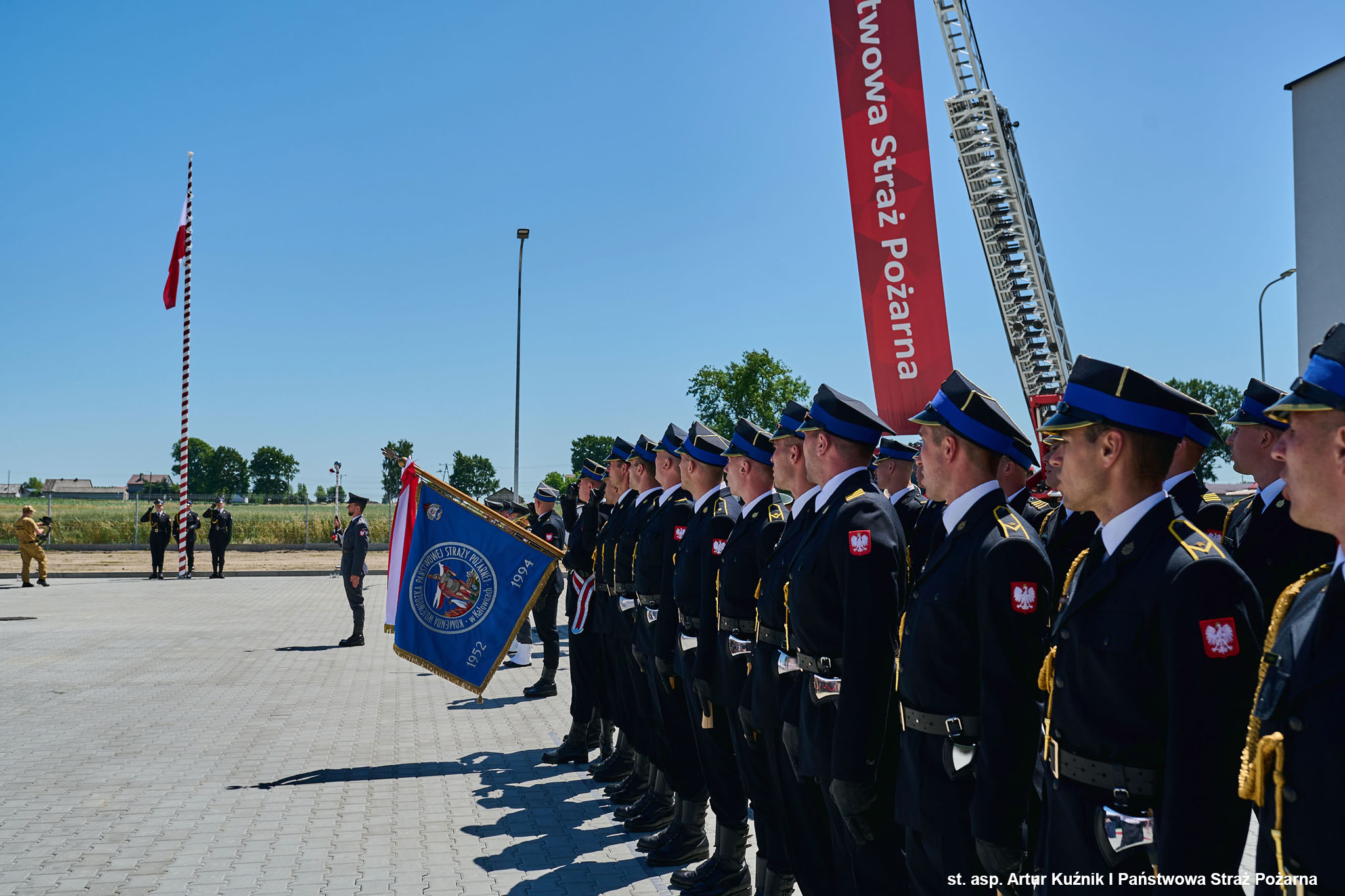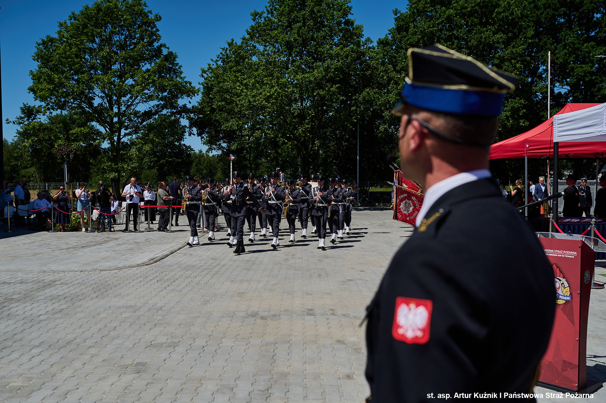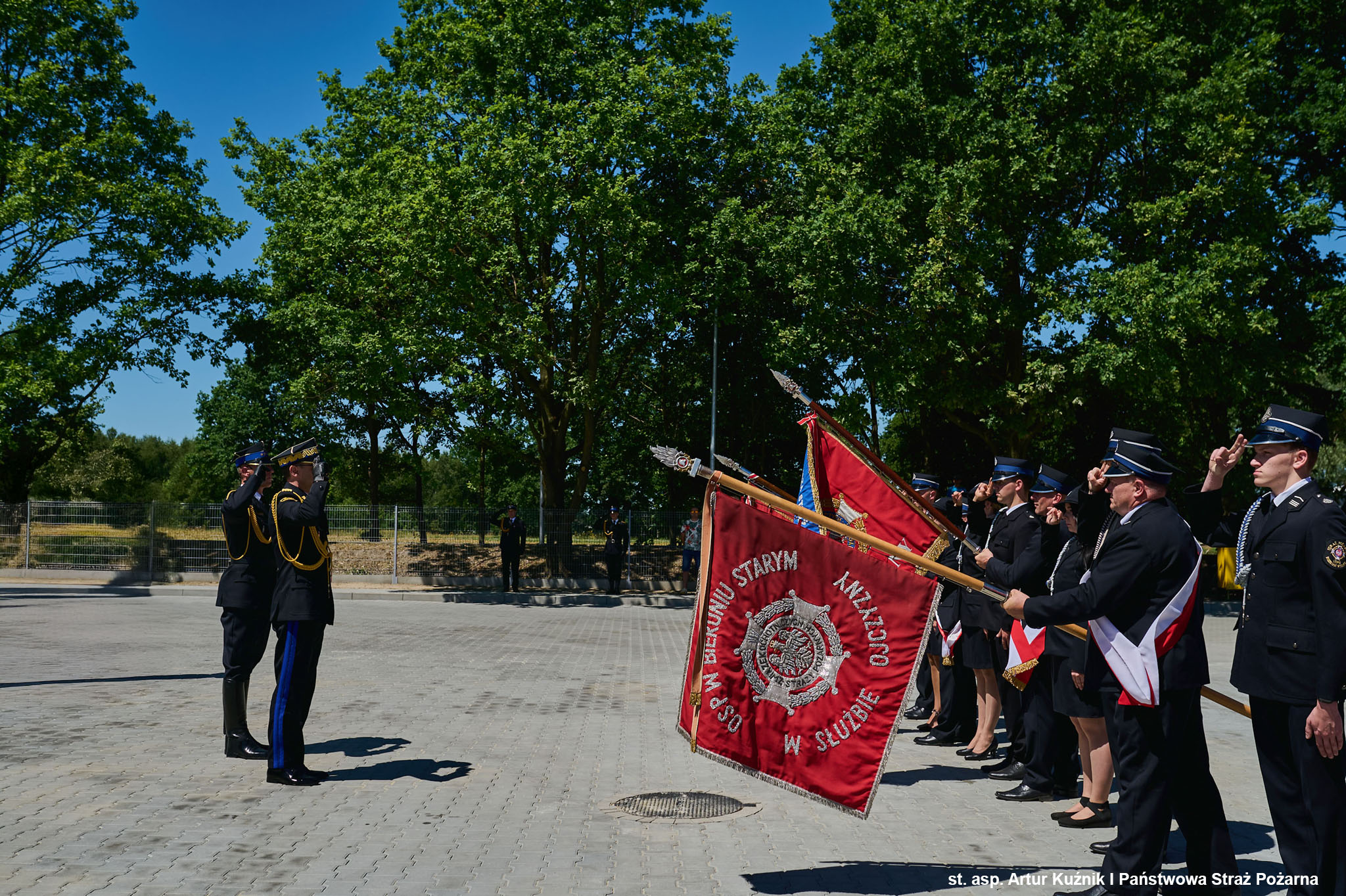 Uroczystość uświetnili: Kompania Reprezentacyjna Komendy Wojewódzkiej PSP w Katowicach pod dowództwem mł. kpt. Mateusza Laka wraz z pocztem sztandarowym Komendy Wojewódzkiej Państwowej Straży Pożarnej w Katowicach oraz poczty sztandarowe Ochotniczych Straży Pożarnych reprezentujących wszystkie gminy powiatu i Orkiestra Reprezentacyjna Wojska Polskiego. Dowódcą uroczystość był st. kpt. Szymon Kwaśnica.