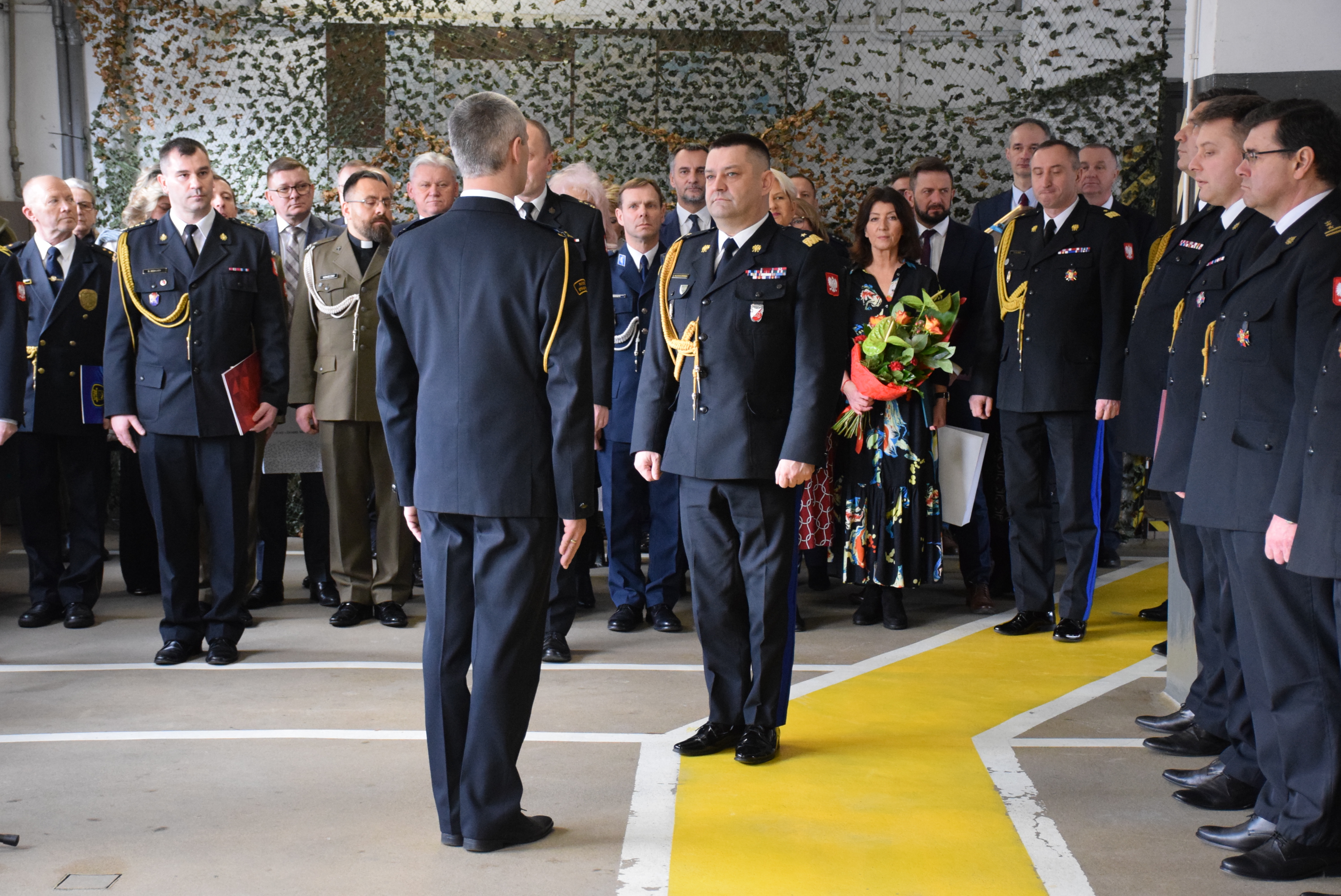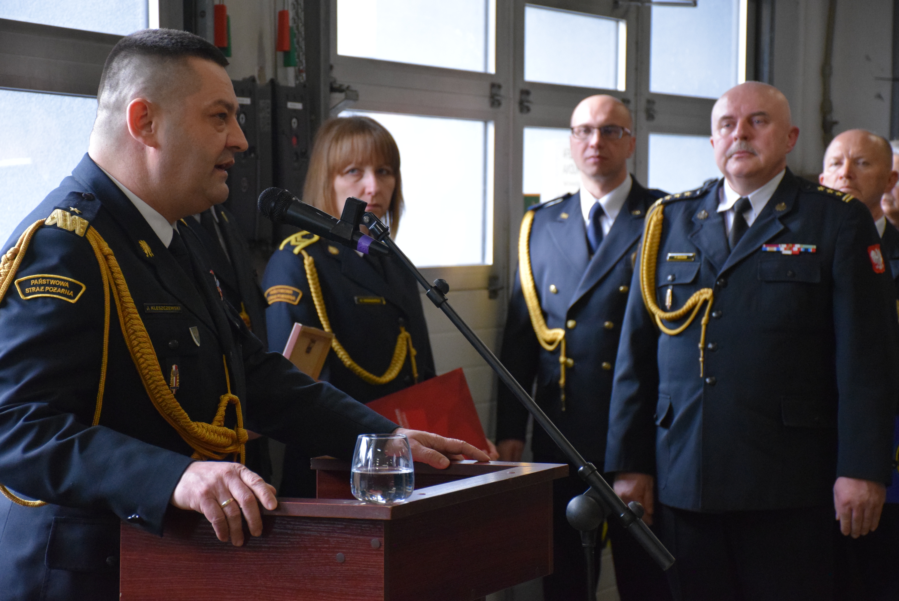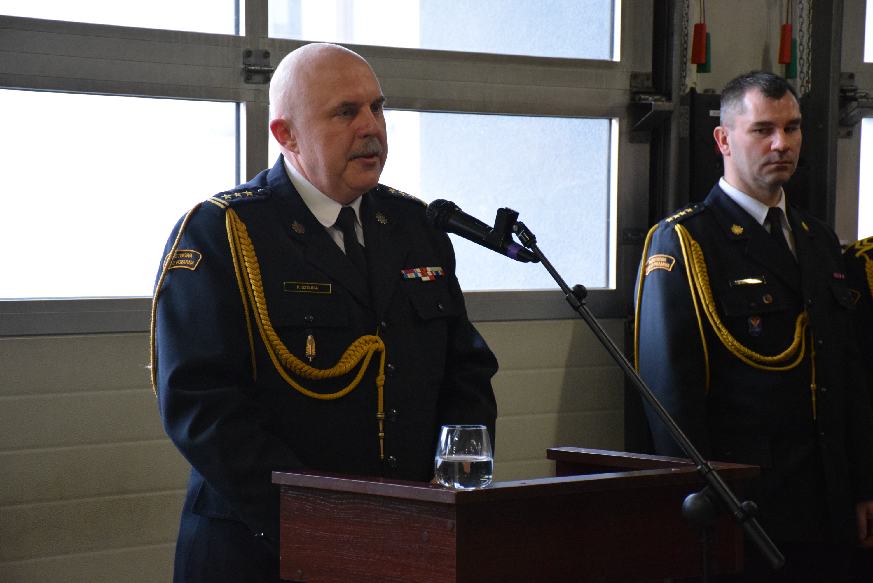 Śląski Komendant Wojewódzki PSP nadbryg. Jacek Kleszczewski podziękował za służbę dotychczasowemu Komendantowi Miejskiemu st. bryg. Piotrowi Szojdzie. - Mam nadzieję, że zasłużona emerytura będzie dla Pana dobrym czasem. Teraz będzie Pan mógł dawać innym swoją wiedzę, umożliwiać korzystanie z Pana potencjału i doświadczenia, nie tylko z zakresu pożarnictwa, ale także w innych zakresach. Komendant Wojewódzki życzył także powodzenia nowo powołanemu Komendantowi Miejskiemu – bryg. Wojciechowi Rapce. - Panie Brygadierze – życzę Panu sukcesów, rozwoju i jak najlepszego dowodzenia. Komendant nie znaczy nic, jeśli nie tworzy zespołu znakomitych ludzi. Takich ludzi Pan tutaj ma, wystarczy wsłuchać się w ich potrzeby i pomagać się im rozwijać.