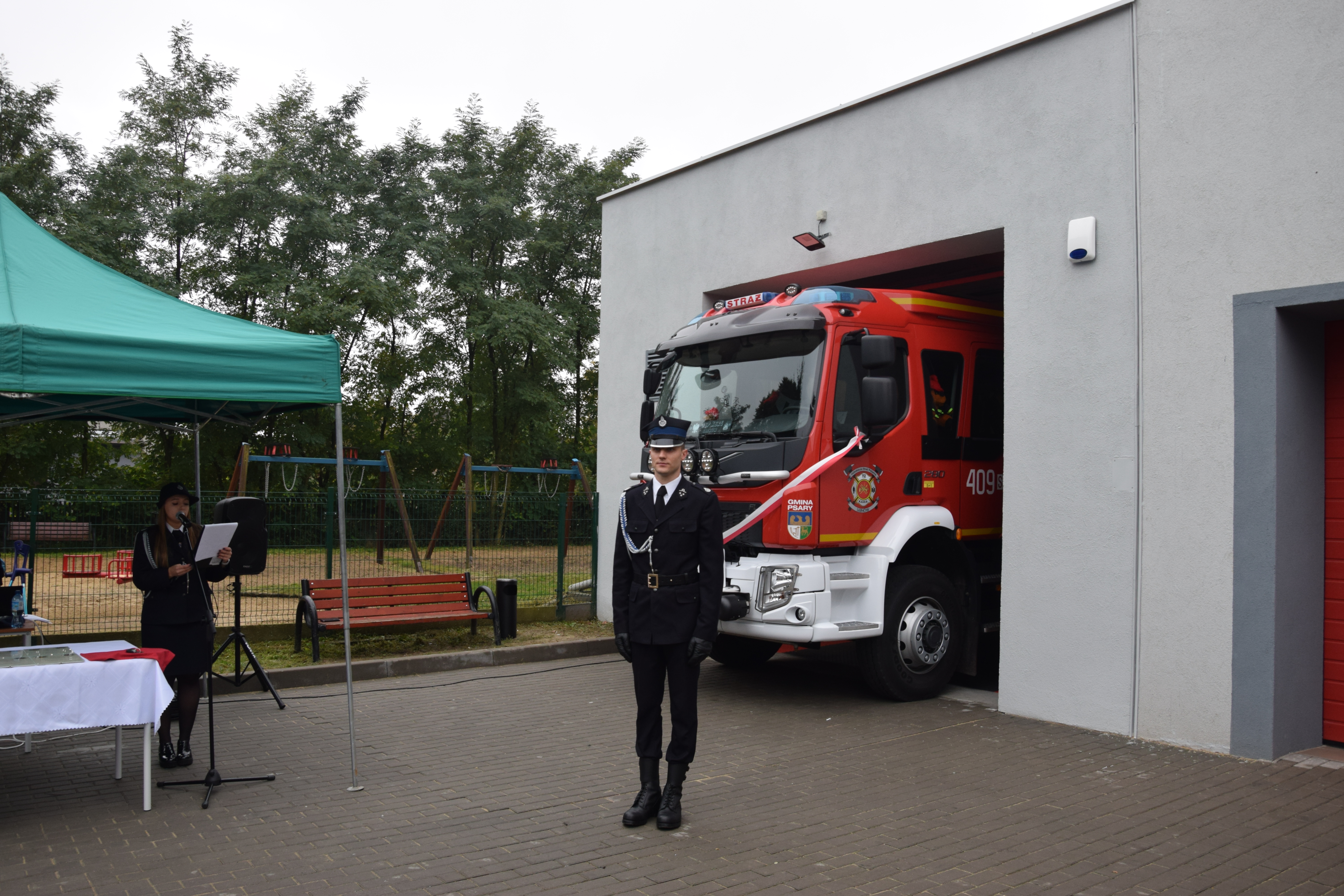 1 października 2022 roku w jednostce Ochotniczej Straży Pożarnej w Sarnowie odbyła się uroczystość przekazania średniego samochodu ratowniczo - gaśniczego