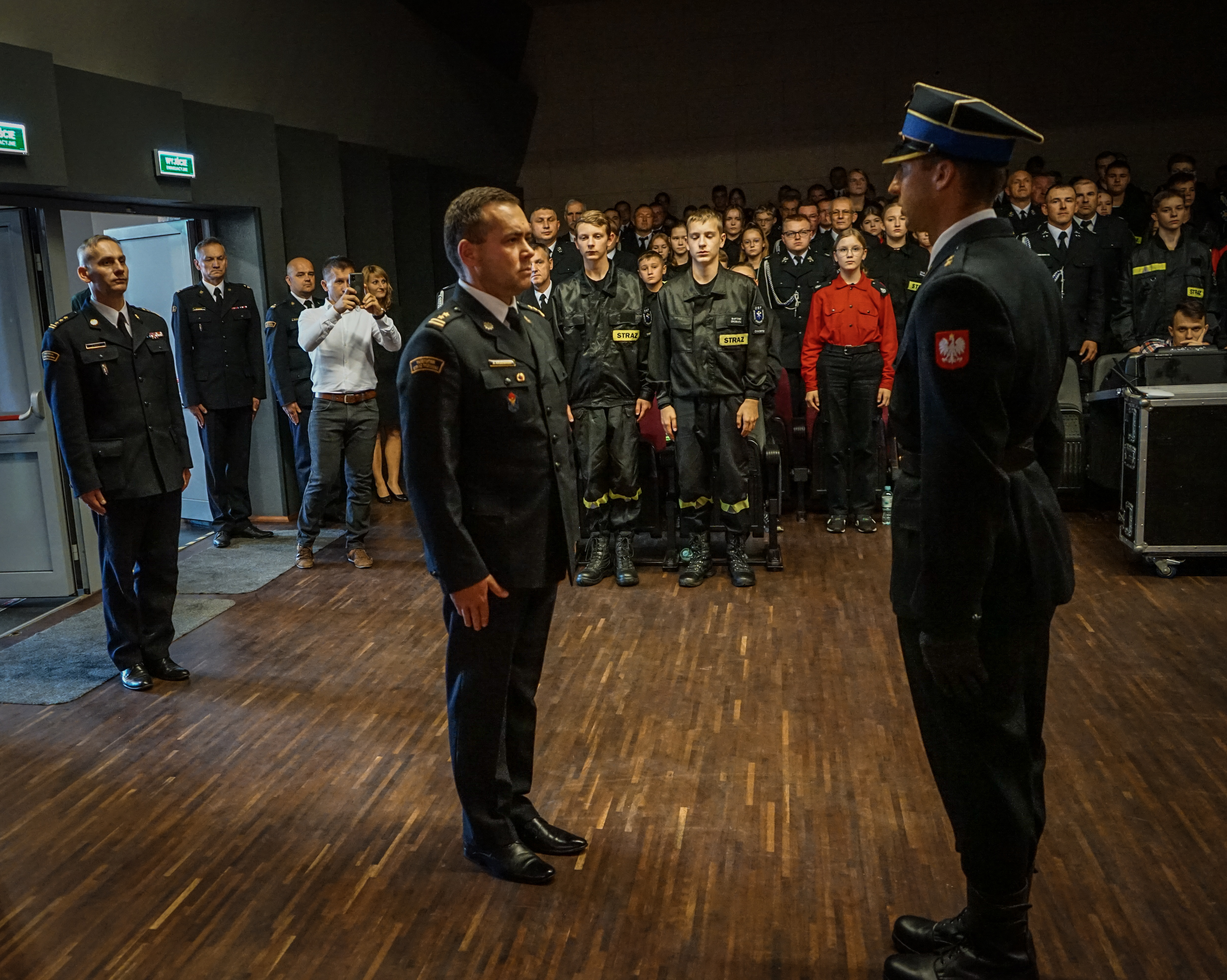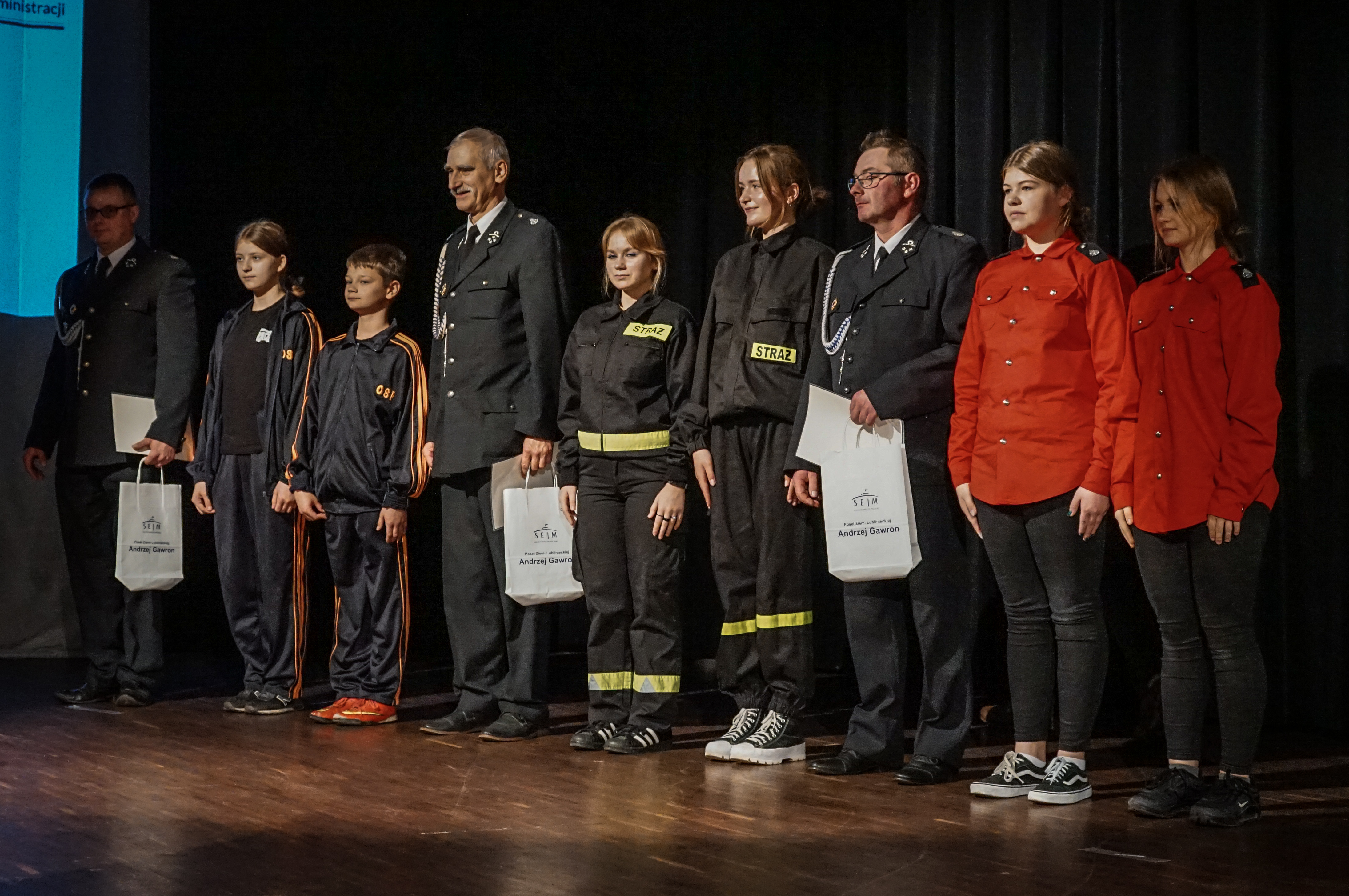Uroczystość wręczenia promes dla Ochotniczych Straży Pożarnych na zakup sprzętu dla członków Młodzieżowych Drużyn Pożarniczych z terenu powiatu lublinieckiego