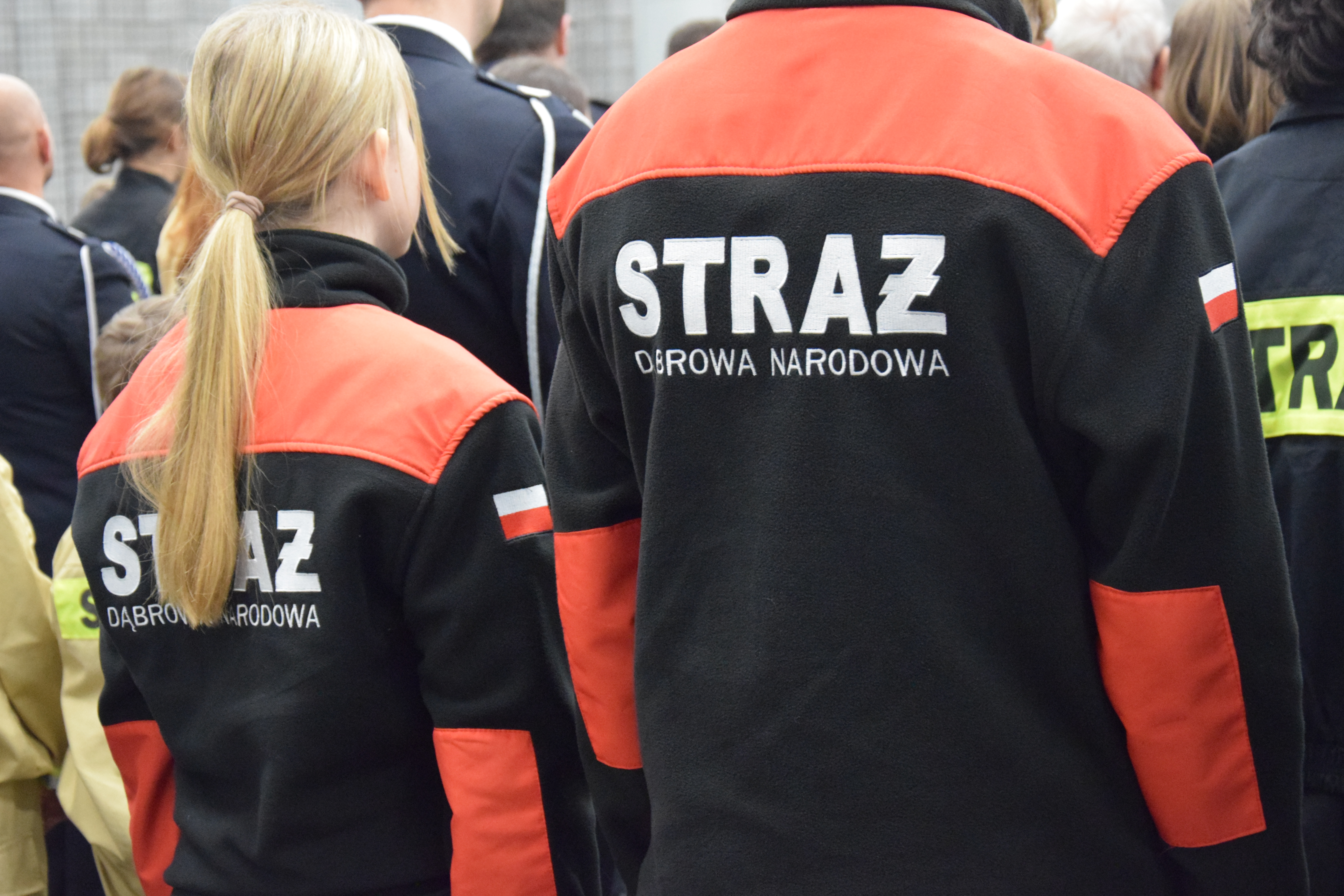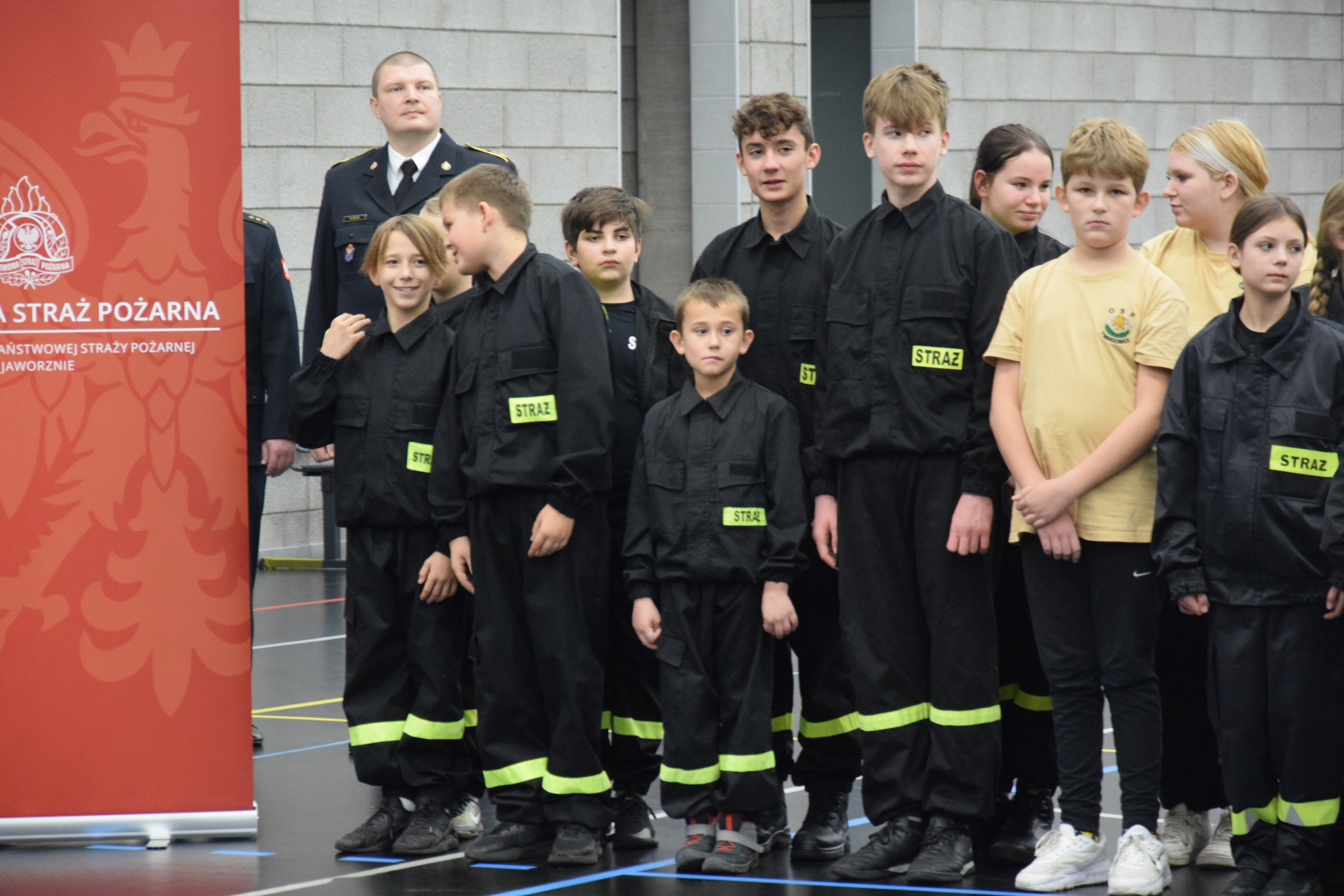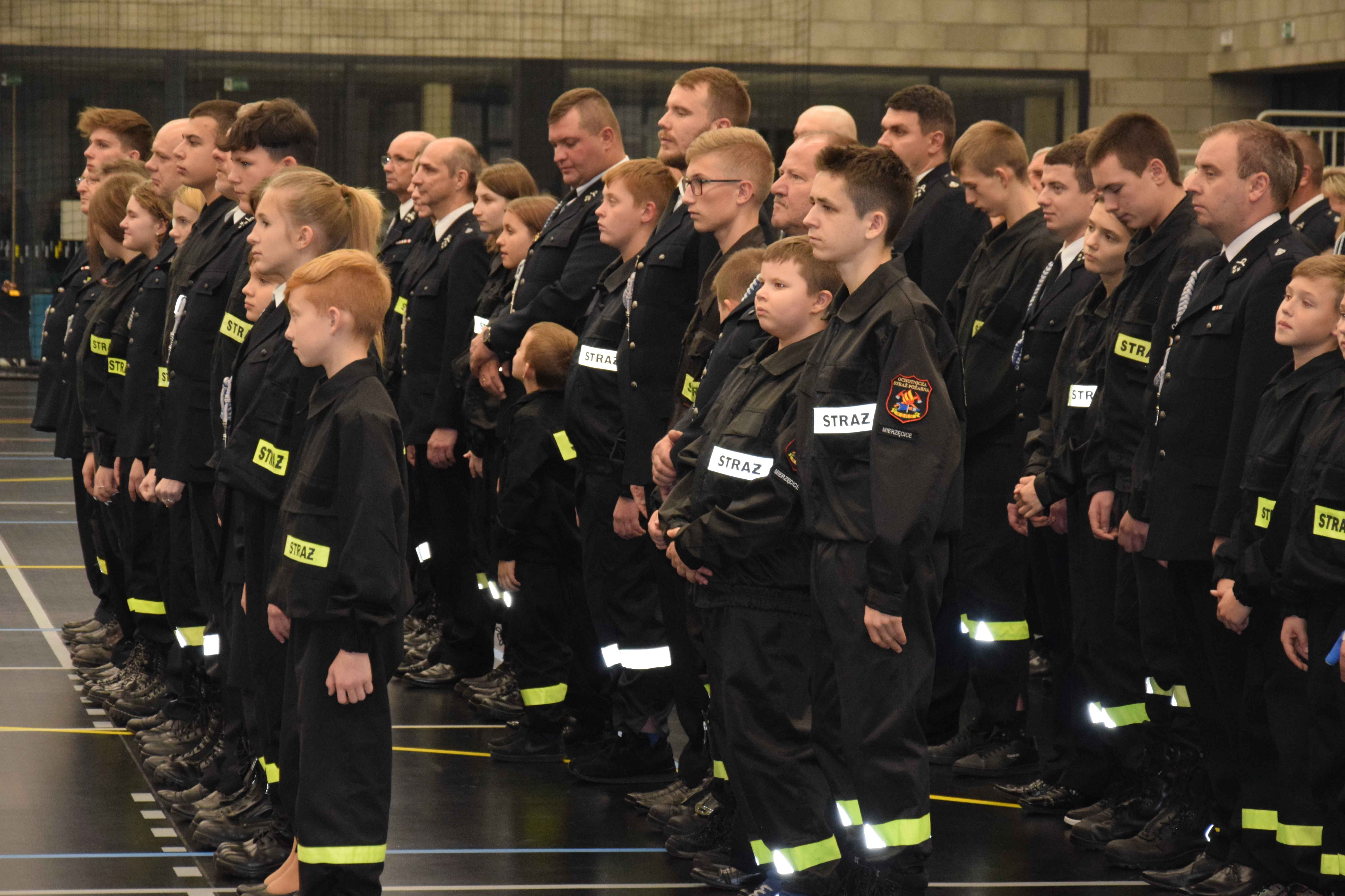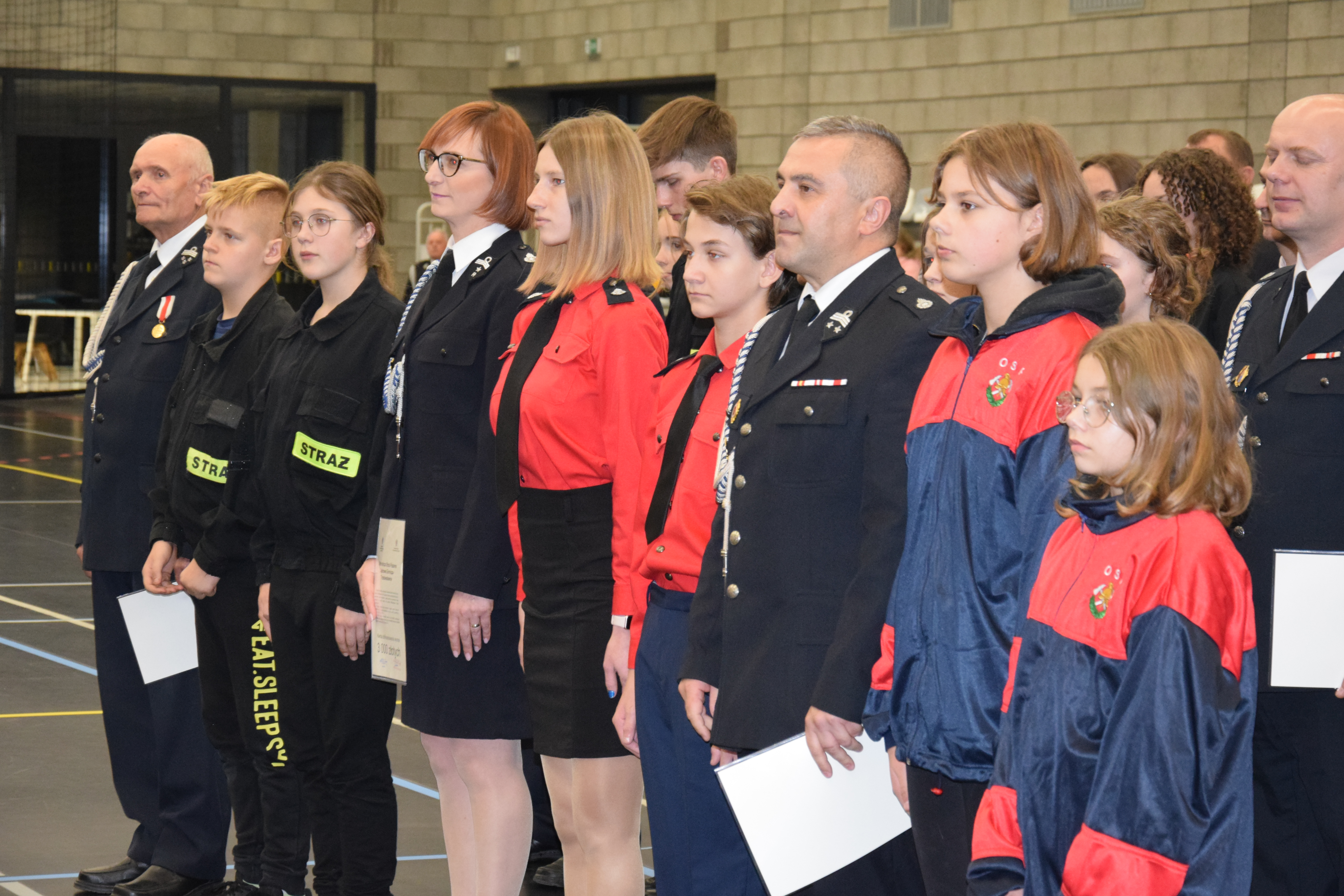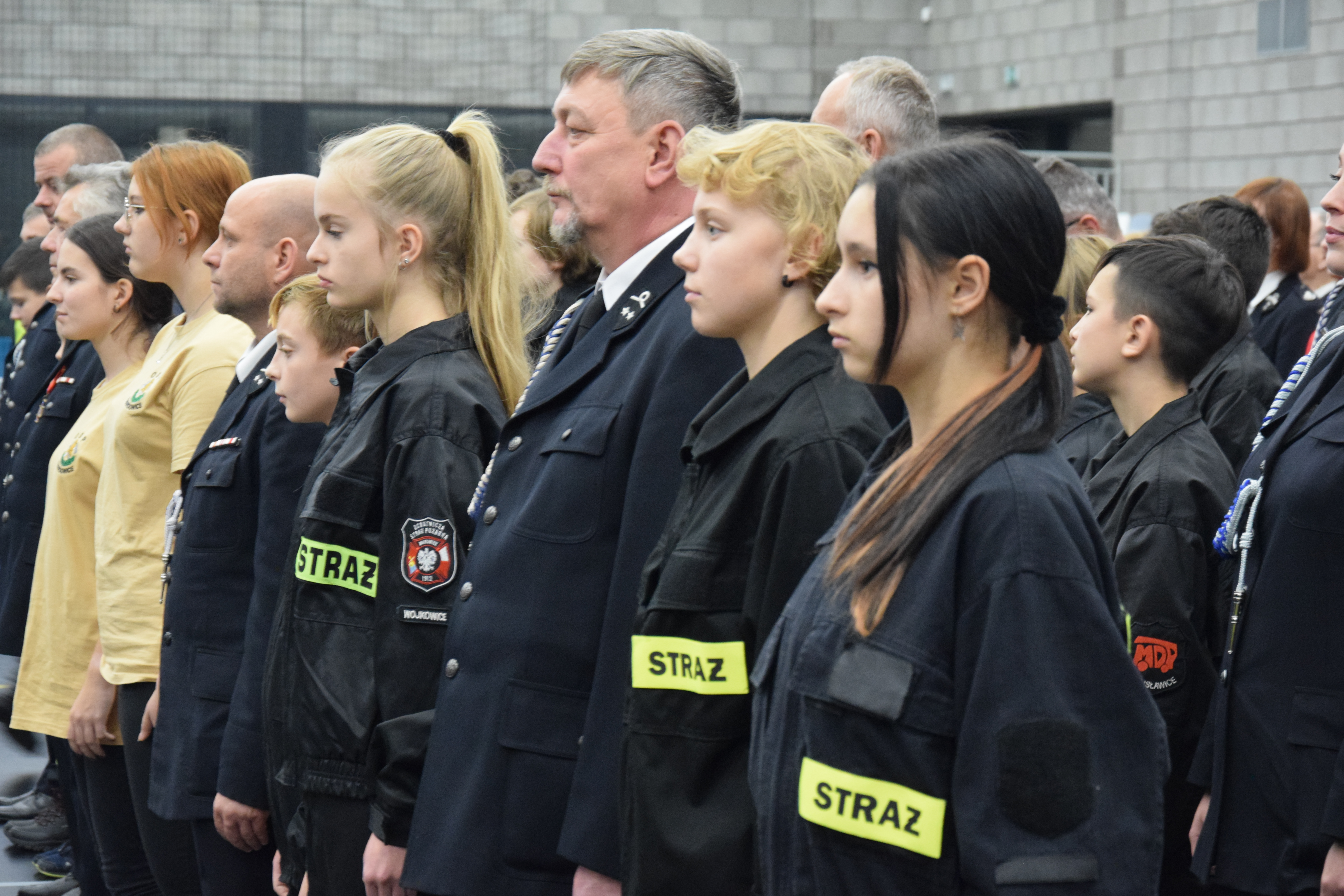 Uroczystość wręczenia promes dotacji celowej dla ochotniczych straży pożarnych na zakup sprzętu dla członków Młodzieżowych Drużyn Pożarniczych z powiatu będzińskiego, Jaworzna oraz Dąbrowy Górniczej