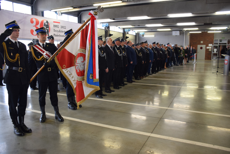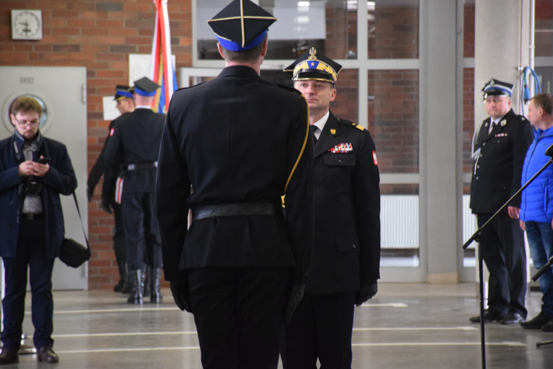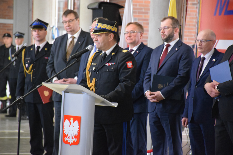 Uroczystość rozpoczęła się od złożenia meldunku zastępcy komendanta głównego PSP, nadbryg. dr. inż. Adamowi Koniecznemu.
