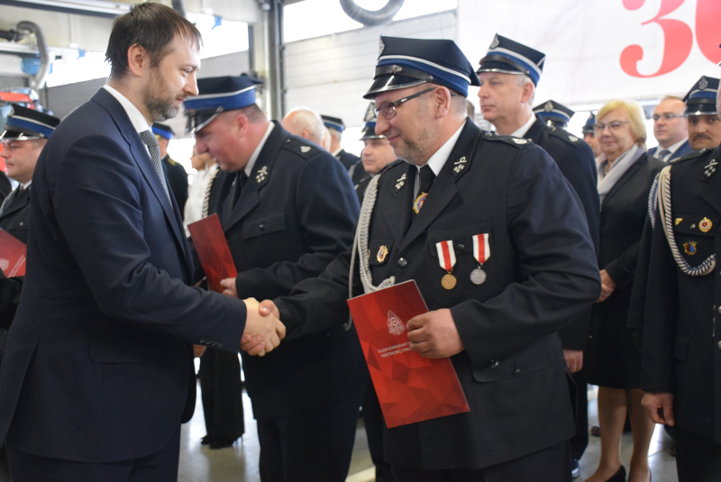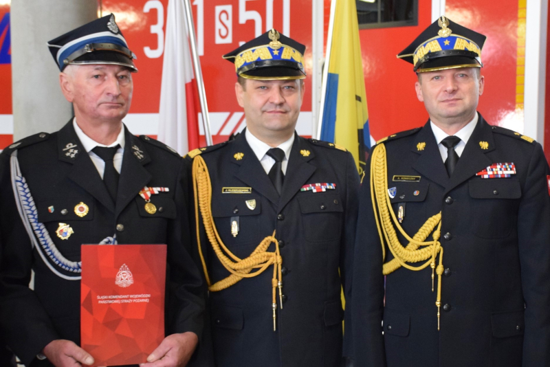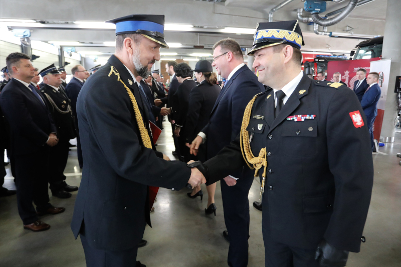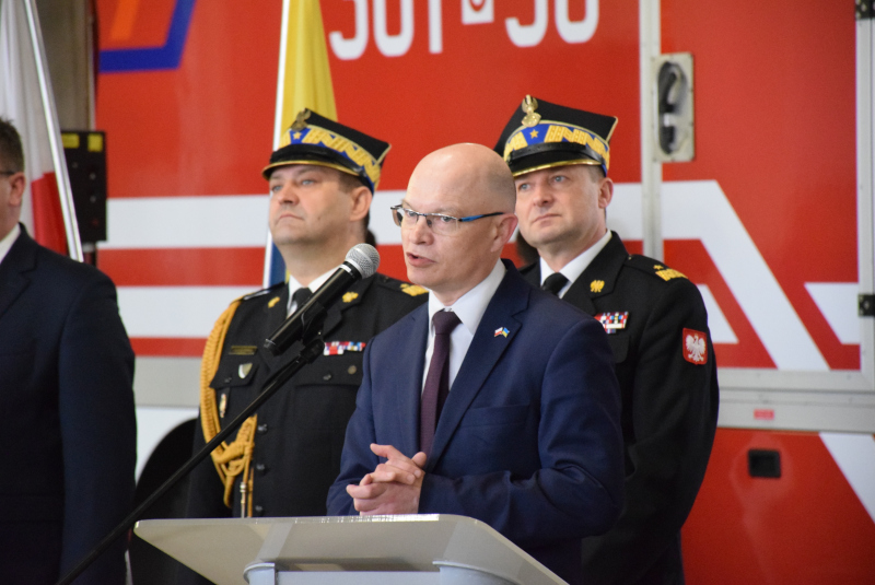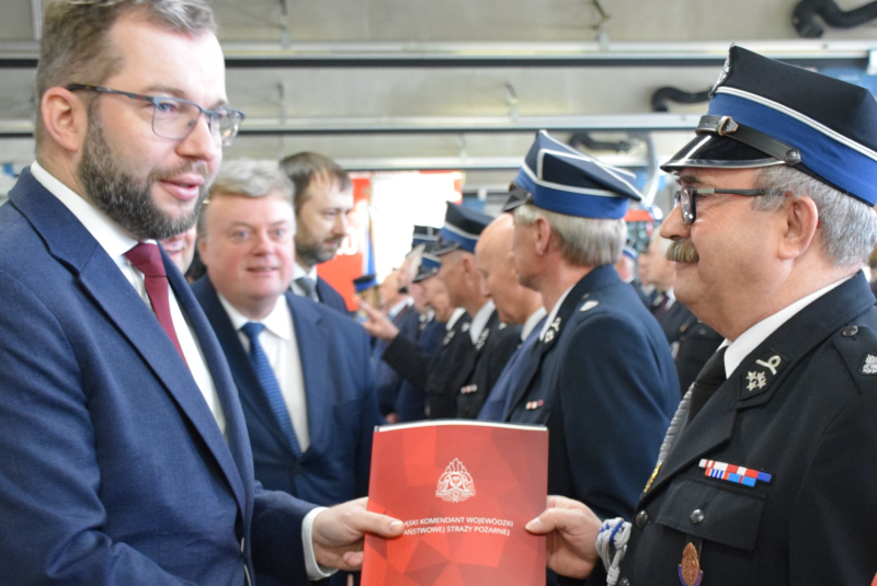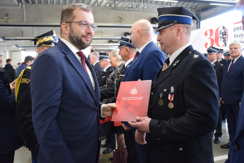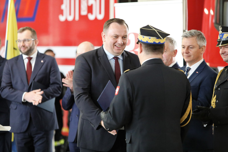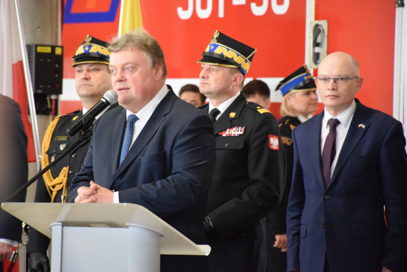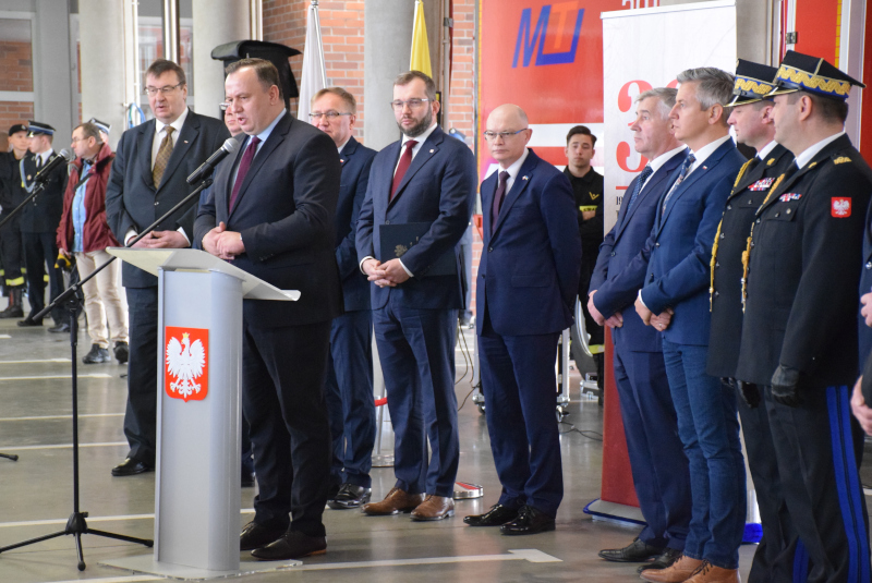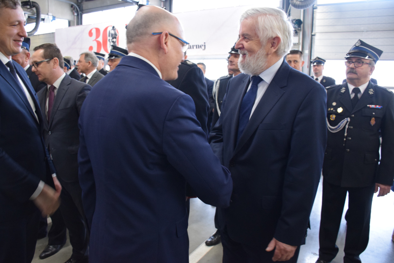 W dalszej części uroczystości marszałek Województwa Śląskiego Pan Jakub Chełstowski przekazał na ręce nadbryg. Jacka Kleszczewskiego śląskiego komendanta wojewódzkiego PSP umowę na dotację celową w wysokości 1 975 000 zł., z przeznaczeniem na zakup samochodów pożarniczych.