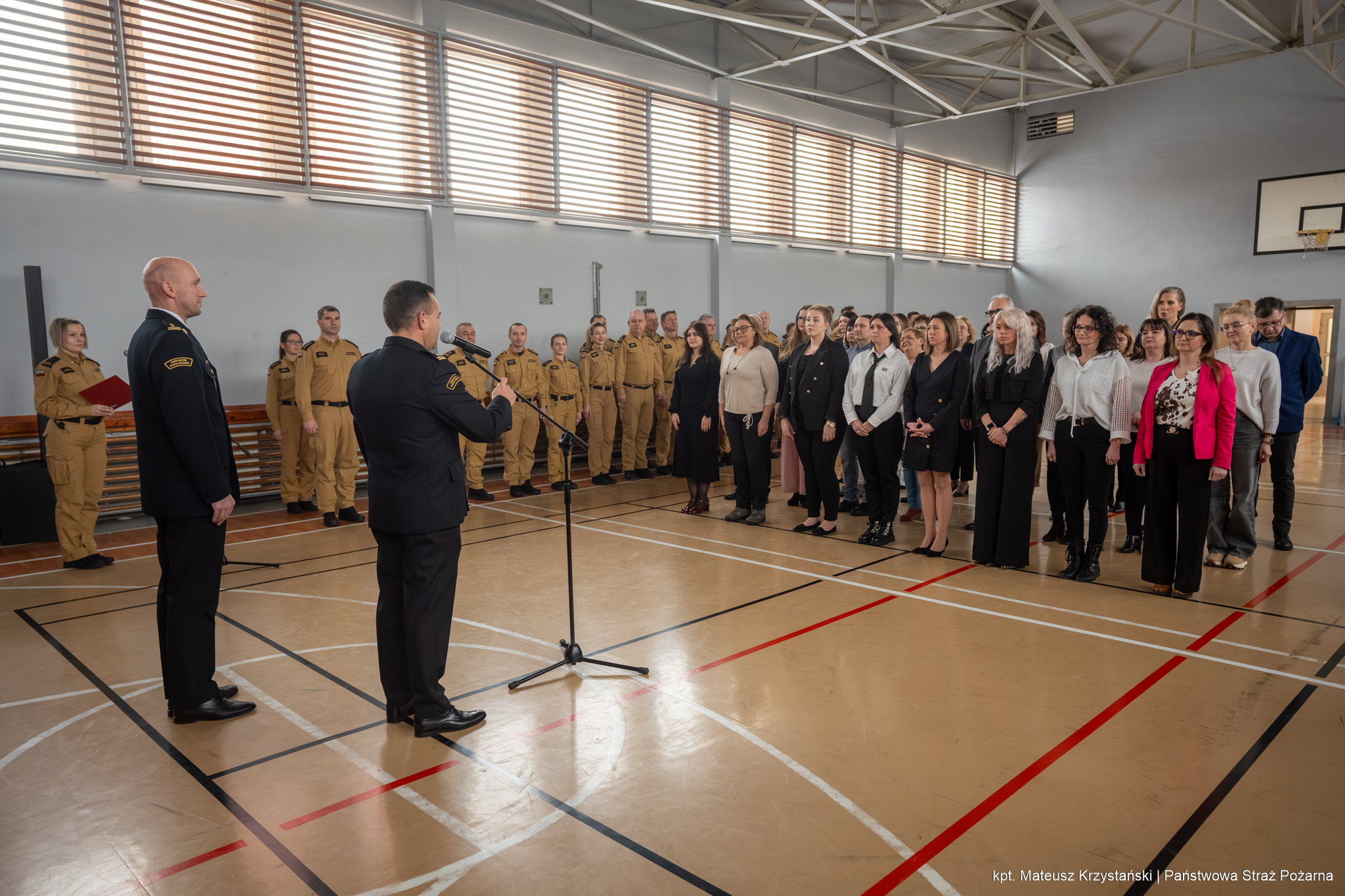 W imieniu Śląskiego Komendanta Wojewódzkiego PSP, st. bryg. Arkadiusz Krzemiński podziękował wszystkim za dotychczasową współpracę i rok trudnych wyzwań, podkreślił jak dużym wsparciem są pracownicy cywilni dla całej formacji, wspomagając funkcjonariuszy w sprawnej i terminowej realizacji obowiązków.