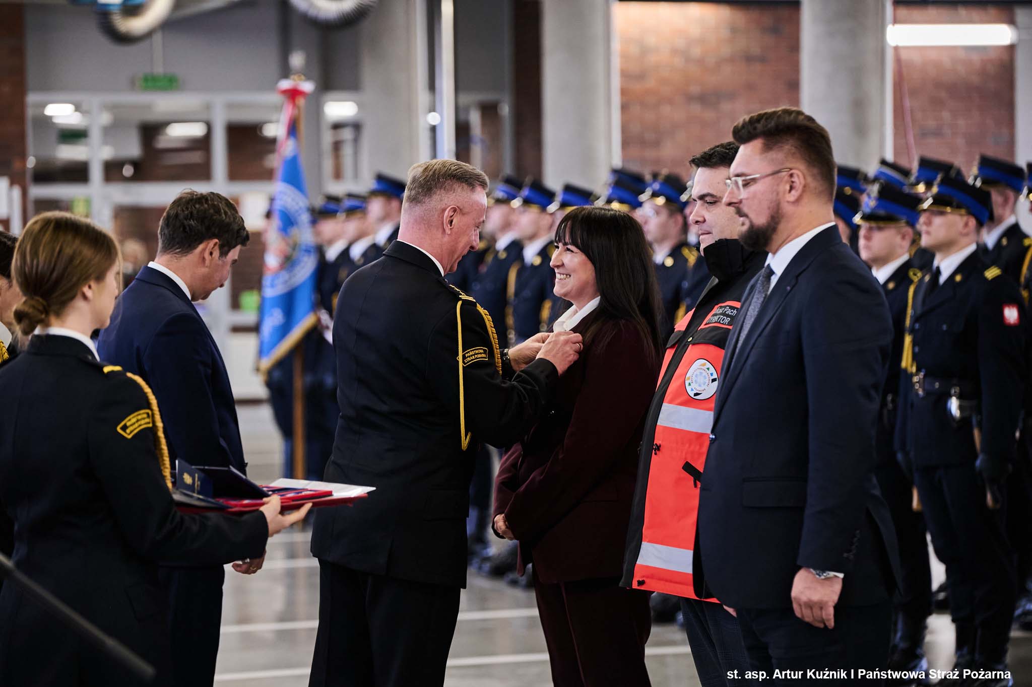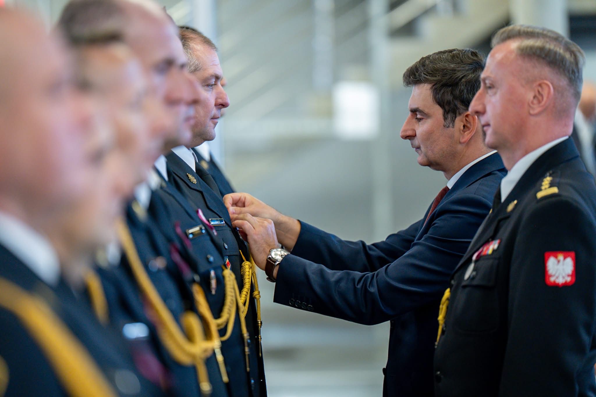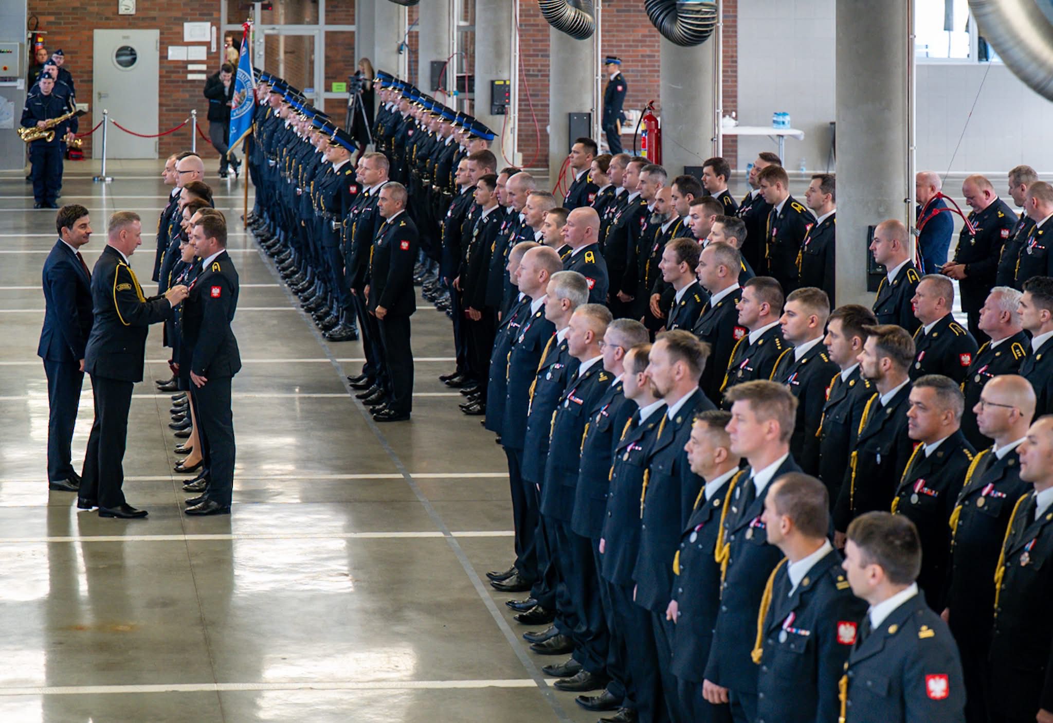 Odznaczenia wręczył Pan Marek Wójcik - Wojewoda Śląski w asyście Śląskiego Komendanta Wojewódzkiego PSP st. bryg. Damiana Legierskiego.