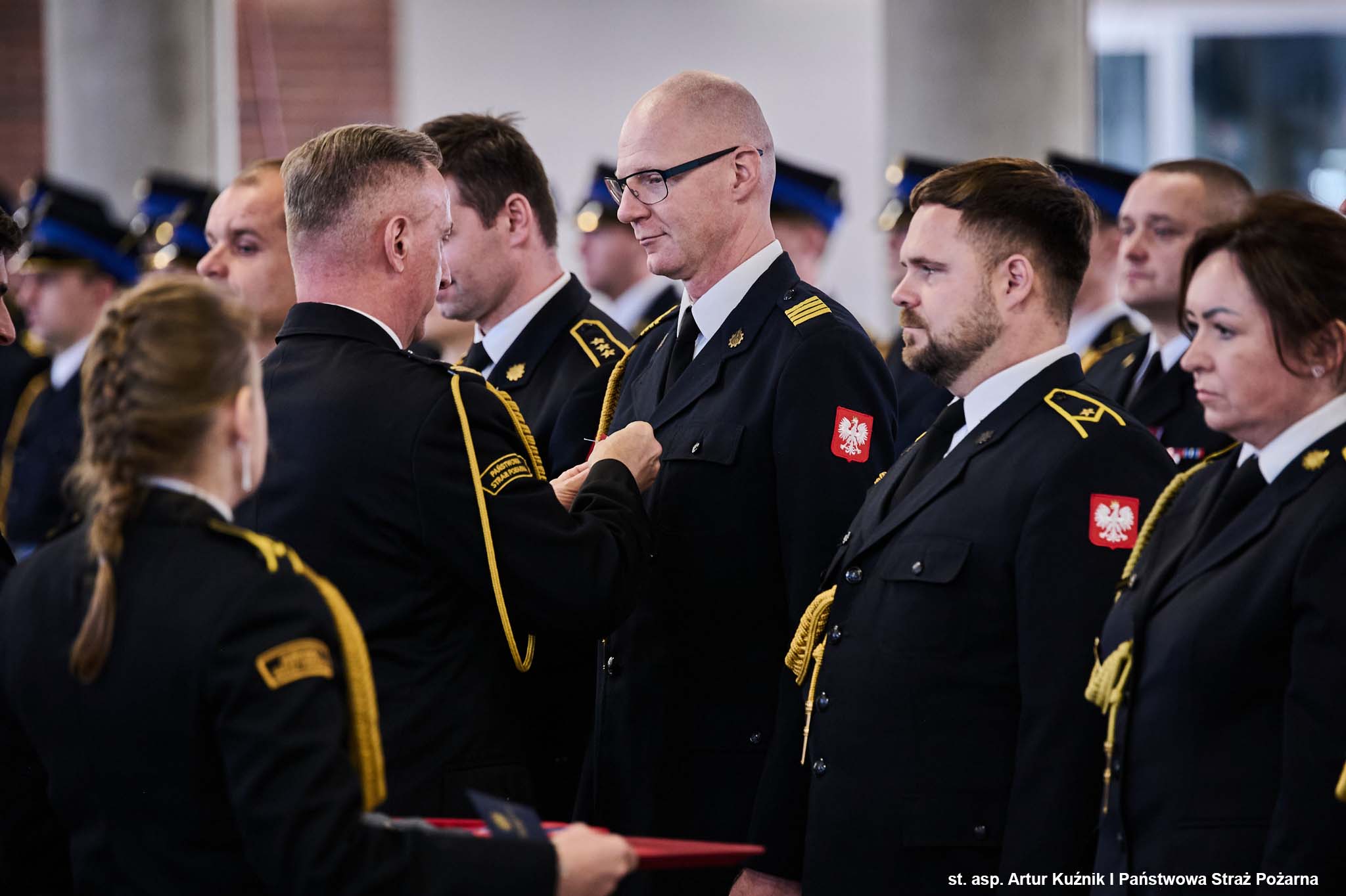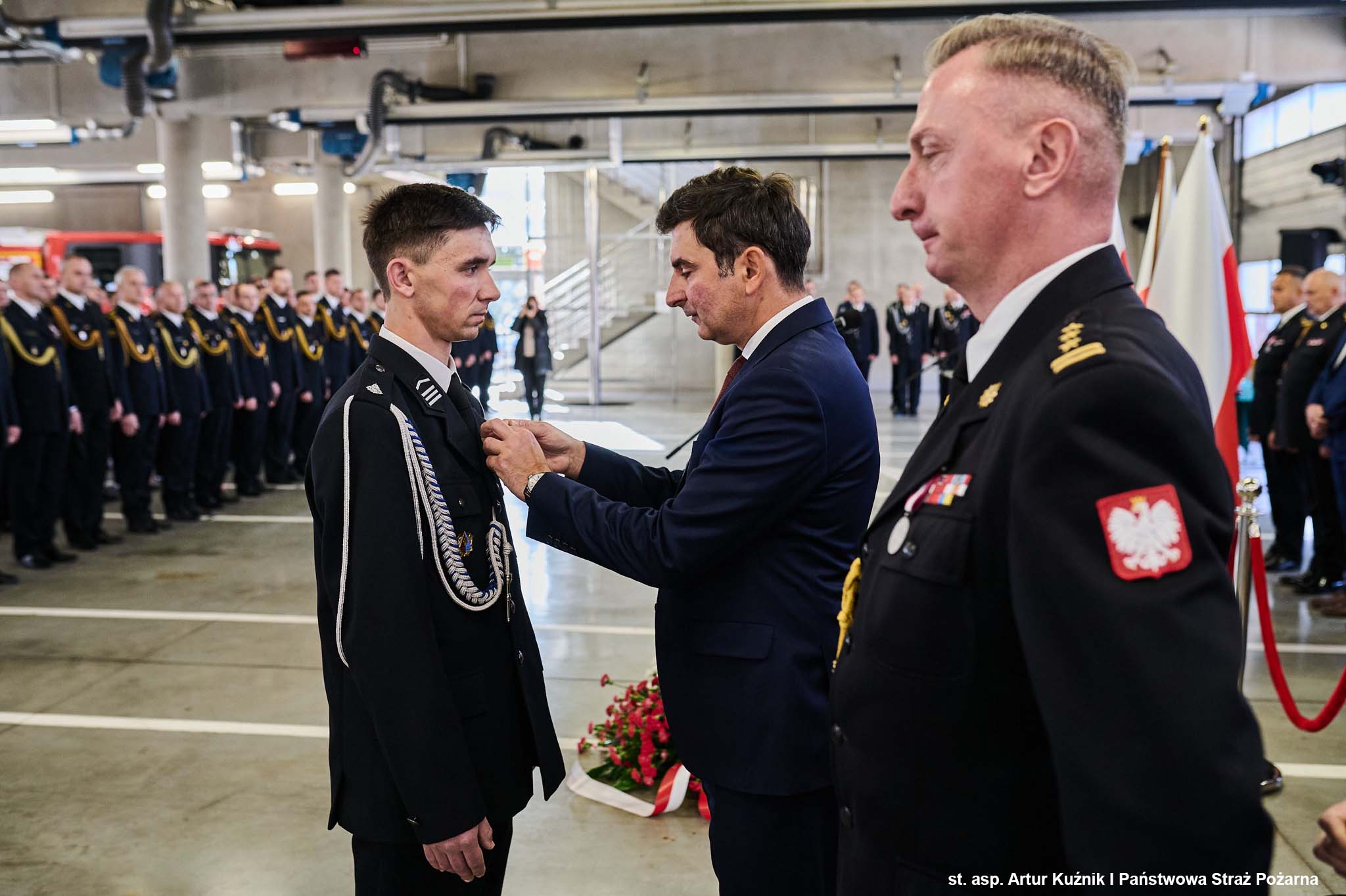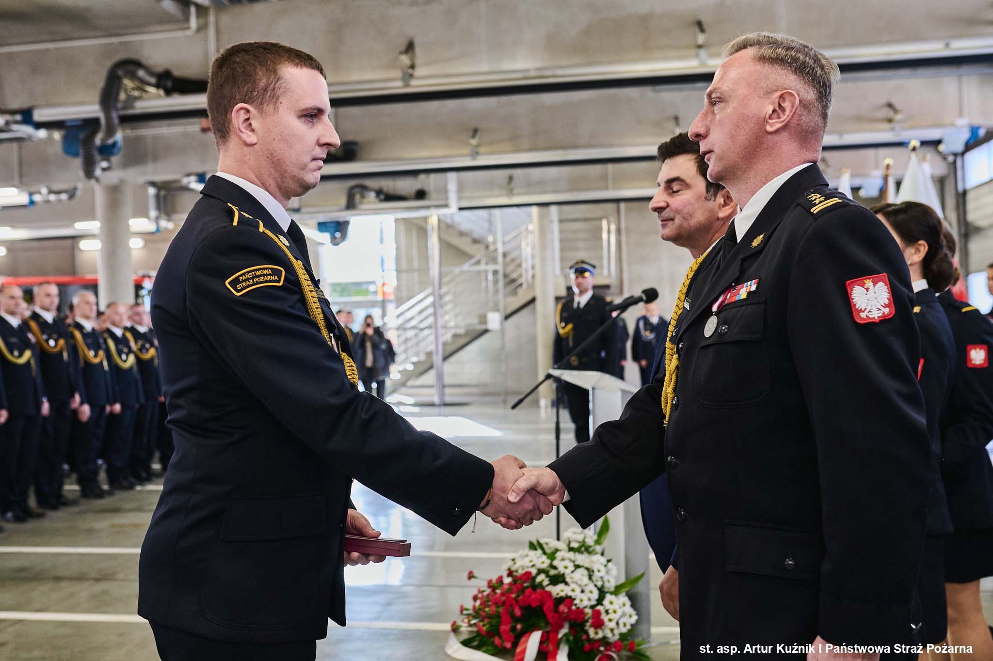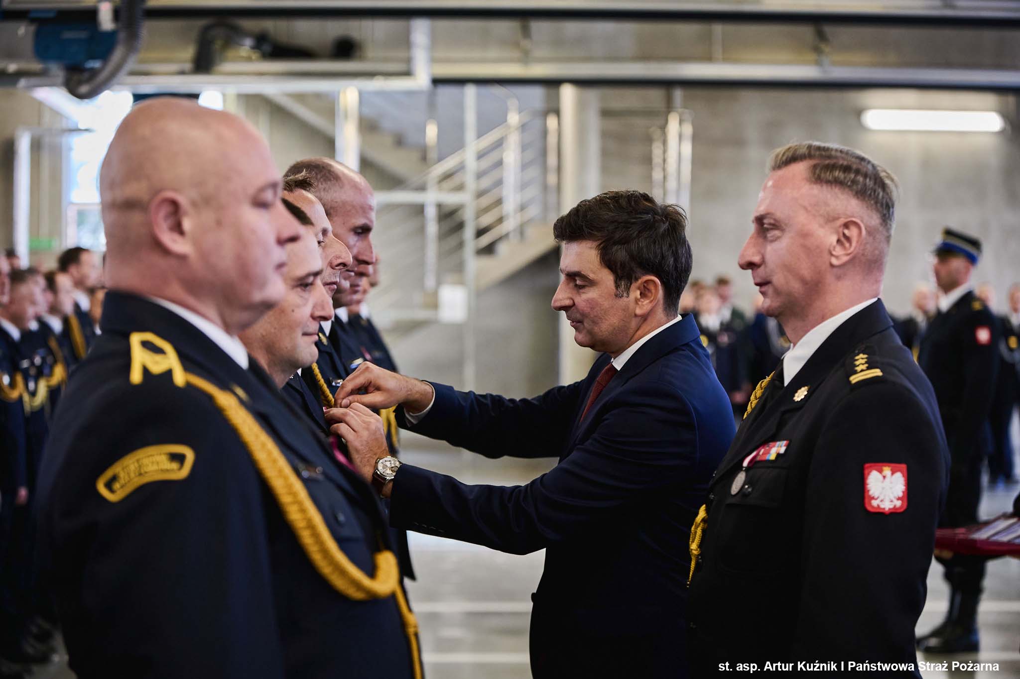 Odznaczenia wręczył Pan Marek Wójcik - Wojewoda Śląski w asyście Śląskiego Komendanta Wojewódzkiego PSP st. bryg. Damiana Legierskiego.