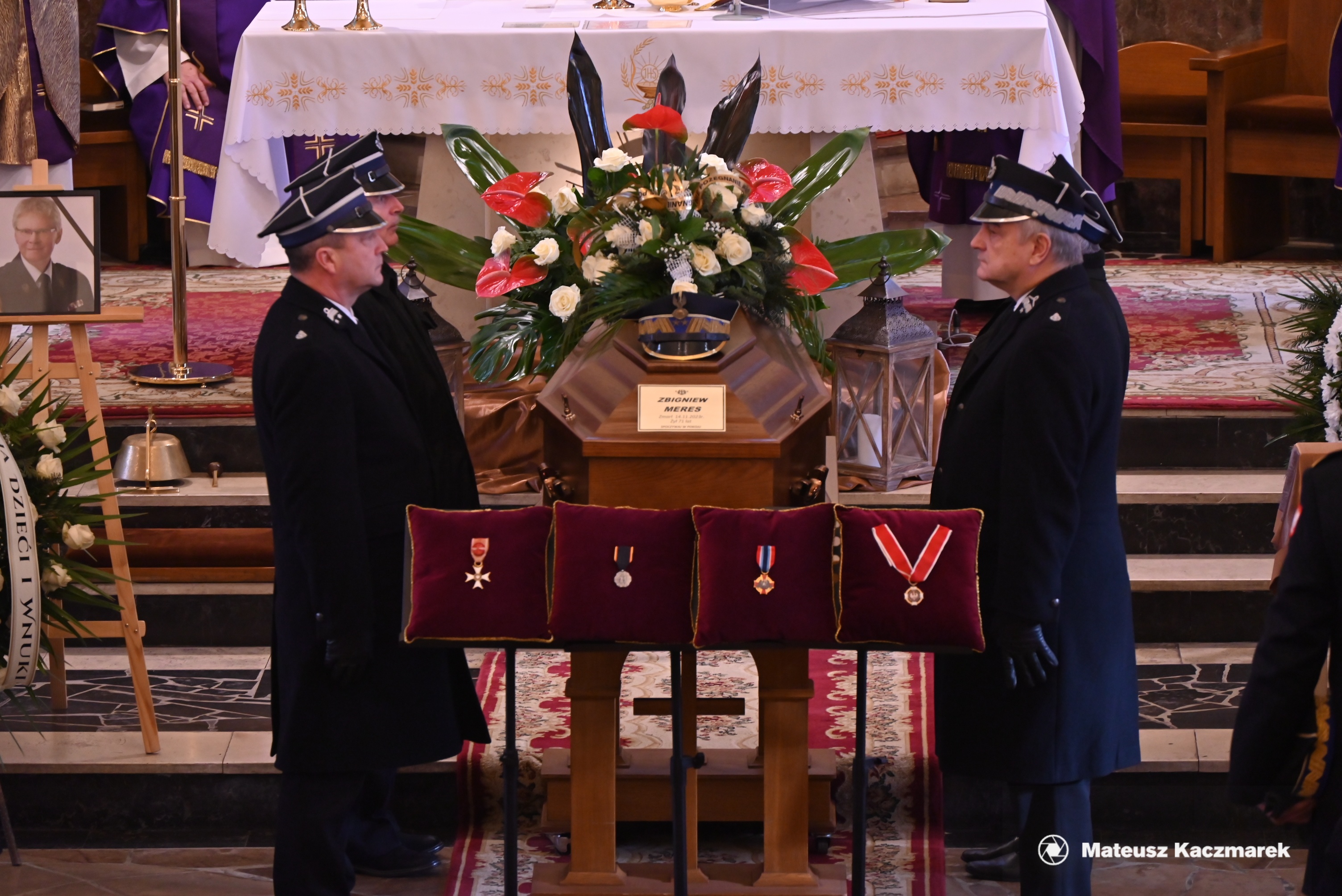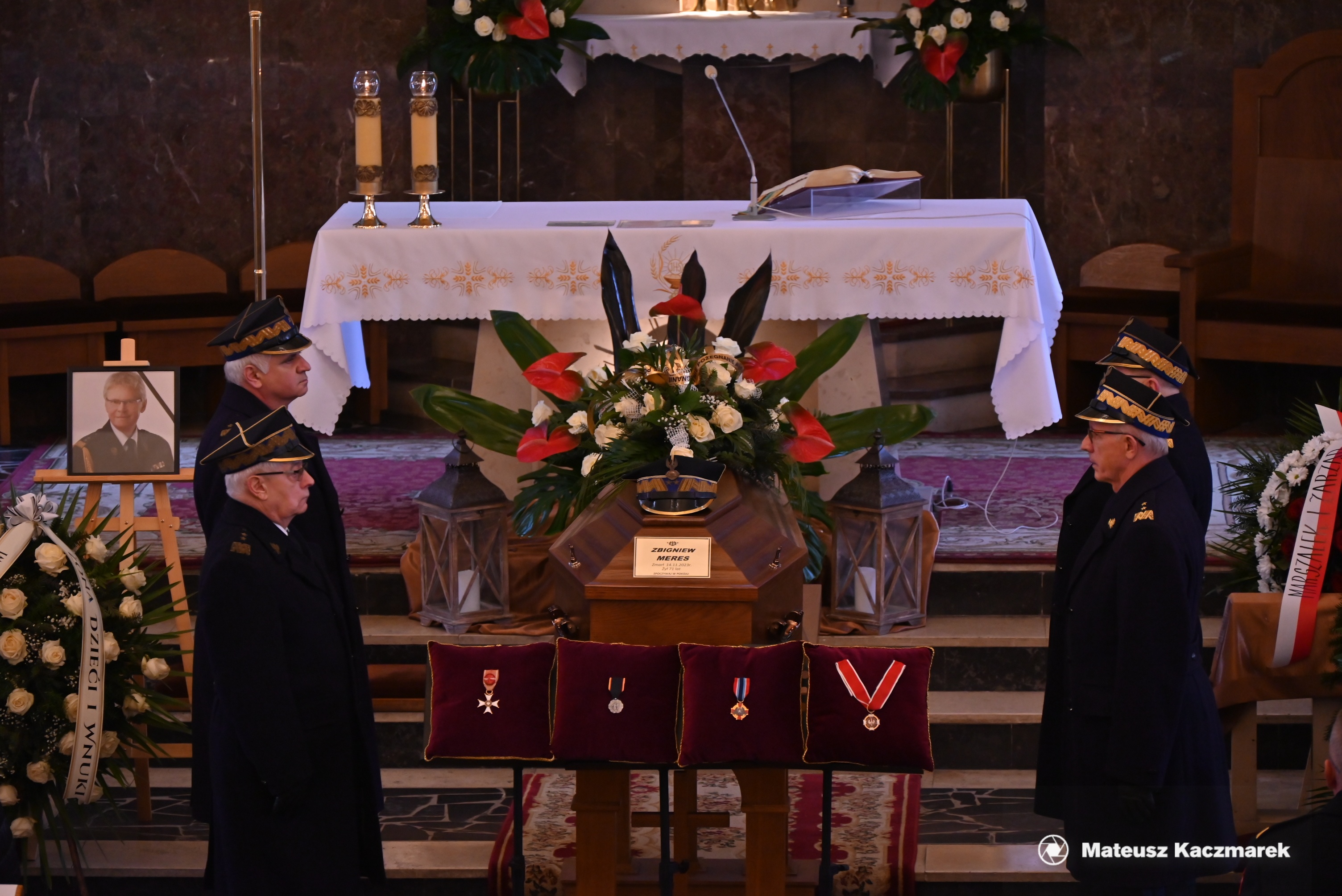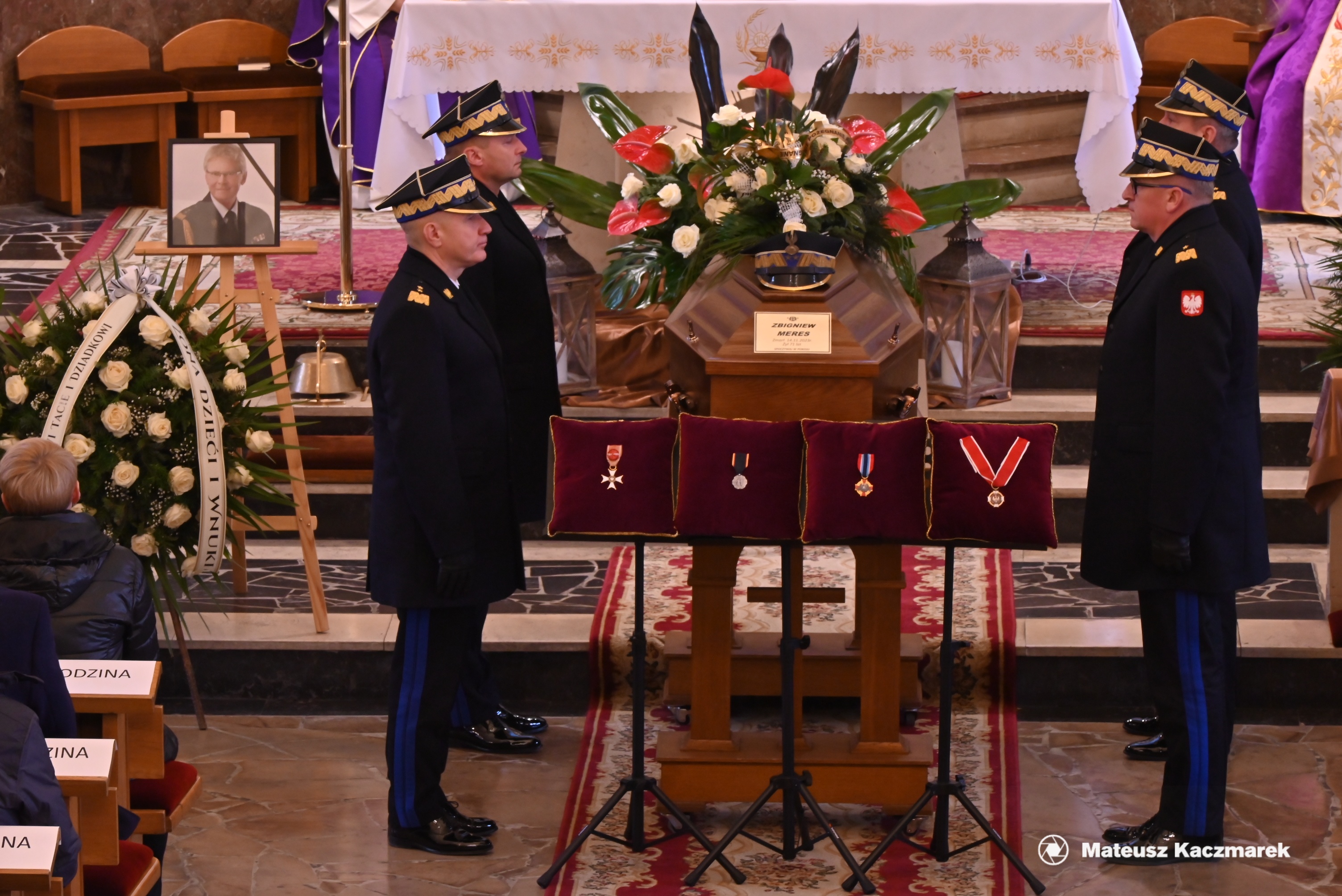 Oddając hołd zmarłemu, przy trumnie wystawione zostały czteroosobowe posterunki honorowe w składzie: