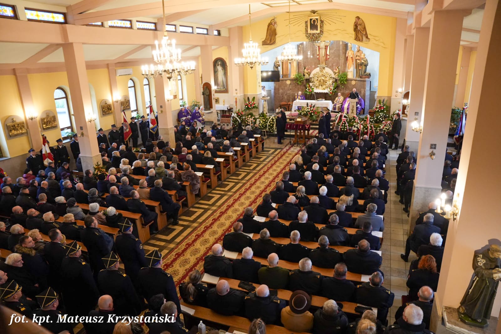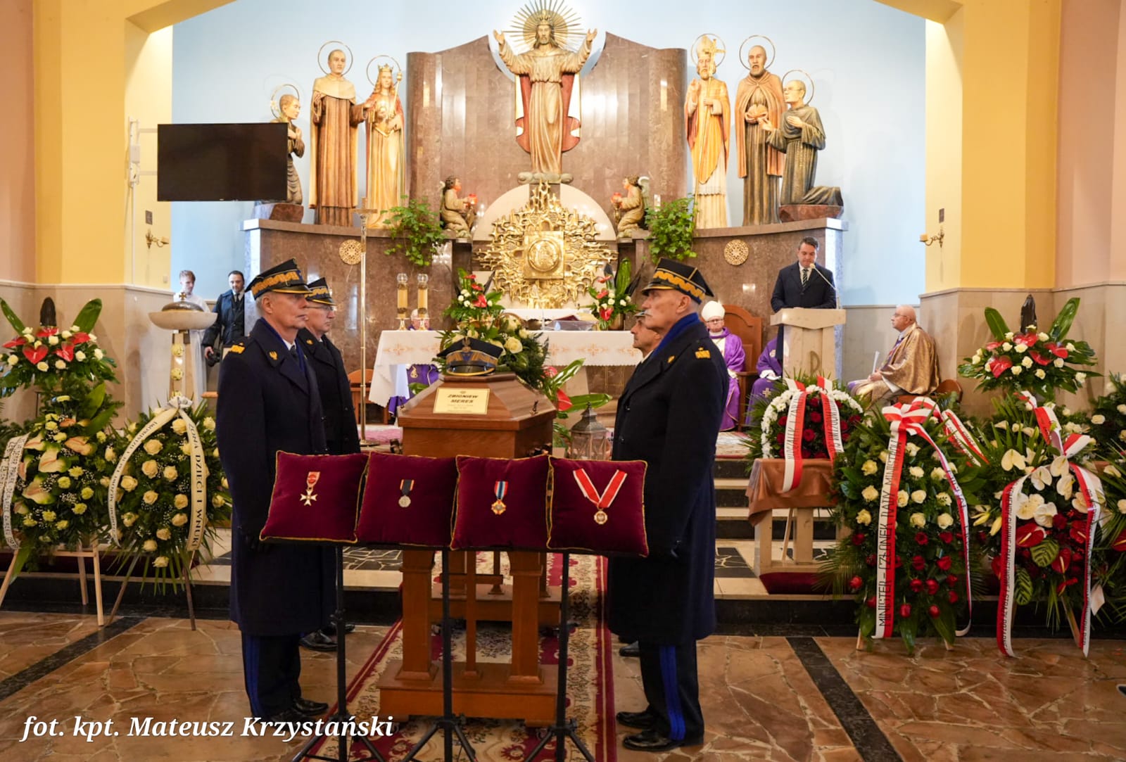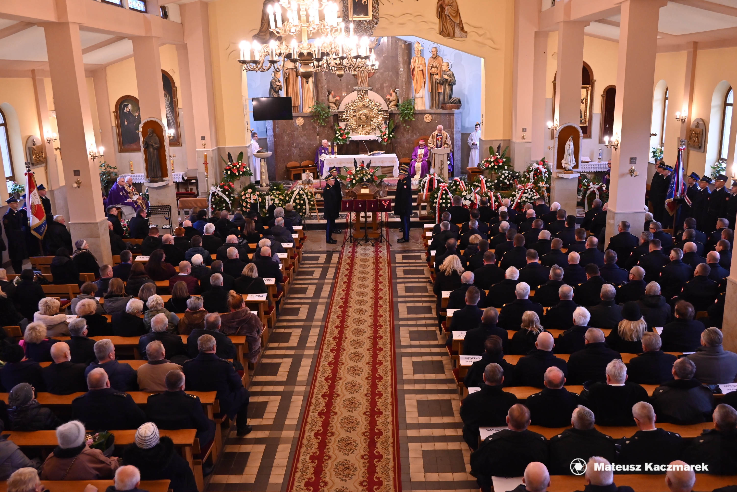 Uroczystości pogrzebowe w kościele pw. Chrystusa Króla w Dąbrowie Górniczej rozpoczęła msza święta koncelebrowana, której przewodniczył emerytowany Biskup Pomocniczy Diecezji Sosnowieckiej ks. bp dr Piotr Skucha. Na początku Liturgii st. bryg. Marek Piekutowski dyrektor Biura Komendanta Głównego PSP odczytał postanowienie o pośmiertnym odznaczeniu Krzyżem Świętego Floriana, nadanym przez Prezydenta RP, który przekazał wdowie Komendant Główny PSP, po czym nastąpiło odczytanie noty biograficznej o Zmarłym.