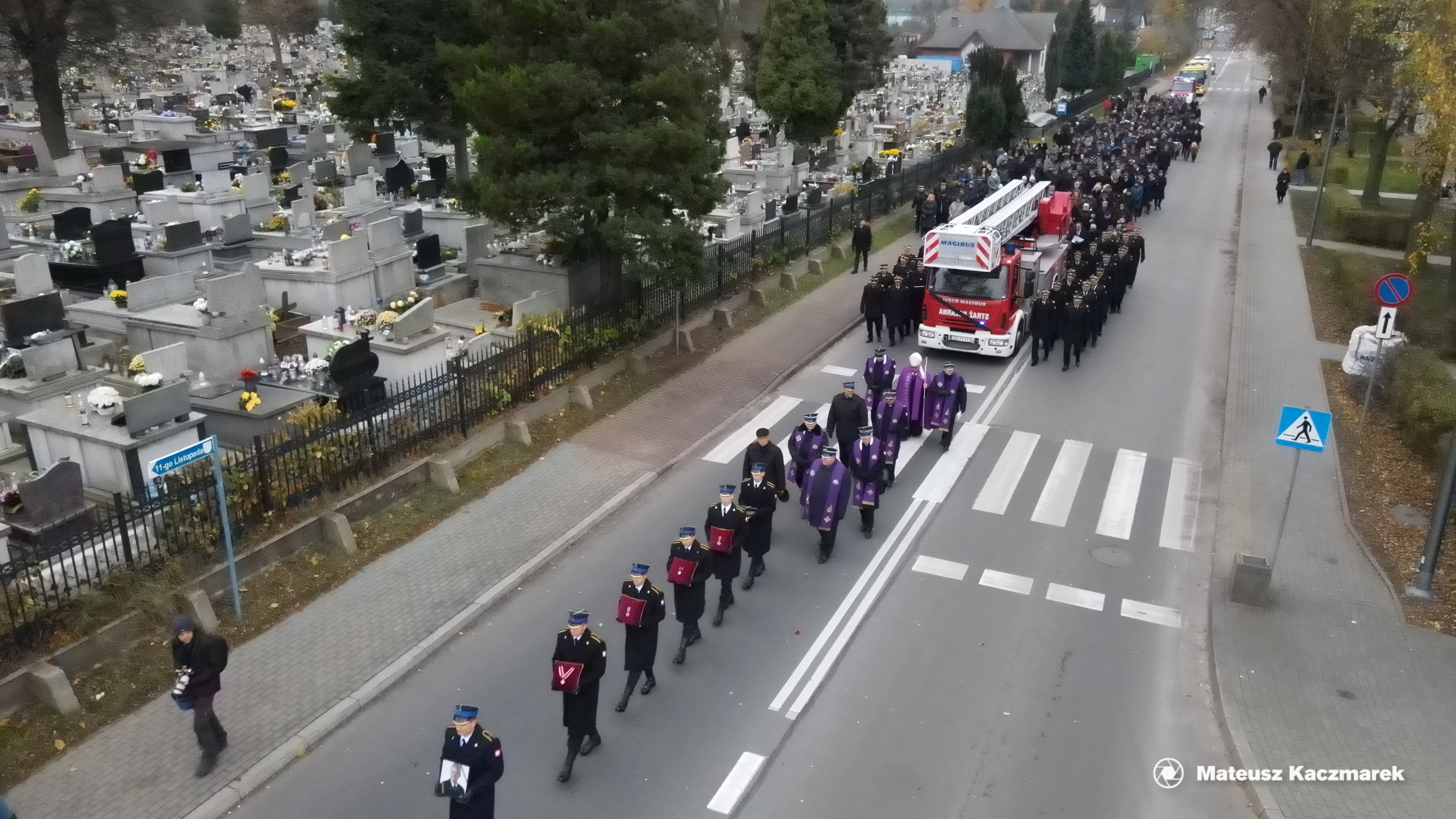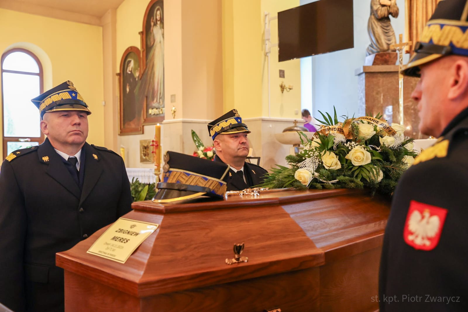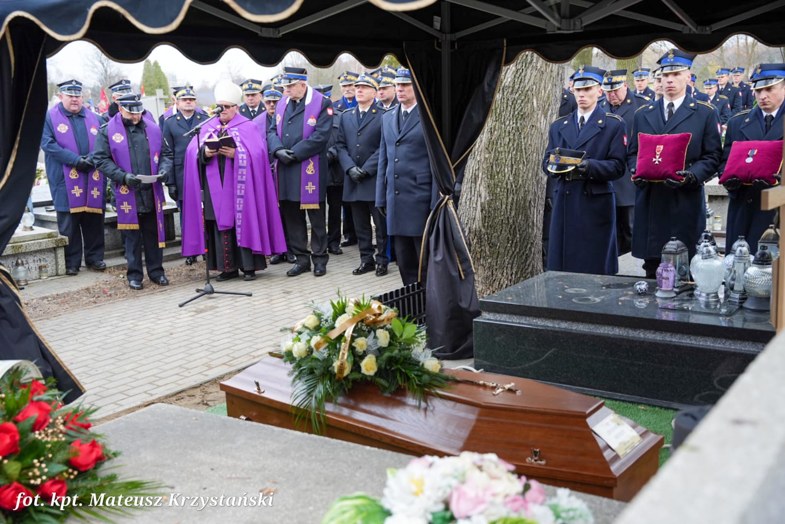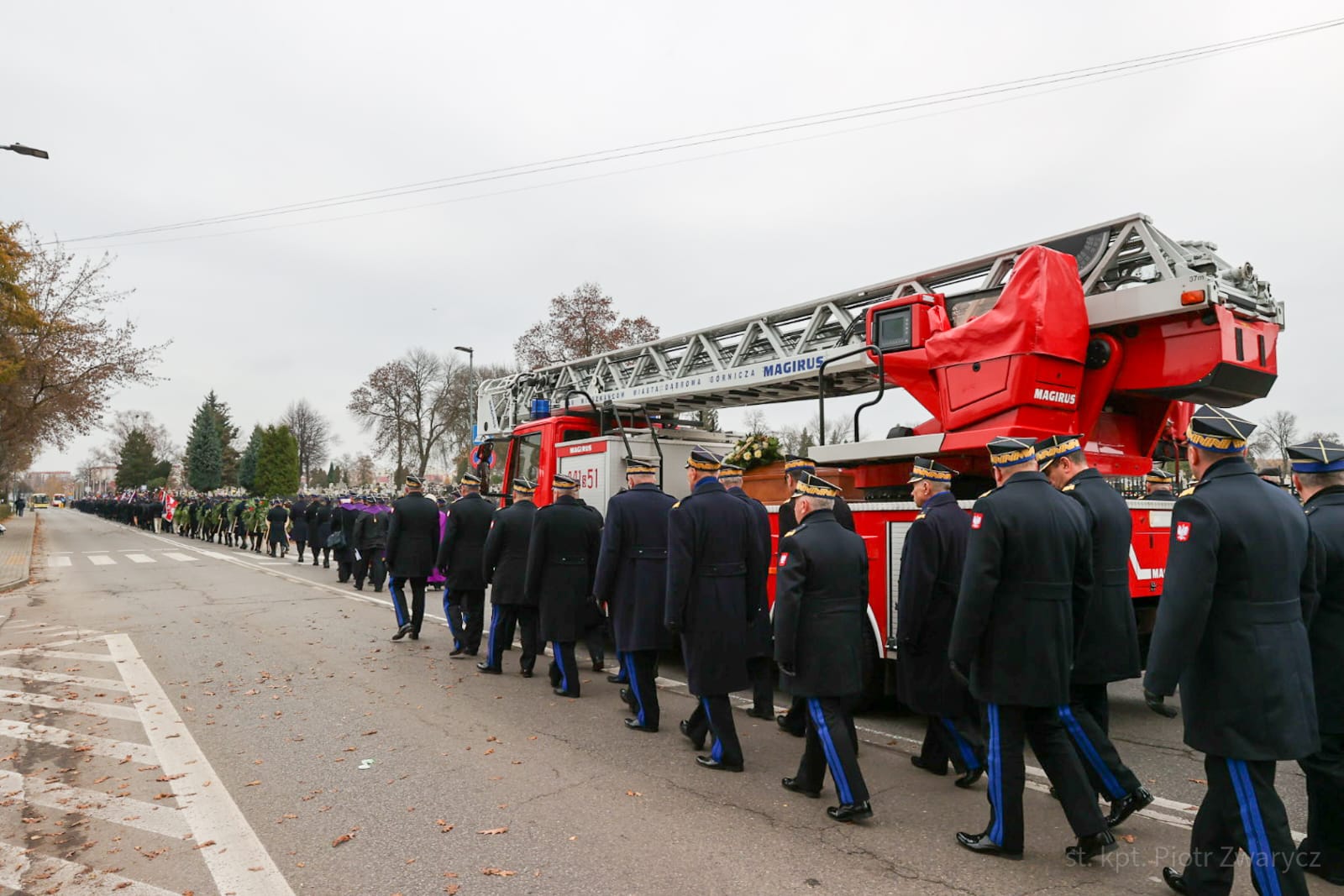 W uroczystościach pogrzebowych uczestniczyły: kompania reprezentacyjna Państwowej Straży Pożarnej, która pełniła funkcję kompanii honorowej, kompania reprezentacyjna Komendy Wojewódzkiej PSP w Katowicach, poczty sztandarowe komend wojewódzkich PSP, szkół pożarniczych, poczty Ochotniczych Straży Pożarnych oraz orkiestra reprezentacyjna Miasta i Gminy Siewierz.