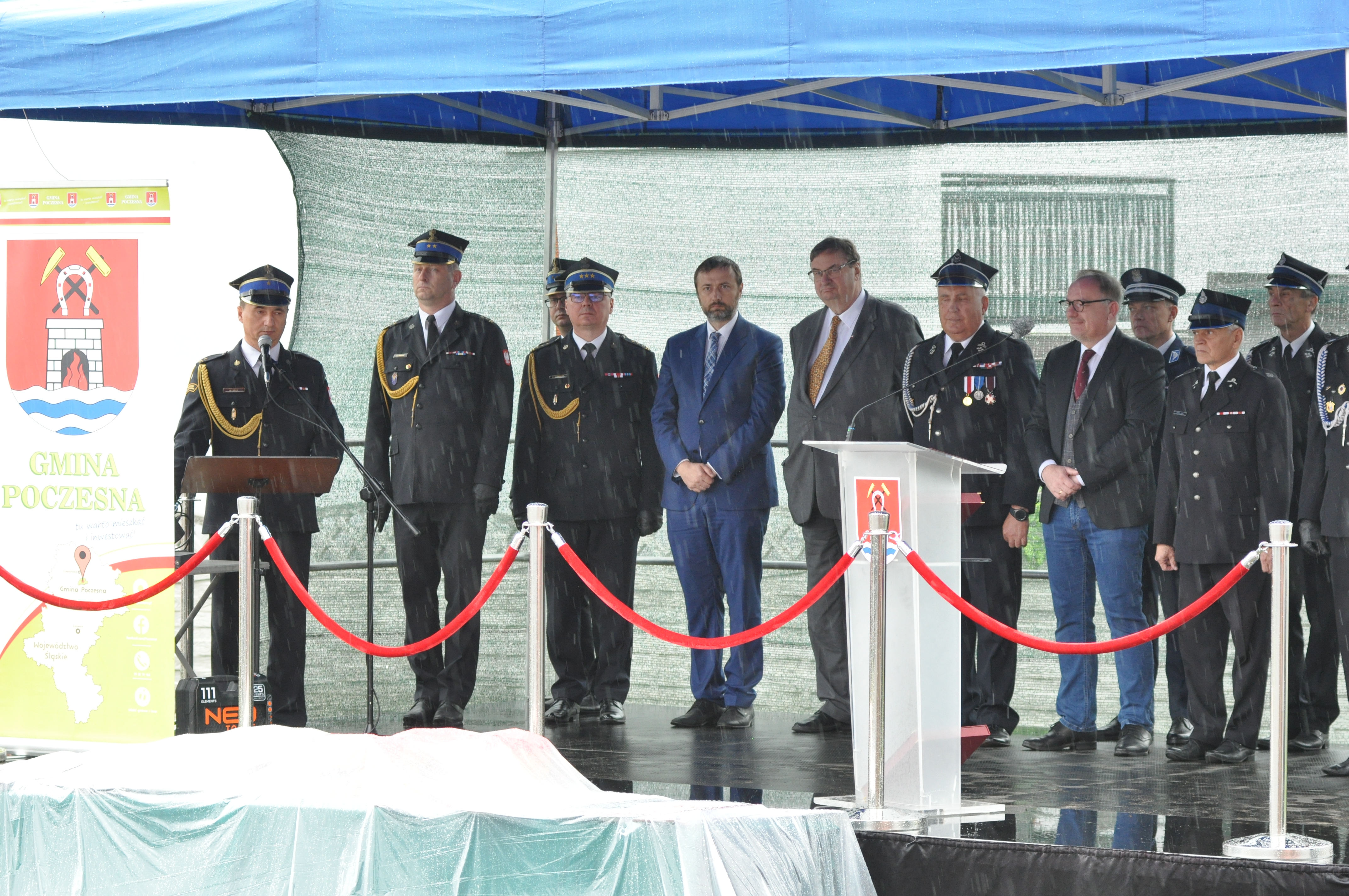 W uroczystościach udział wzięli między innymi: Poseł na Sejm RP, Sekretarz Stanu w Ministerstwie Kultury i Dziedzictwa Narodowego - Pan Szymon Giżyński, posłowie na Sejm RP – Pani Lidia Burzyńska i Pan Mariusz Trepka, Senator RP - Pan Ryszard Majer, Poseł do Parlamentu Europejskiego - Pani Jadwiga Wiśniewska, Wicewojewoda Śląski - Pan Robert Magdziarz, Prezes Wojewódzkiego Funduszu Ochrony Środowiska i Gospodarki Wodnej w Katowicach - Pan Tomasz Bednarek, Śląski Komendant Wojewódzki PSP – nadbryg. Jacek Kleszczewski, Prezes Zarządu Oddziału Wojewódzkiego ZOSP RP woj. śląskiego - druh Henryk Kiepura, komendanci powiatowi i miejscy PSP oraz prezesi i wiceprezesi Zarządów Oddziałów Powiatowych ZOSP RP i przedstawiciele władz samorządowych.