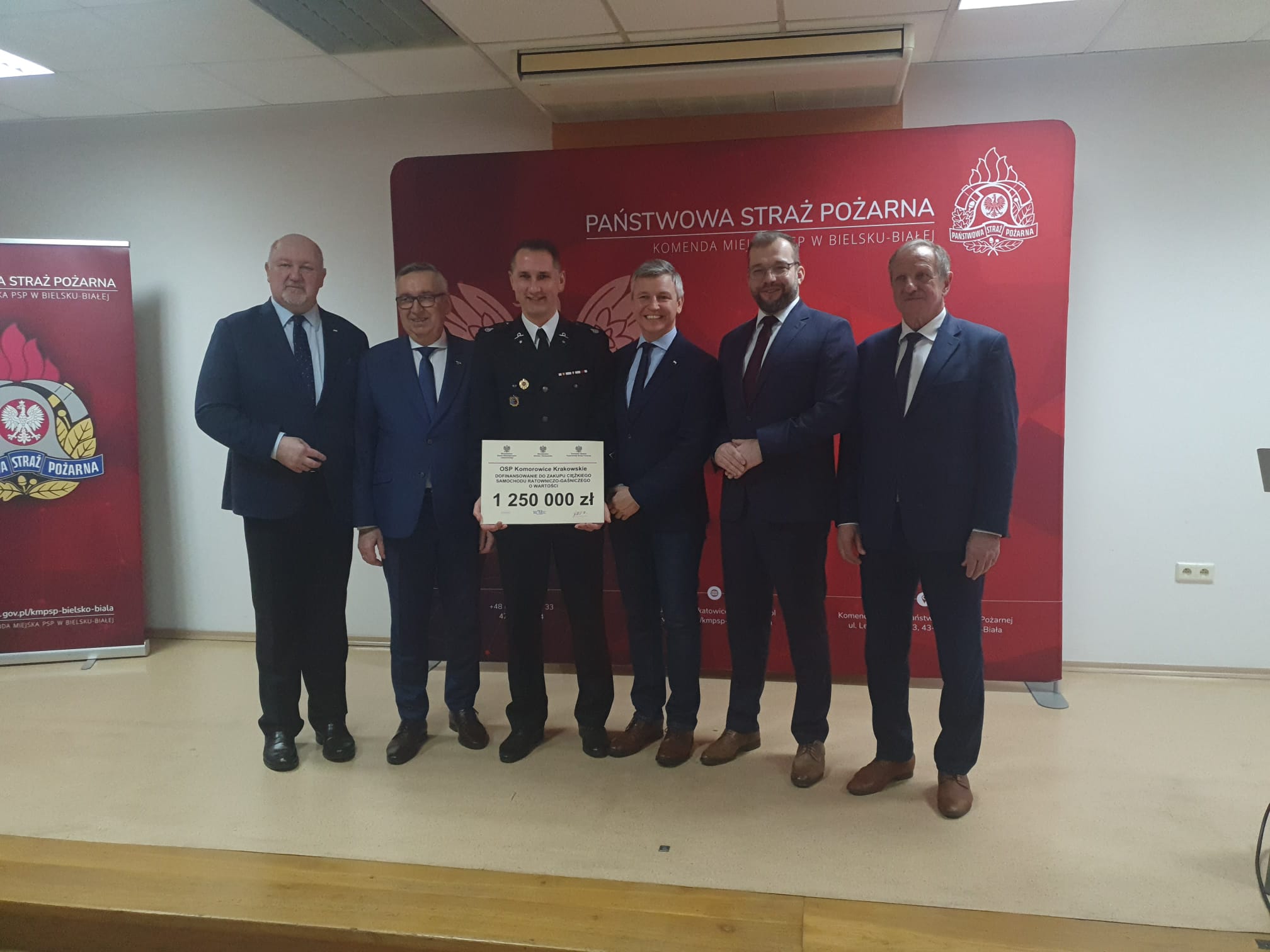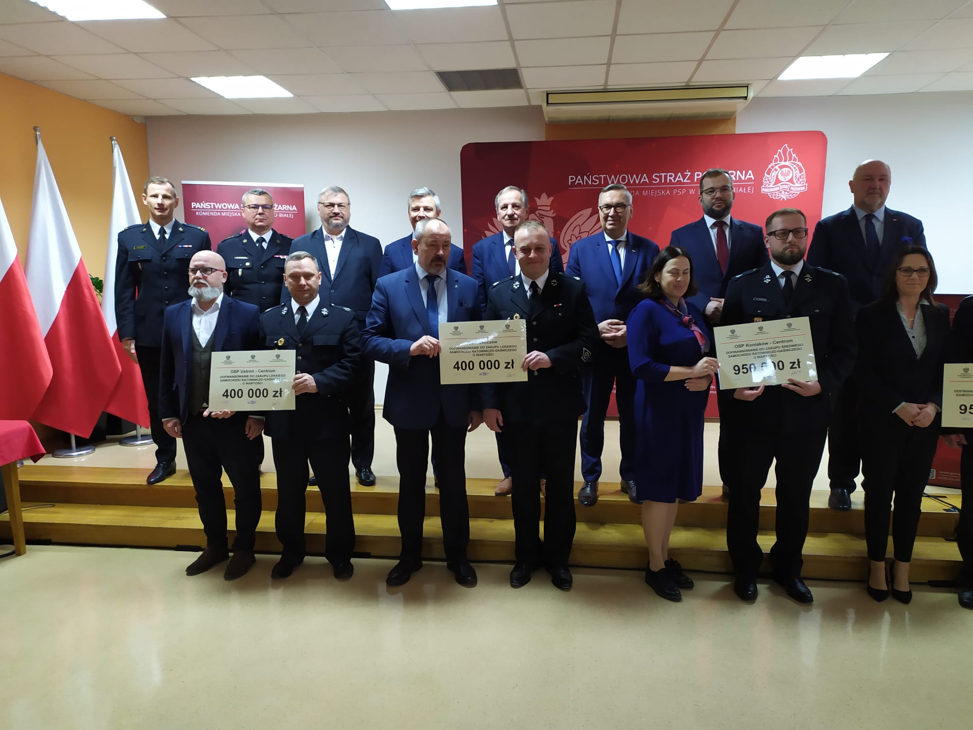 Tego samego dnia, podczas narady podsumowywującej działania bielskiej Komendy Państwowej Straży Pożarnej za rok 2022 odbyło się uroczyste przekazanie promes na zakup nowych pojazdów dla OSP z terenu m. Bielsko-Biała, powiatu bielskiego, cieszyńskiego, pszczyńskiego i żywieckiego. W spotkaniu wzięli udział m.in. Minister Funduszy i Polityki Regionalnej Grzegorz Puda, Wiceminister Rodziny i Polityki Społecznej Stanisław Szwed, Poseł na Sejm RP Przemysław Drabek, Poseł na Sejm RP Grzegorz Gaża, Poseł na Sejm RP Kazimierz Matuszny oraz Wicewojewoda Śląski Jan Chrząszcz. Z ramienia Komendy Wojewódzkiej PSP w spotkaniu uczestniczył Zastępca Śląskiego Komendanta Wojewódzkiego PSP st. bryg. Mirosław Synowiec. Podczas uroczystości w bielskiej Komendzie promesy trafiły do:
