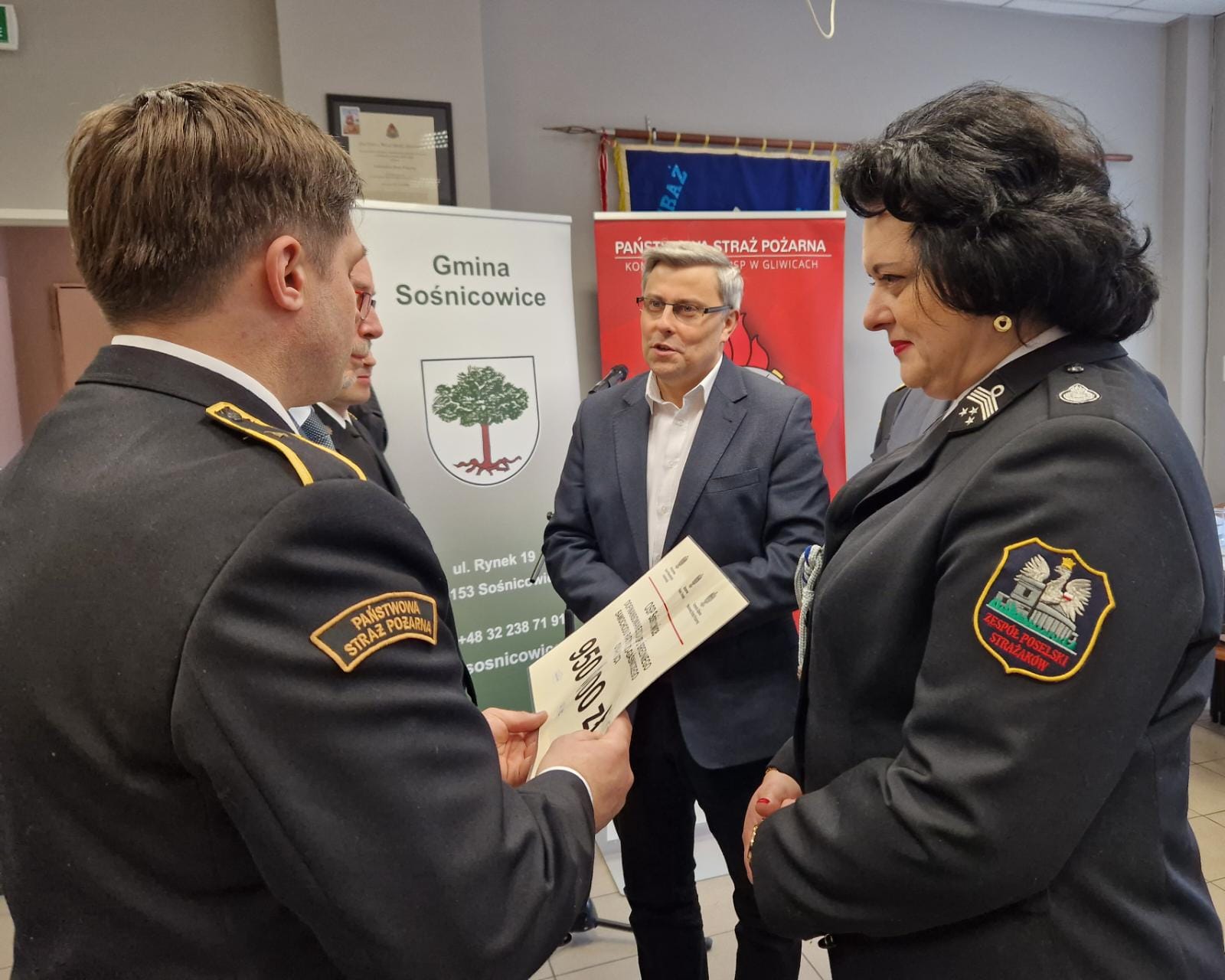 27 marca br. Wojewoda Śląski Pan Jarosław Wieczorek wraz z parlamentarzystami - Posłem na Sejm RP Panią Barbarą Dziuk i Posłem na Sejm RP Panem Jarosławem Gonciarz oraz Śląskim Komendantem Wojewódzkim PSP nadbryg. Jackiem Kleszczewskim wręczył promesy Ochotniczym Strażom Pożarnym z terenu powiatu gliwickiego oraz tarnogórskiego. W powiecie gliwickim OSP Sośnicowice w gminie Sośnicowice otrzymała promesę na średni samochód ratowniczo – gaśniczy, a OSP Leboszowice w gminie Pilchowice na samochód lekki. W powiecie tarnogórskim OSP Brynica w gminie Miasteczko Śląskie otrzymała promesę na samochód lekki, a OSP Ossy z gminy Ożarowice promesę na zakup średniego samochodu ratowniczo – gaśniczego.